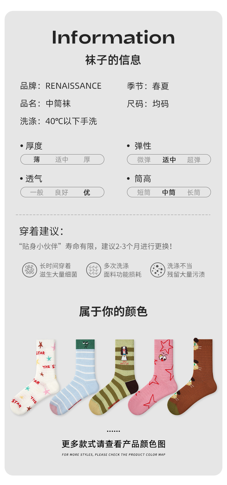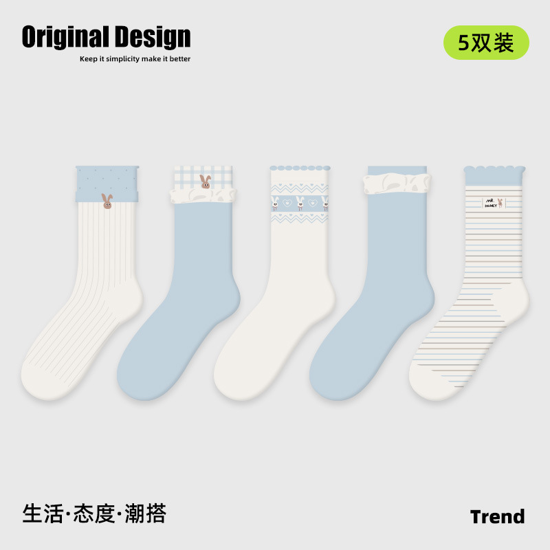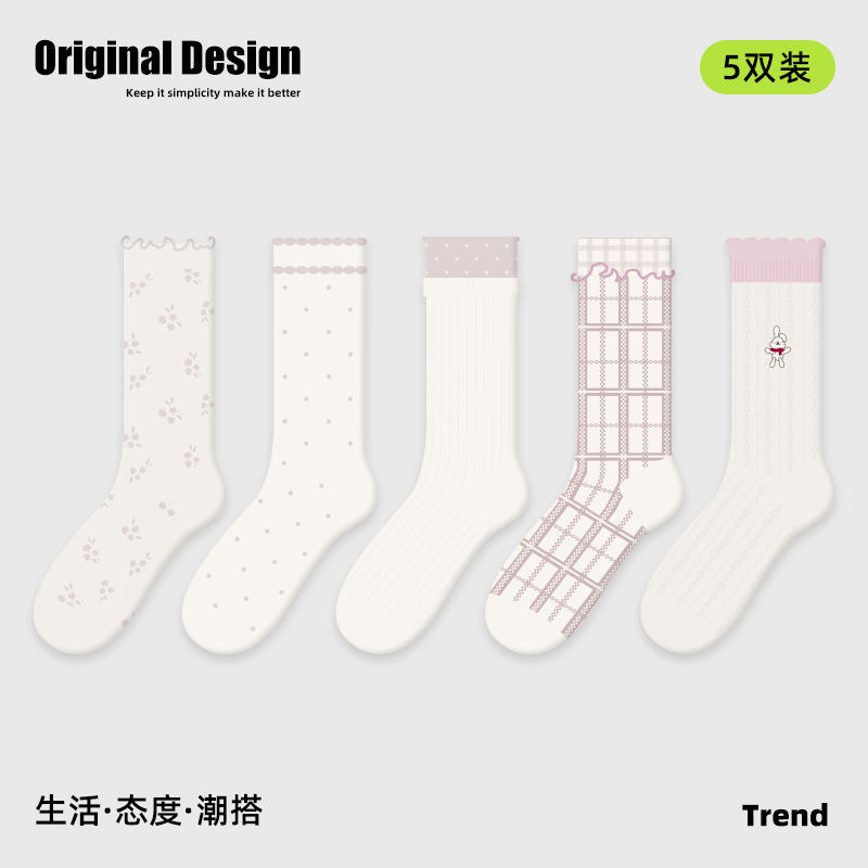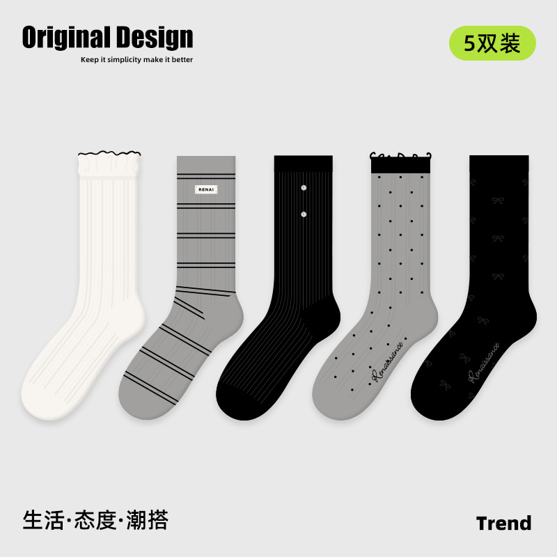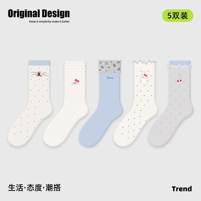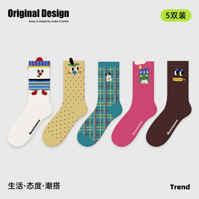 2026春夏新款袜子小众设计条纹插画卡丝短袜棉薄款透气网眼袜子女