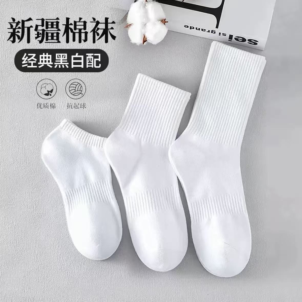 【新疆棉】四季款男女同款篮球袜短筒中筒长筒袜日抛黑白色运动袜