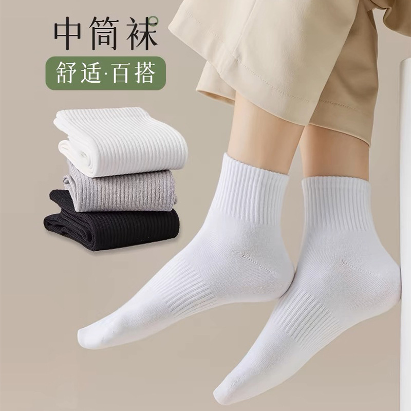 男士女生短袜棉袜子男女中筒袜男女运动长筒白袜薄款白袜子