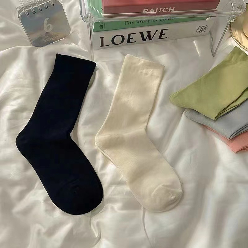 堆堆袜女白色中筒袜春秋搭配小皮鞋黑色袜子薄款秋冬月子夏无骨袜