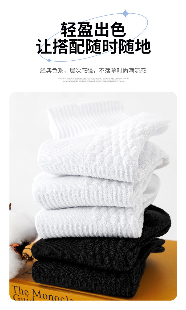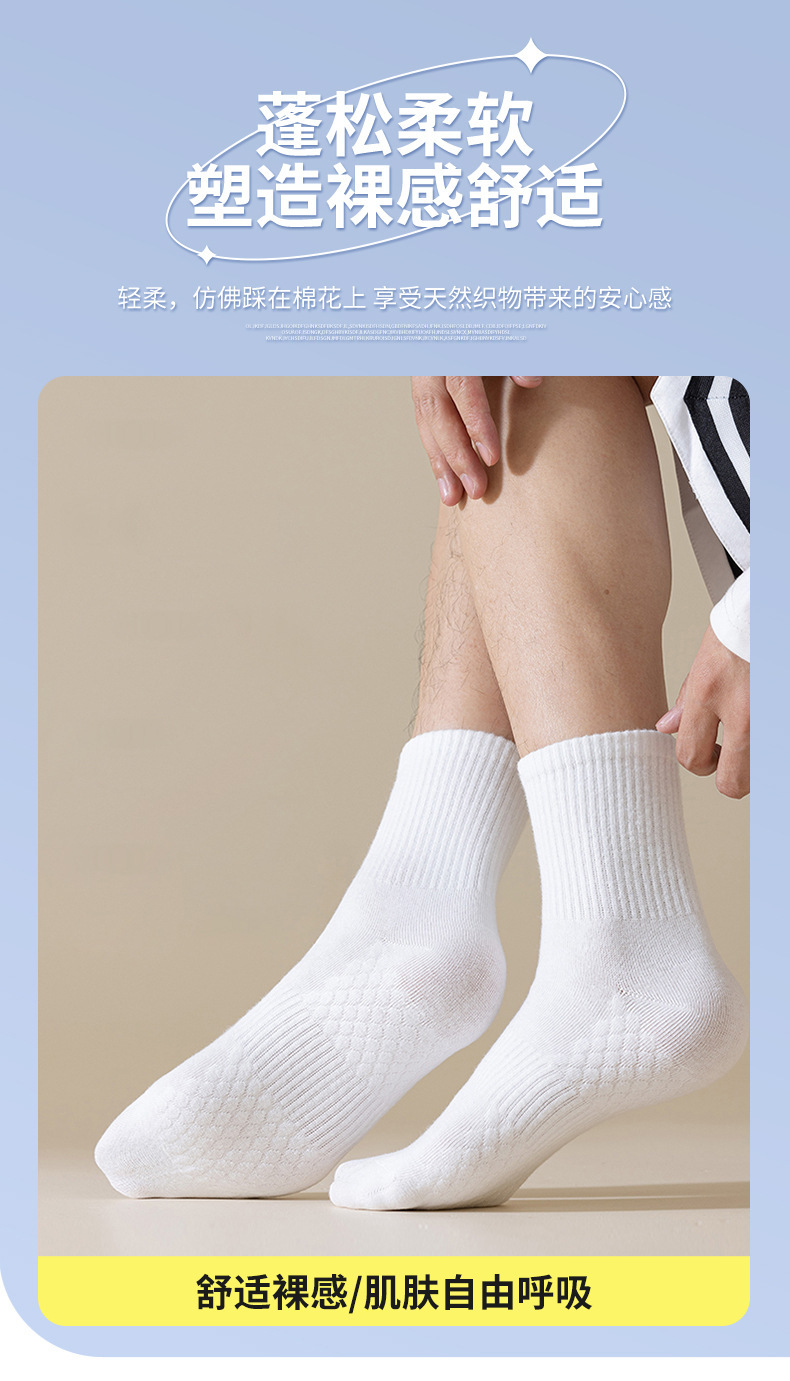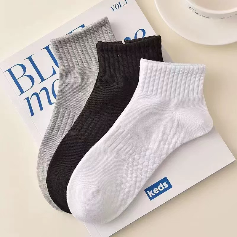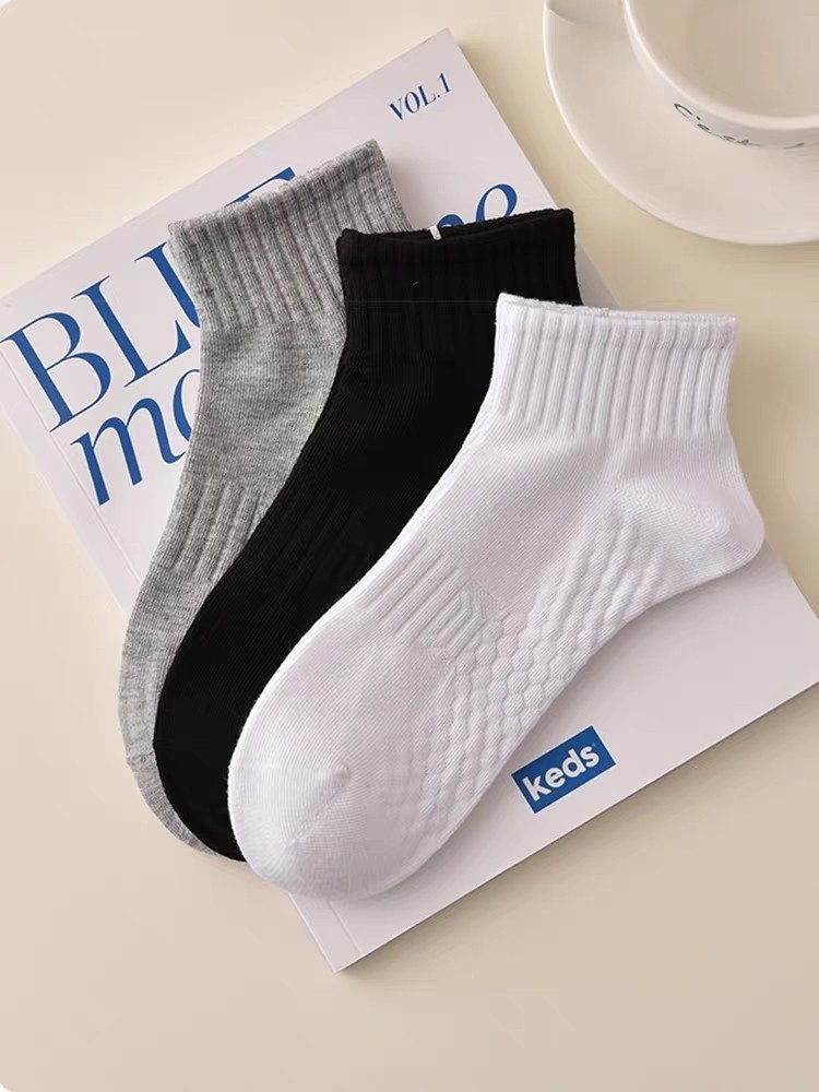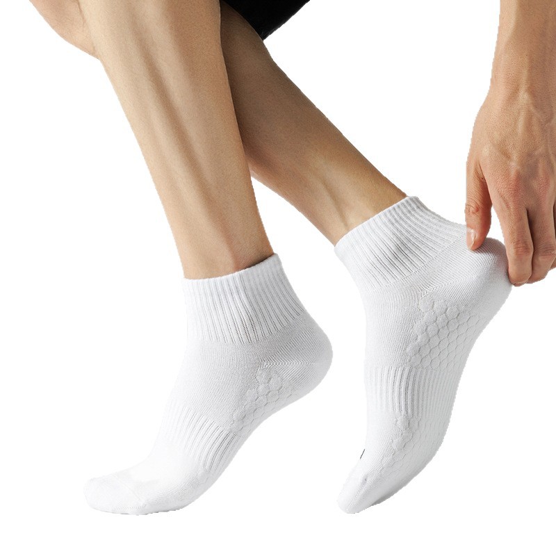 袜子男士无骨运动袜蜂窝防滑减震学生袜春夏秋季纯色棉百搭透气