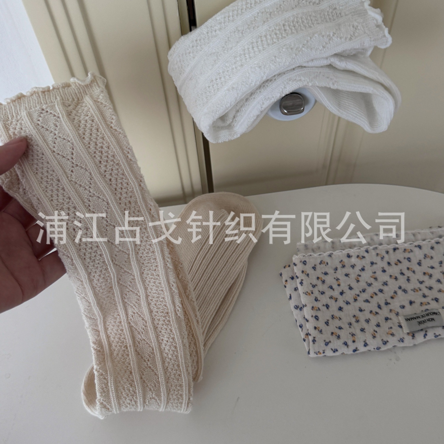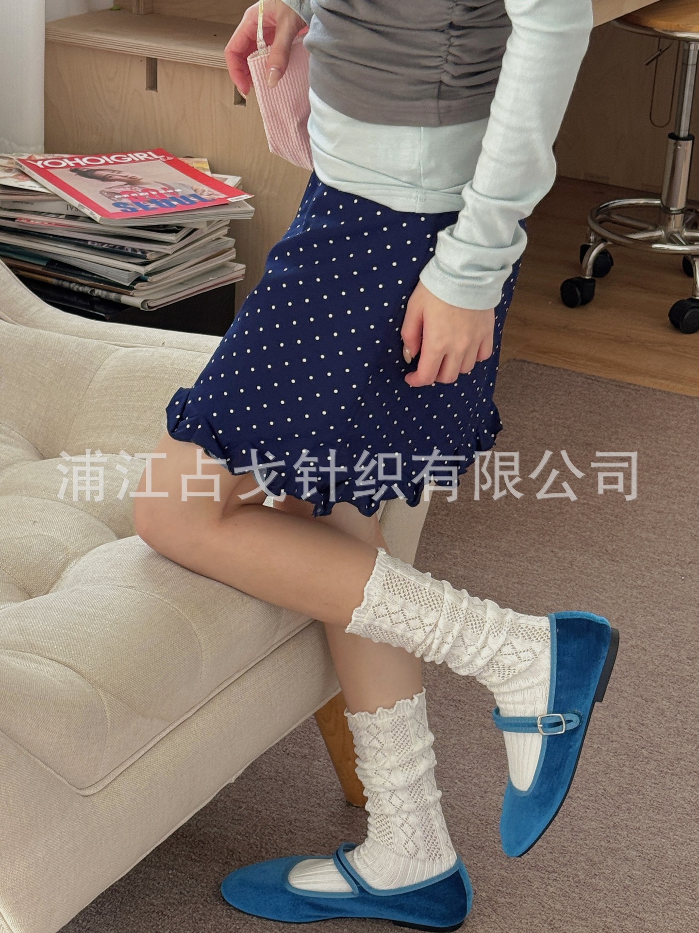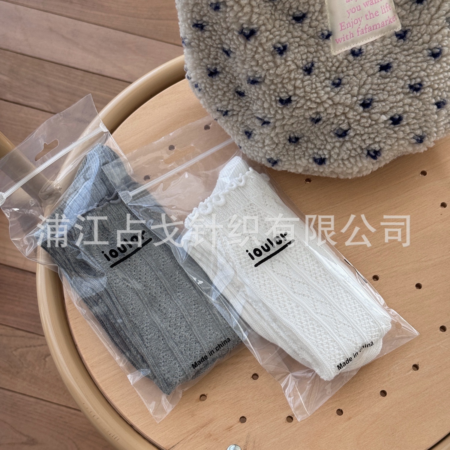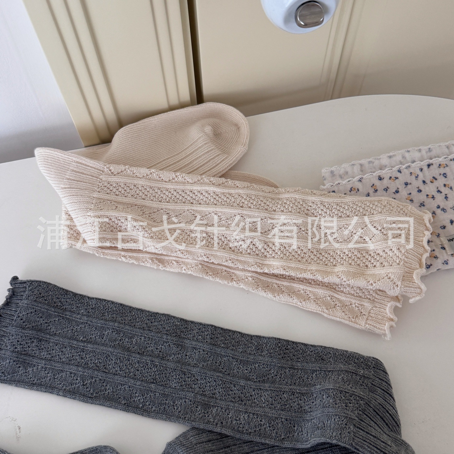 新款日系镂空芭蕾风木耳边中筒袜双针双路甜美吸汗堆堆袜子四季女