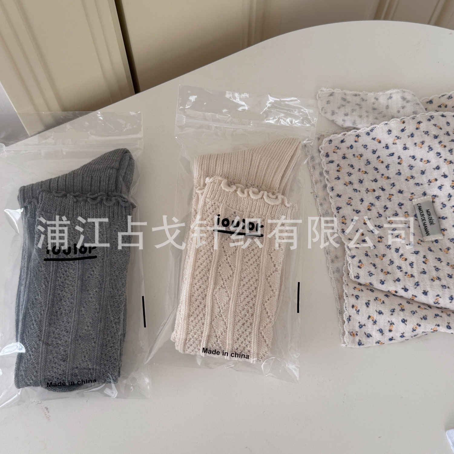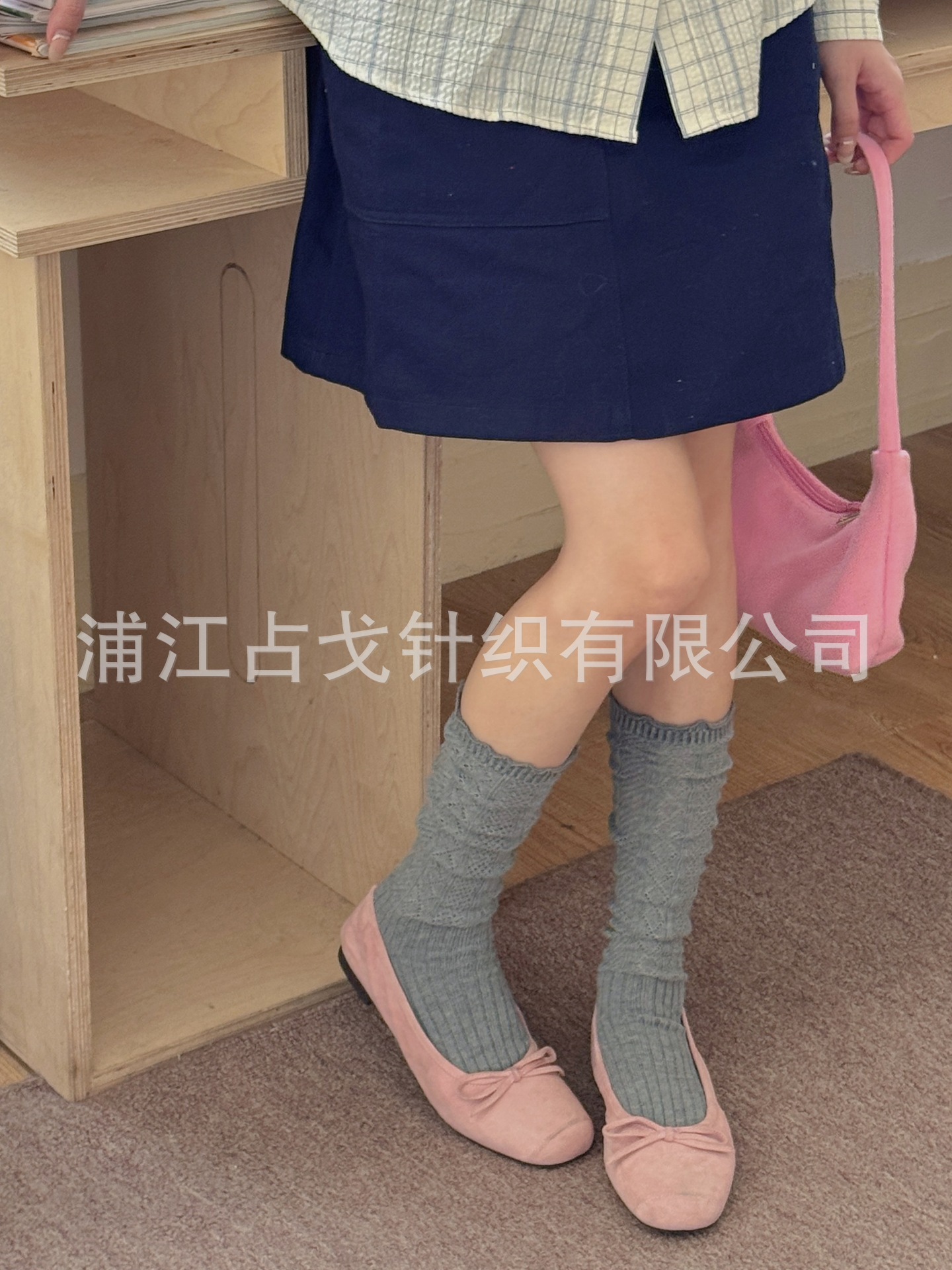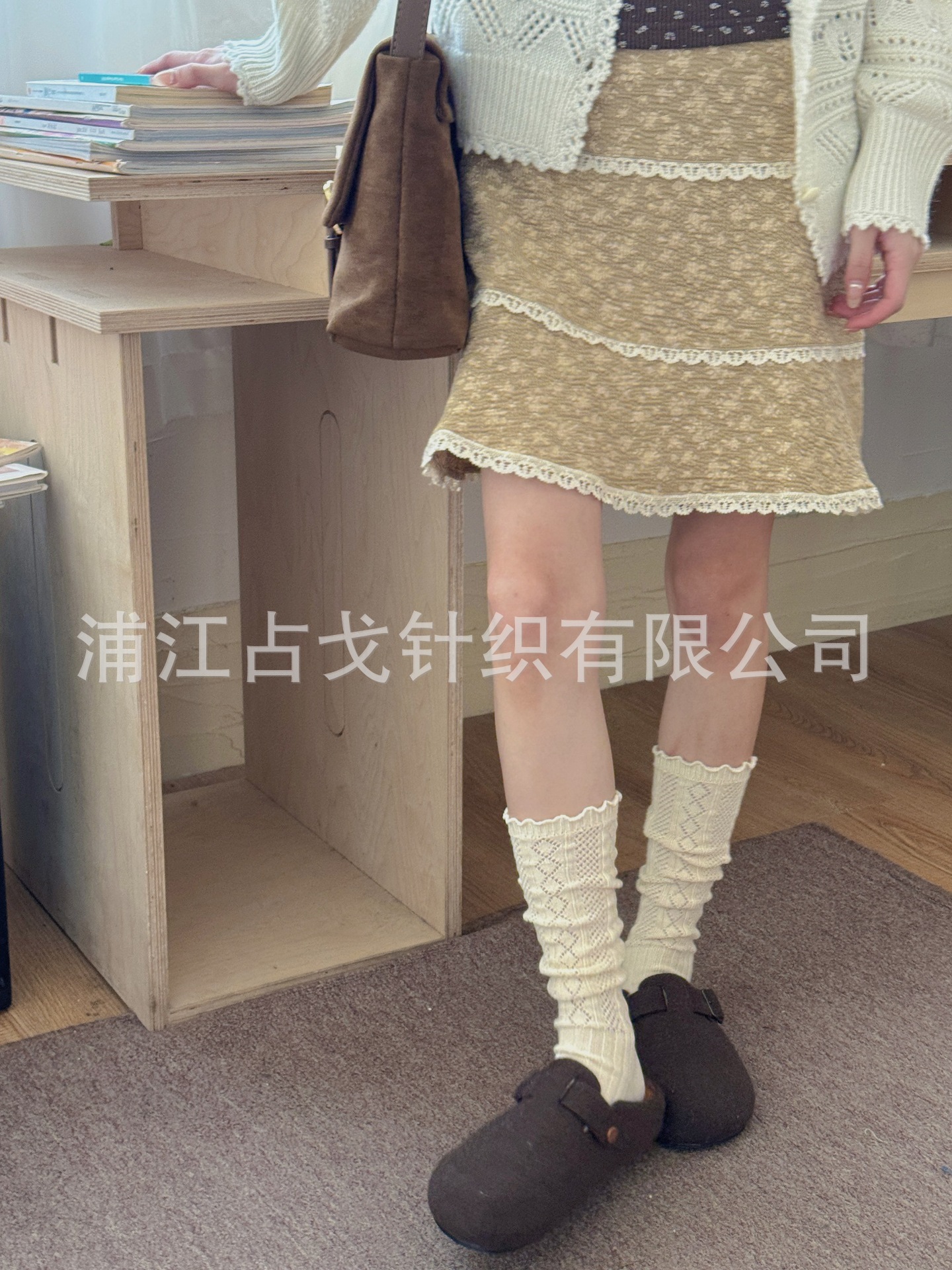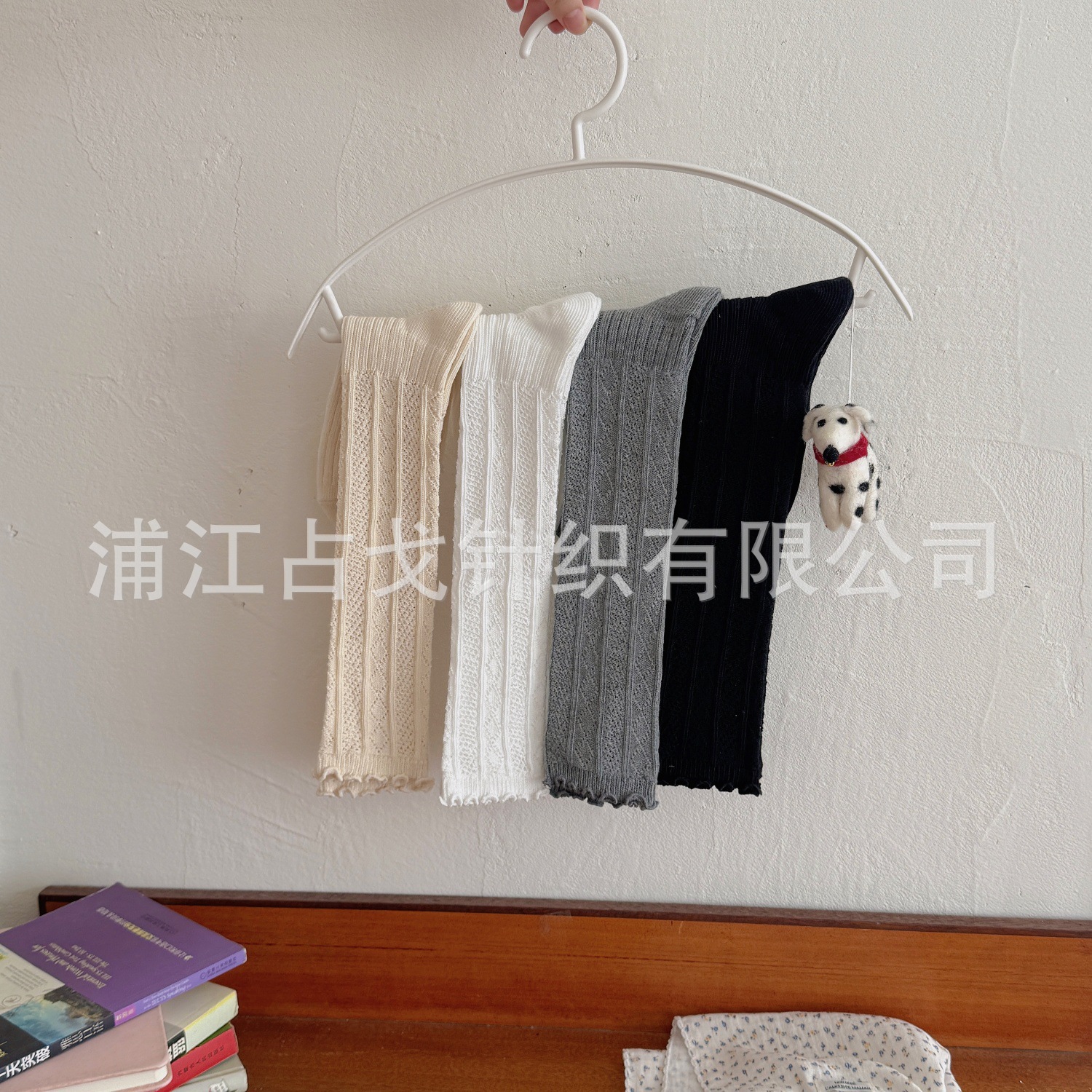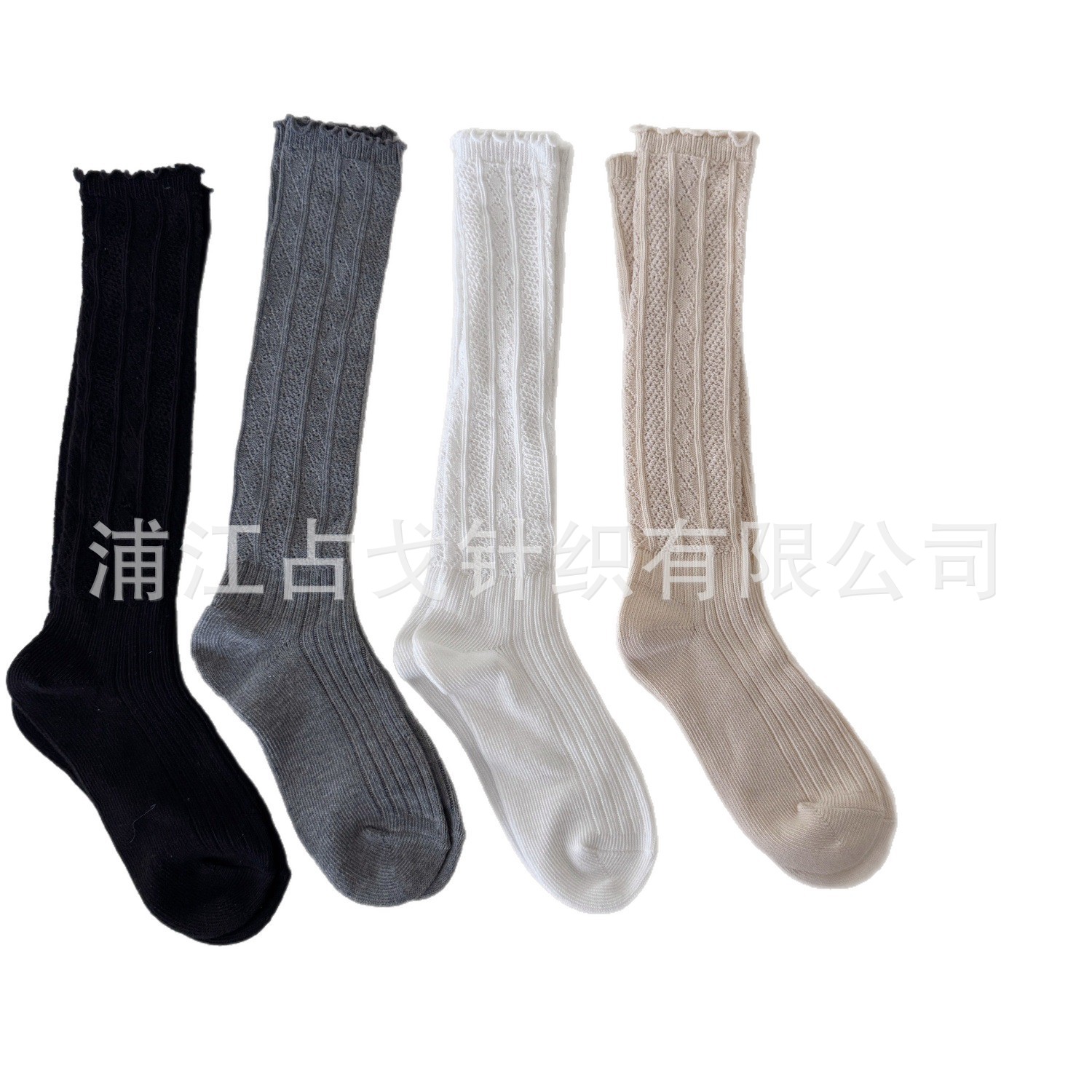 新款日系镂空芭蕾风木耳边中筒袜双针双路甜美吸汗堆堆袜子四季女