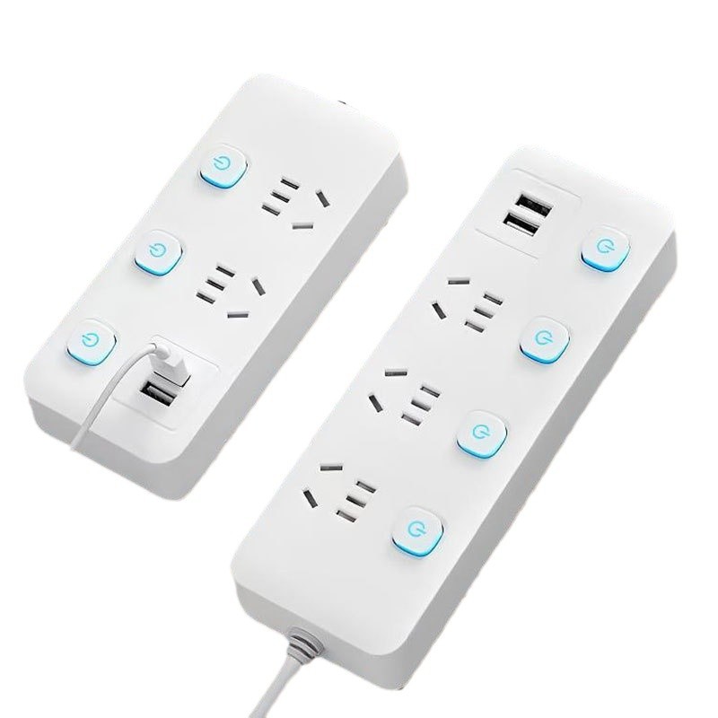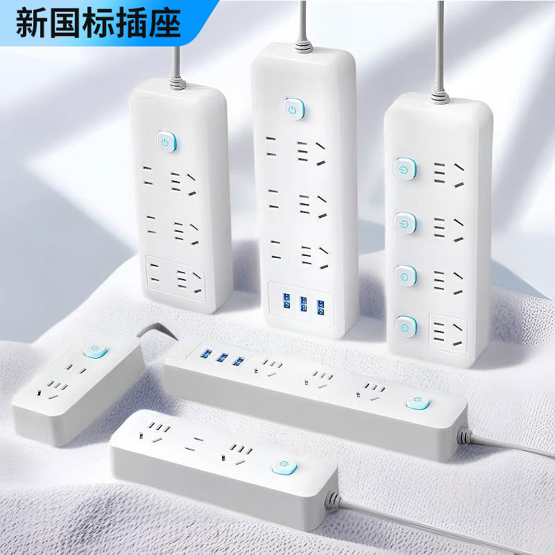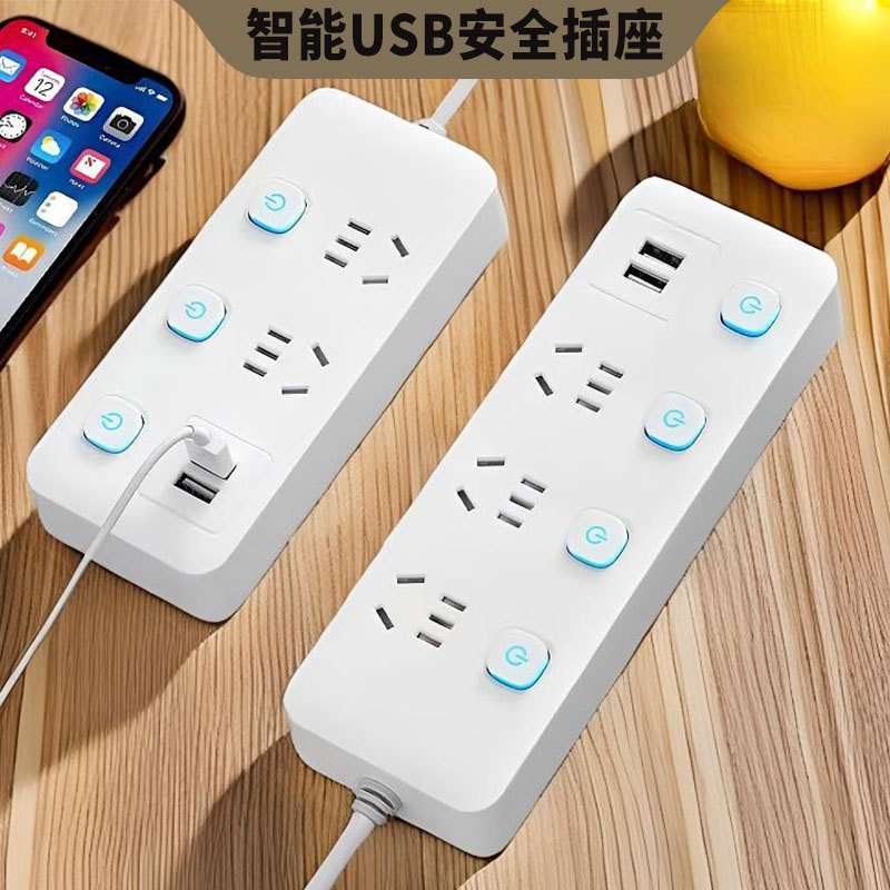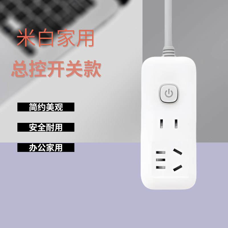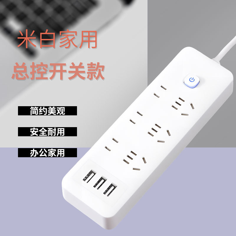 智能排插长线插线板多孔米白色插排插座带USB家用办公多功能排插