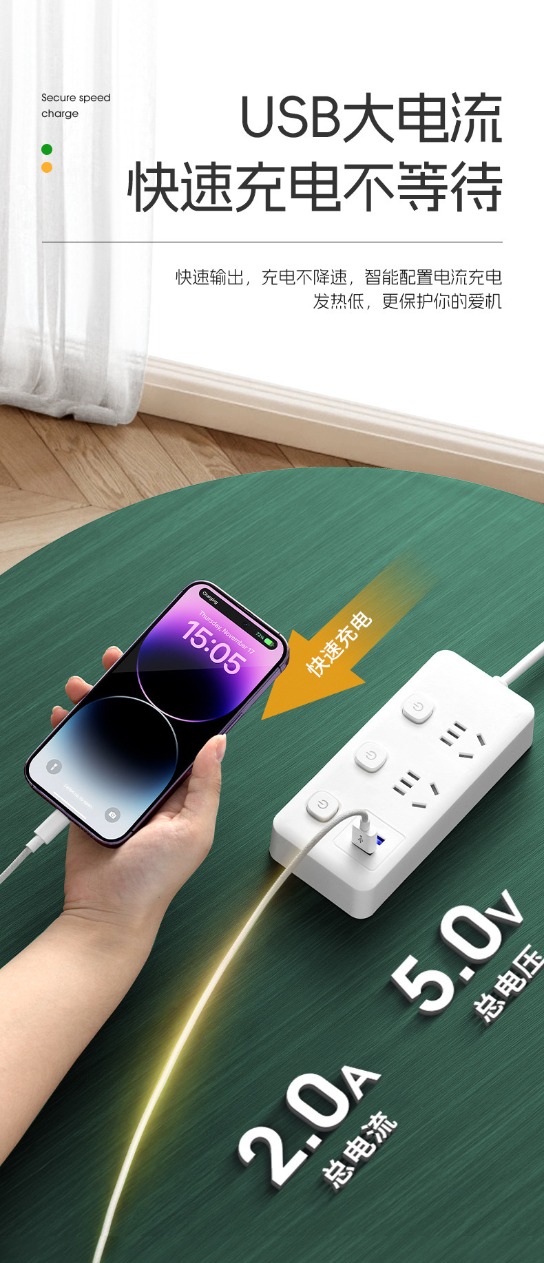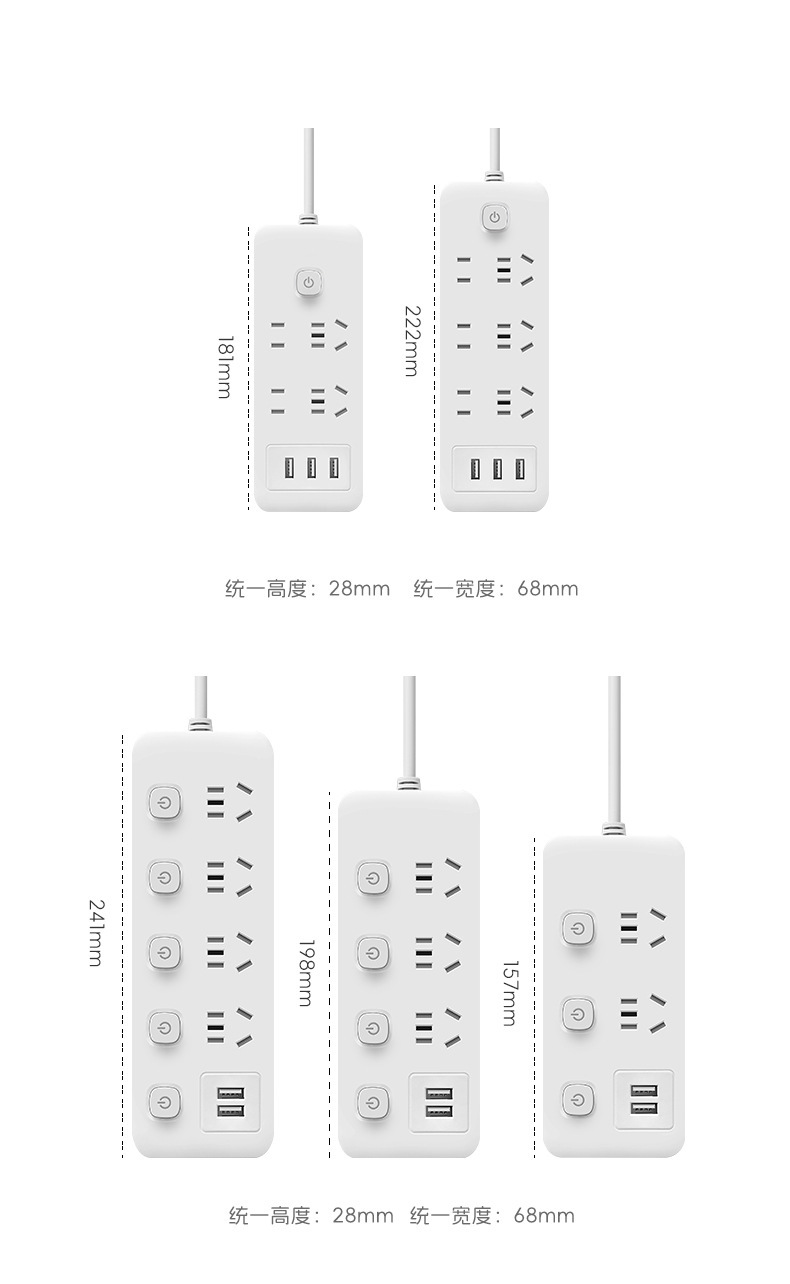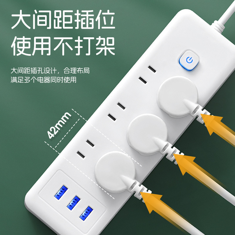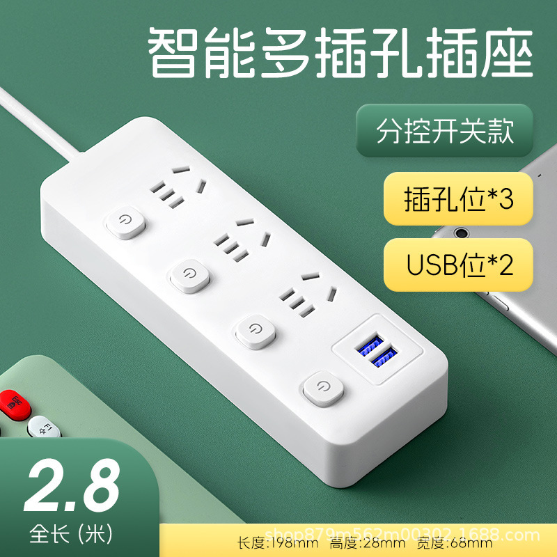小米同款插排插座多功能多孔USB接线板家用纯铜智能排插超市批发