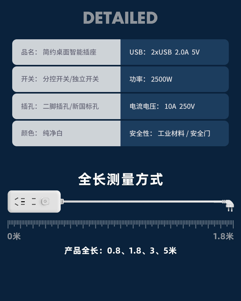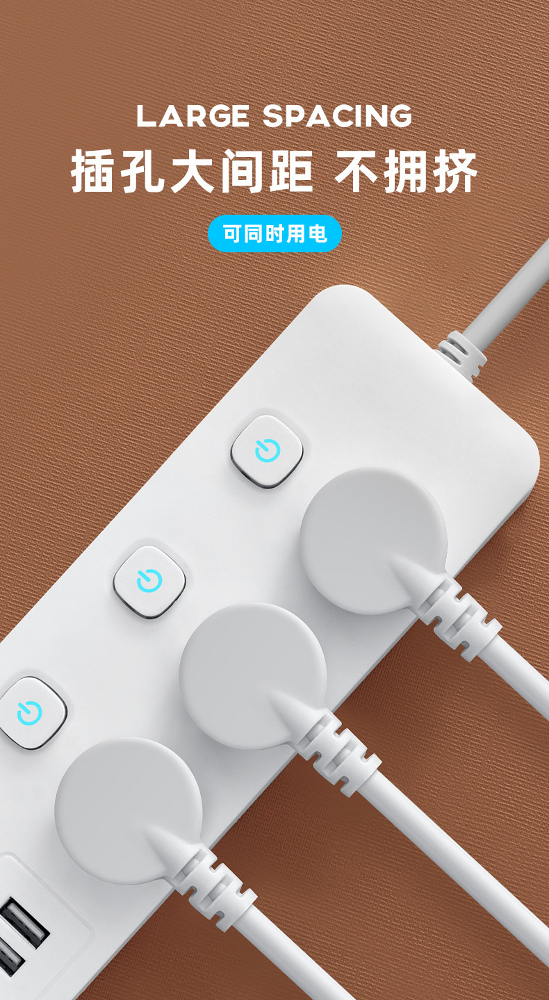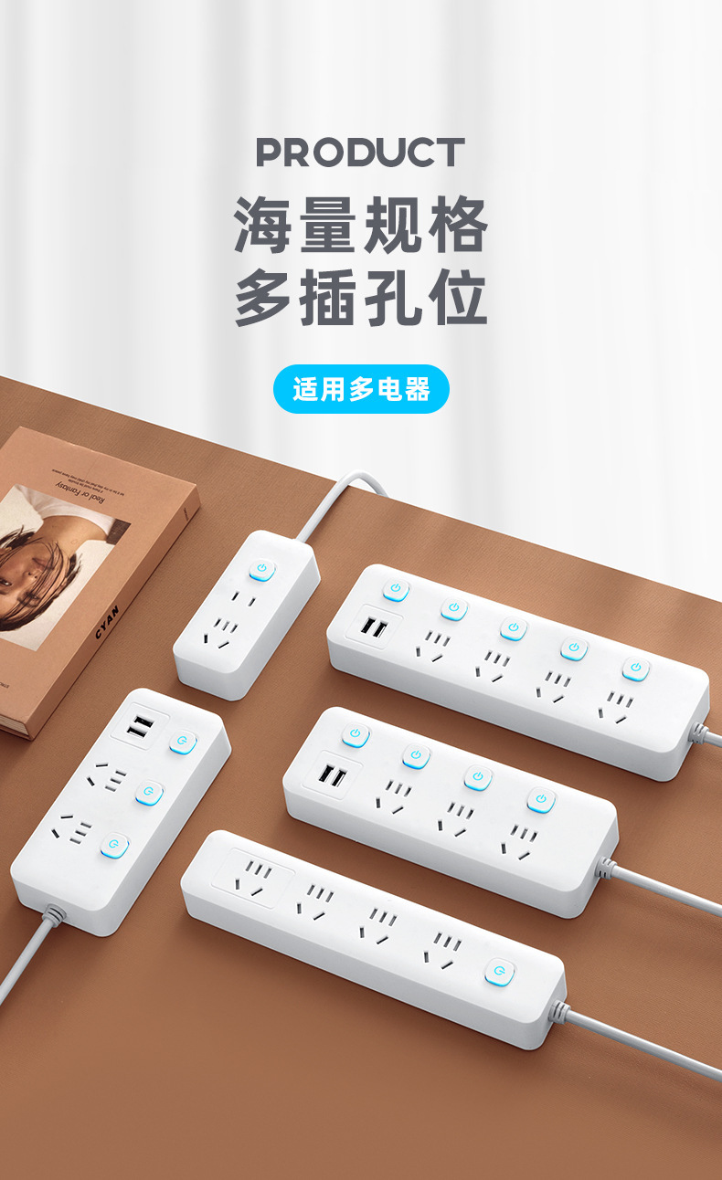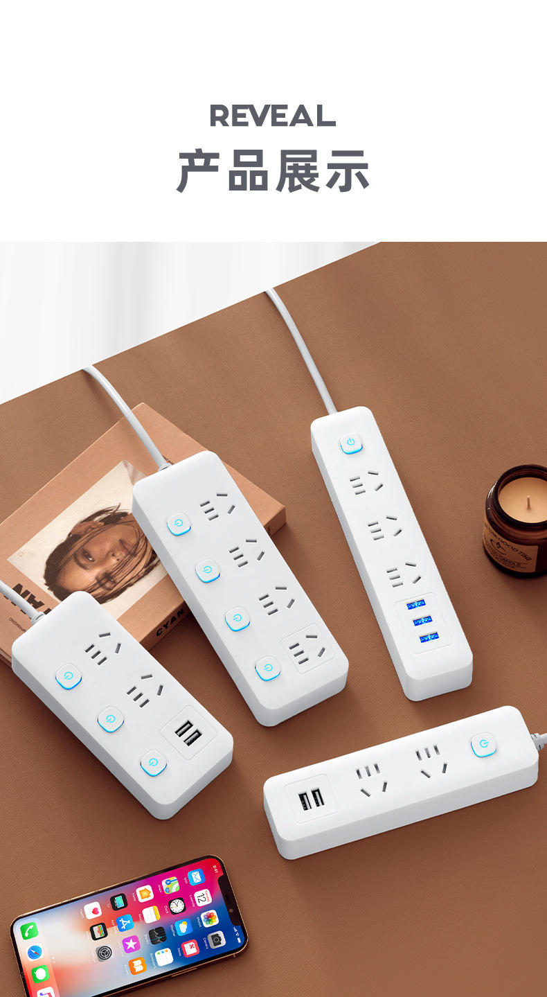 小米同款插座智能带USB多孔插板桌面插排家用排插接线板超市批发