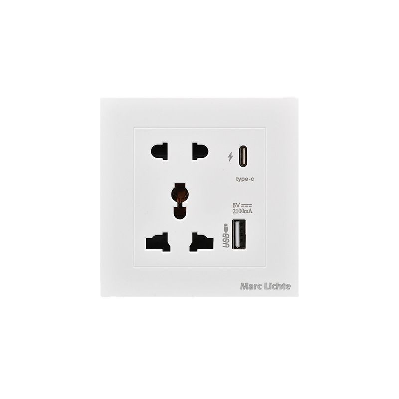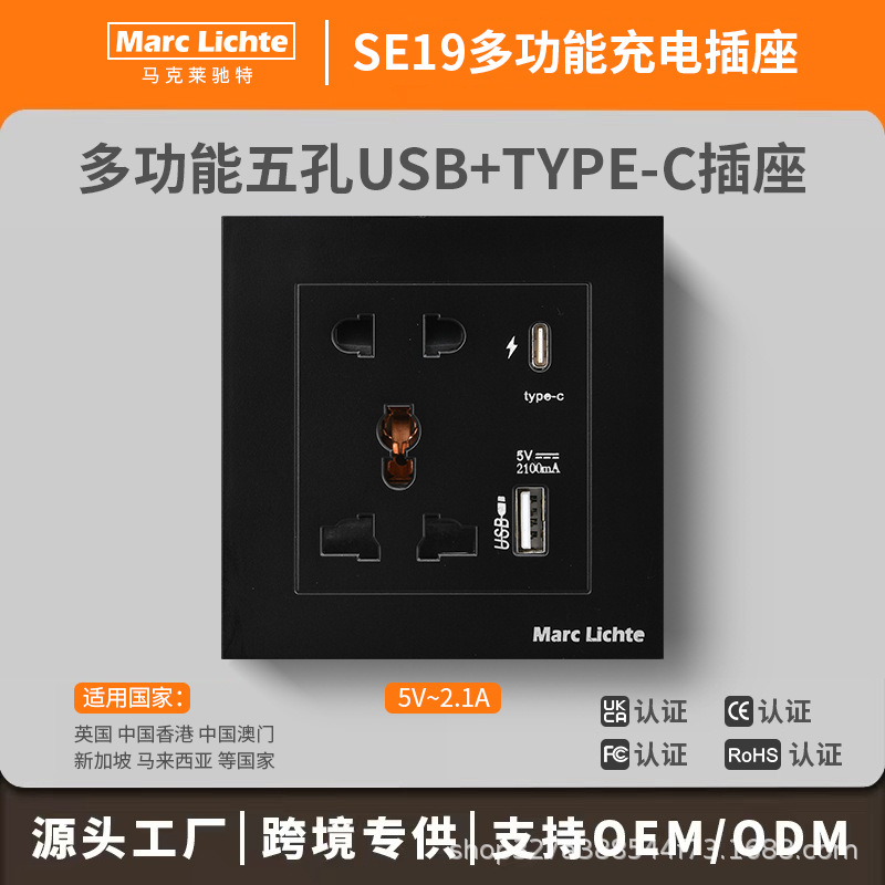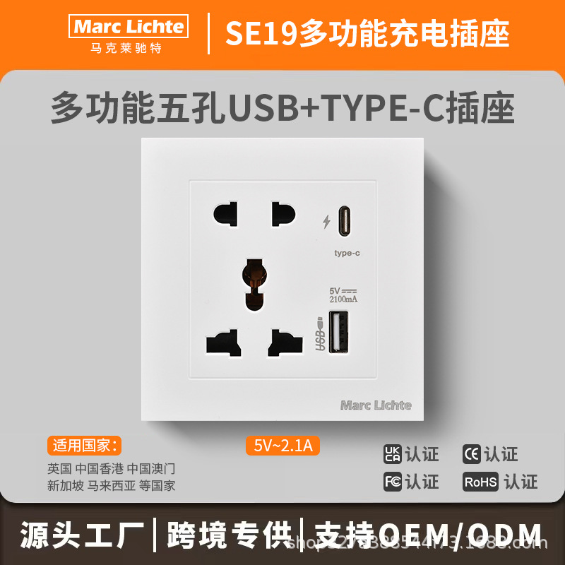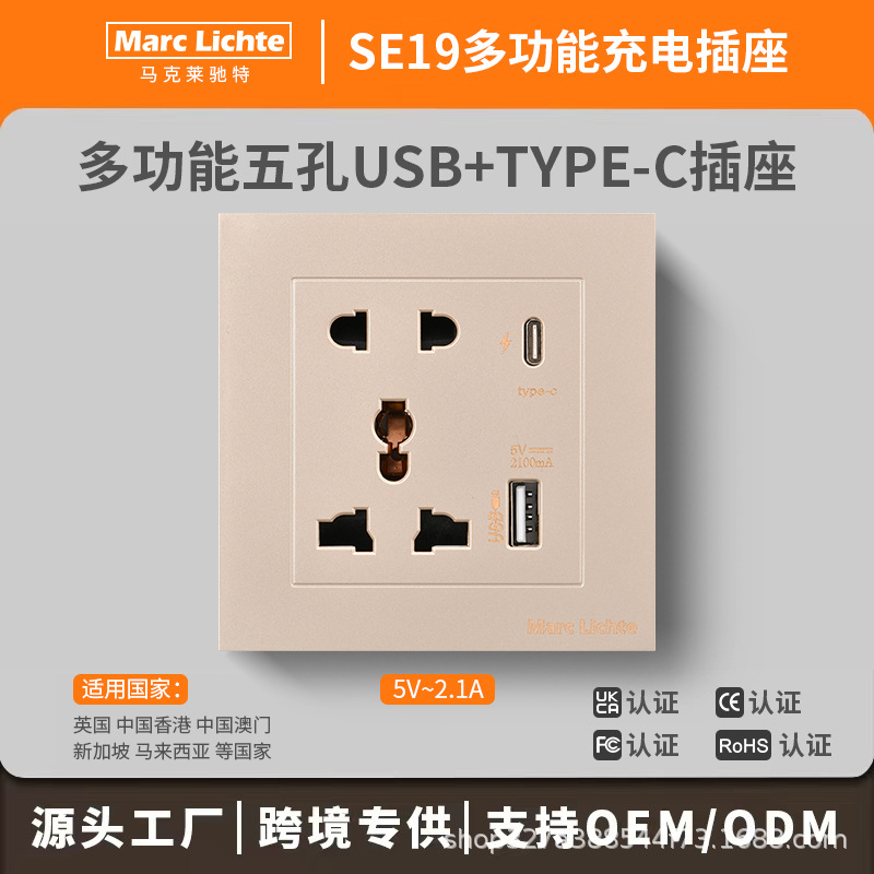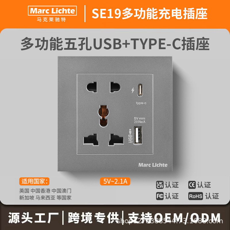 墙壁五孔暗装插座二三开关插座USB快充宿舍手机智能充电面板