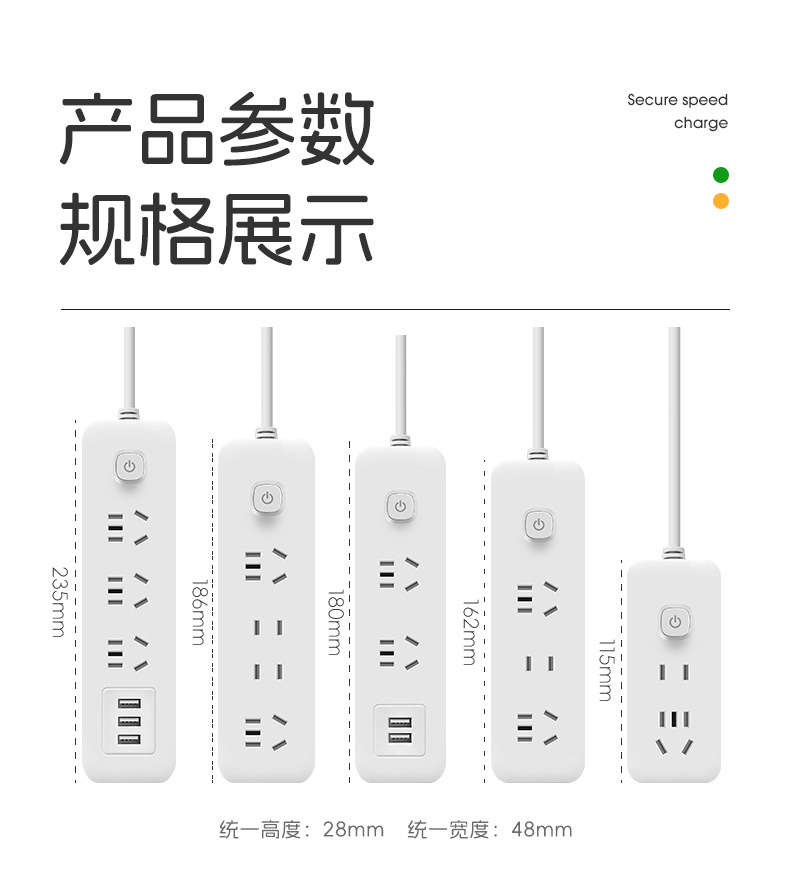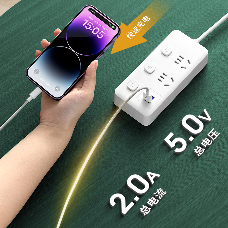 米小白插座家用智能多功能USB拖线板带线宿舍长线插排插板接线板