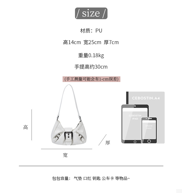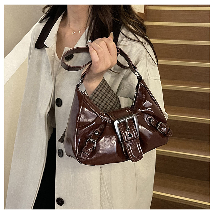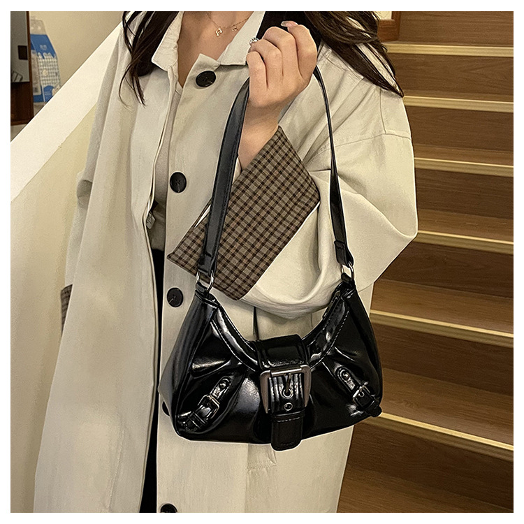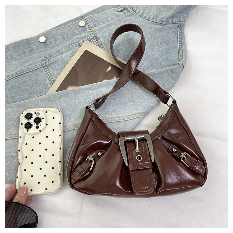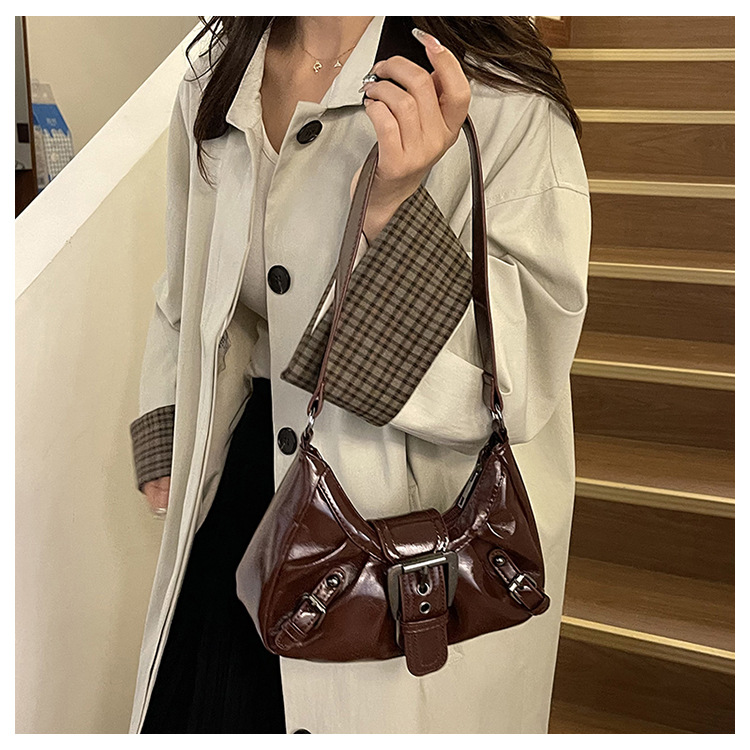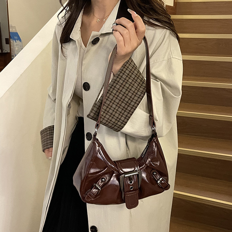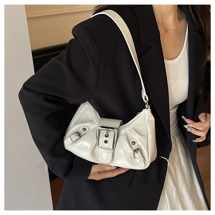 大容量褶皱2026夏季新款美式复古通勤气质机车风腋下单肩包包女
