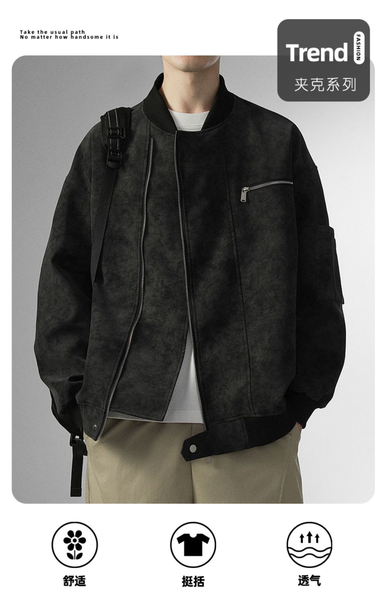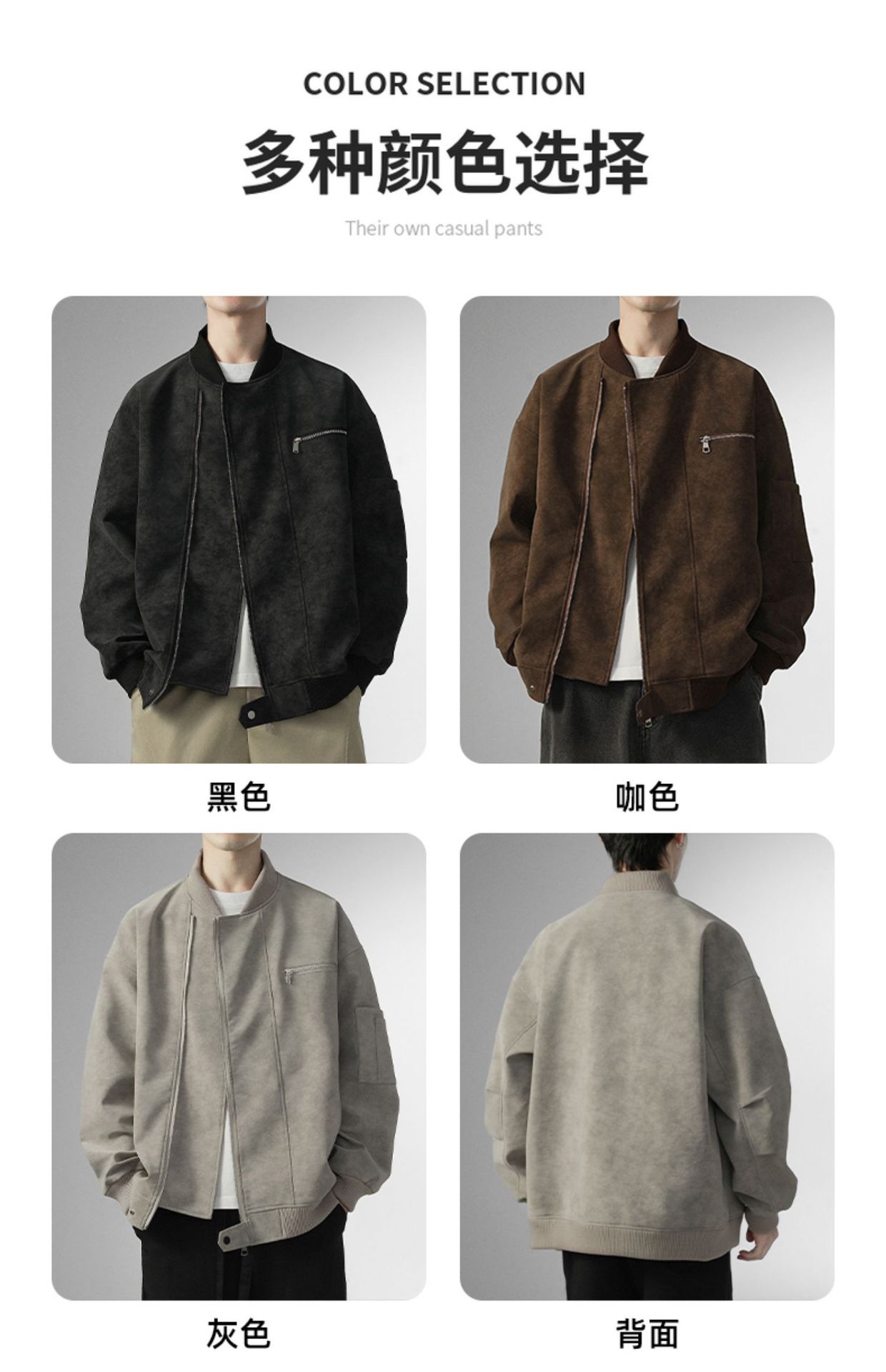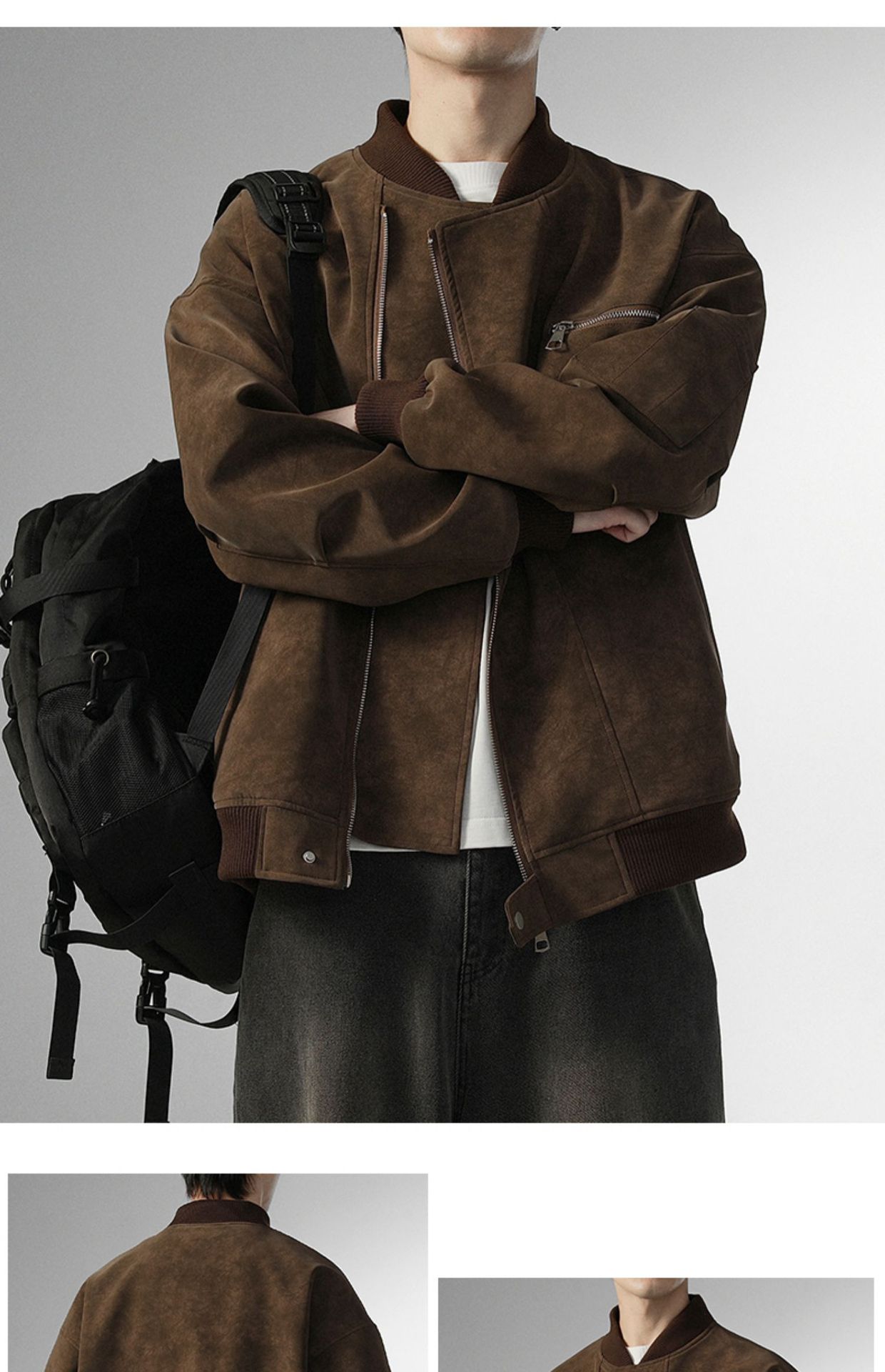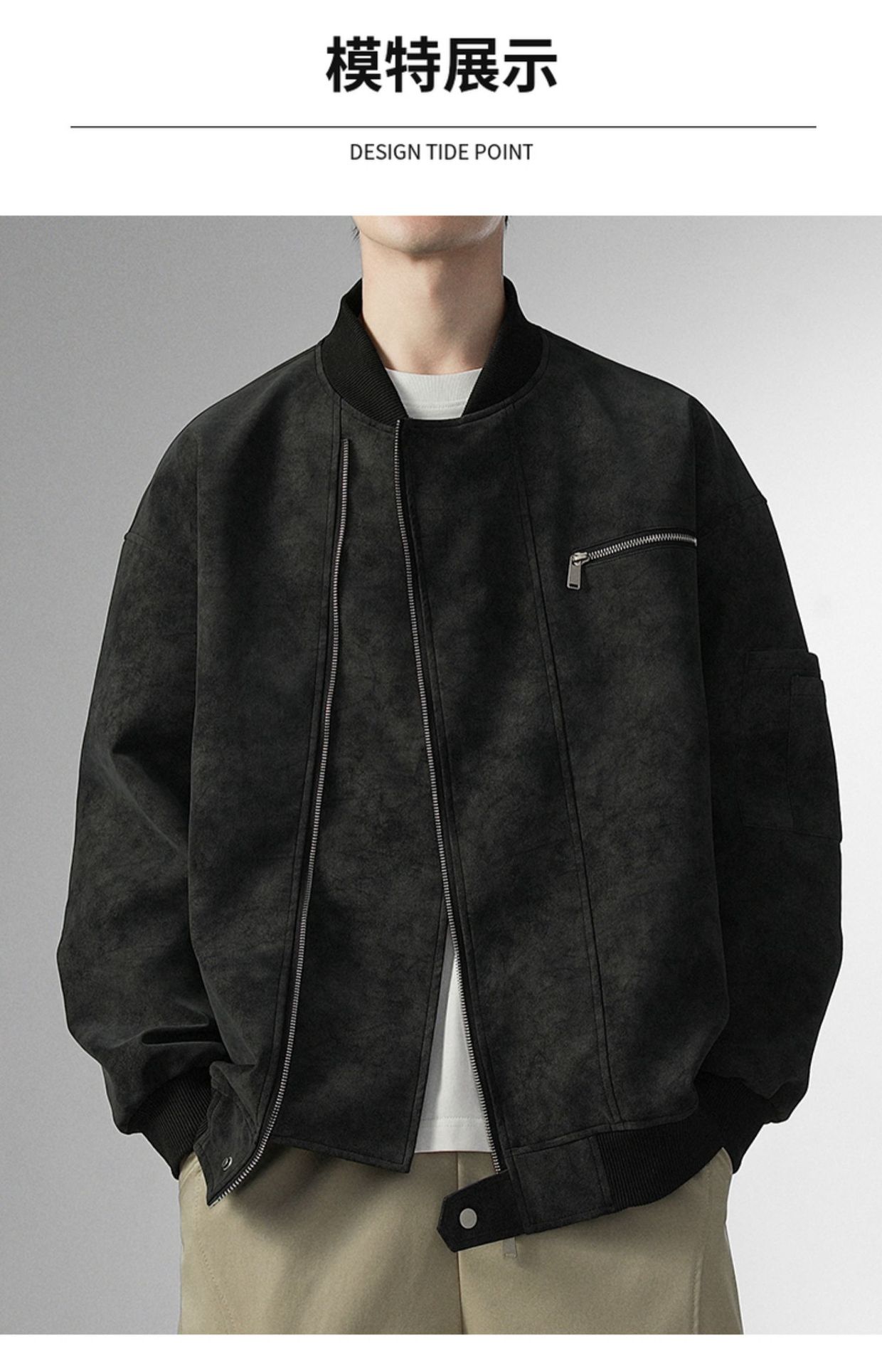 高质量重工美式复古皮衣外套男款秋冬高级感夹克棒球服男上衣潮牌