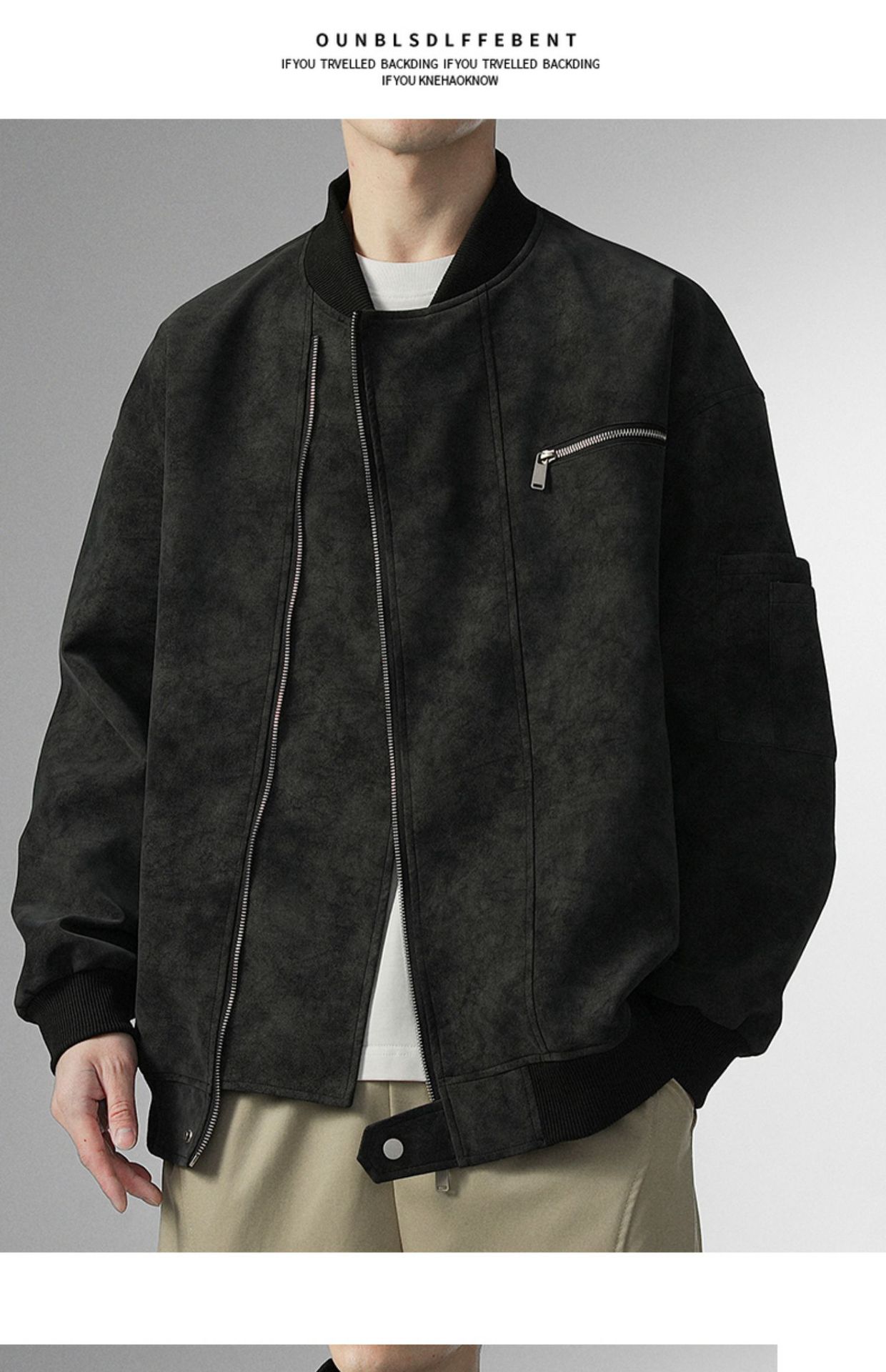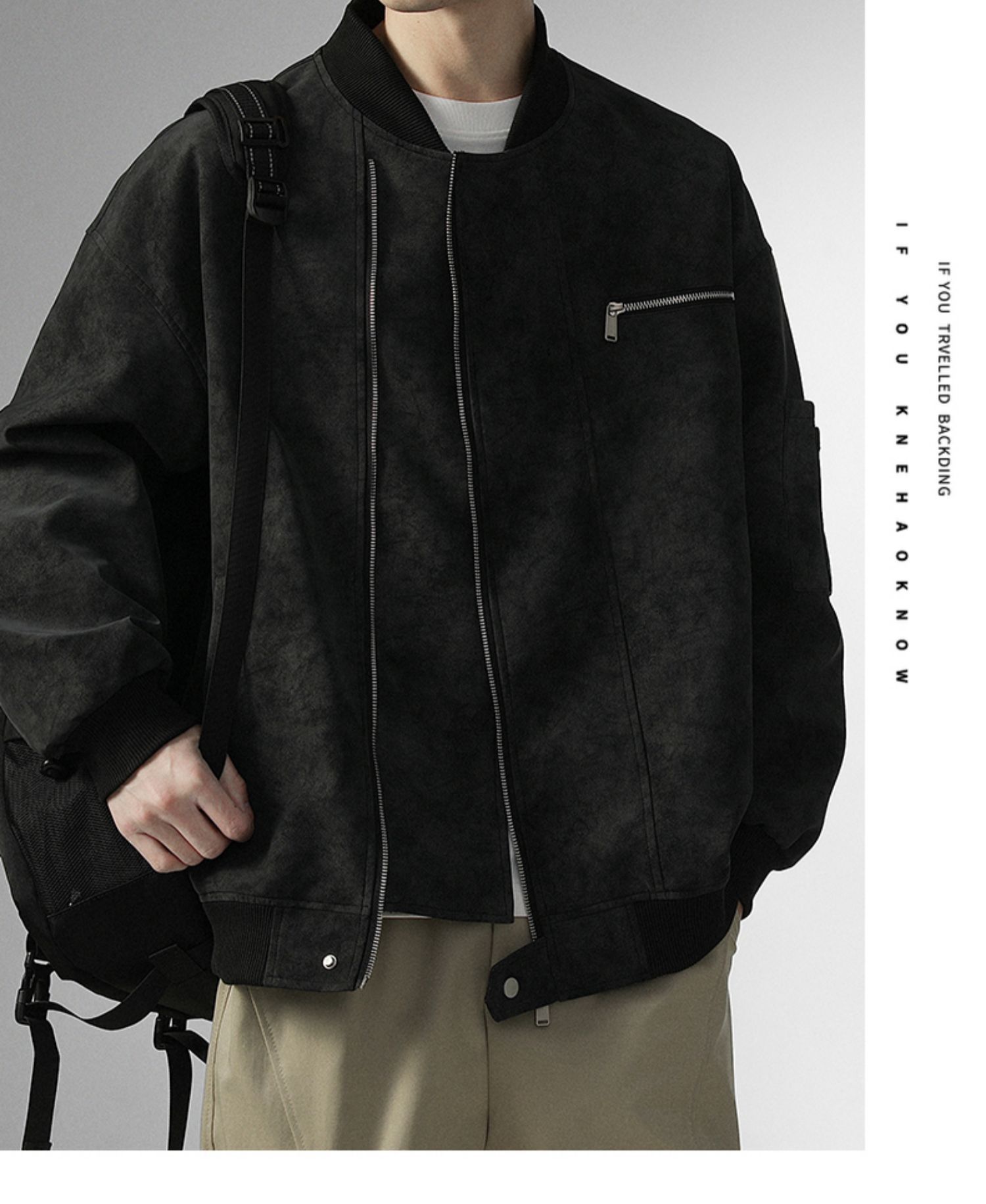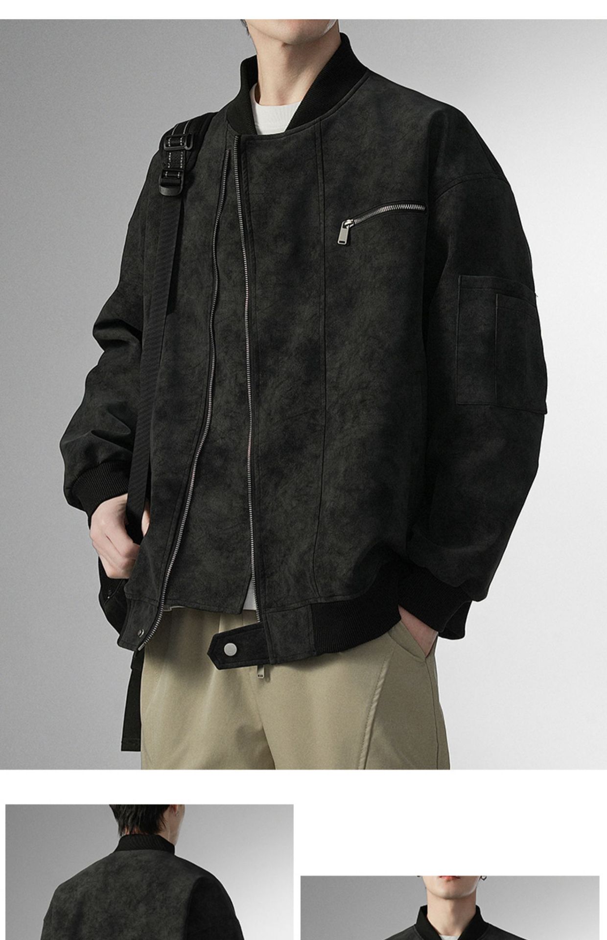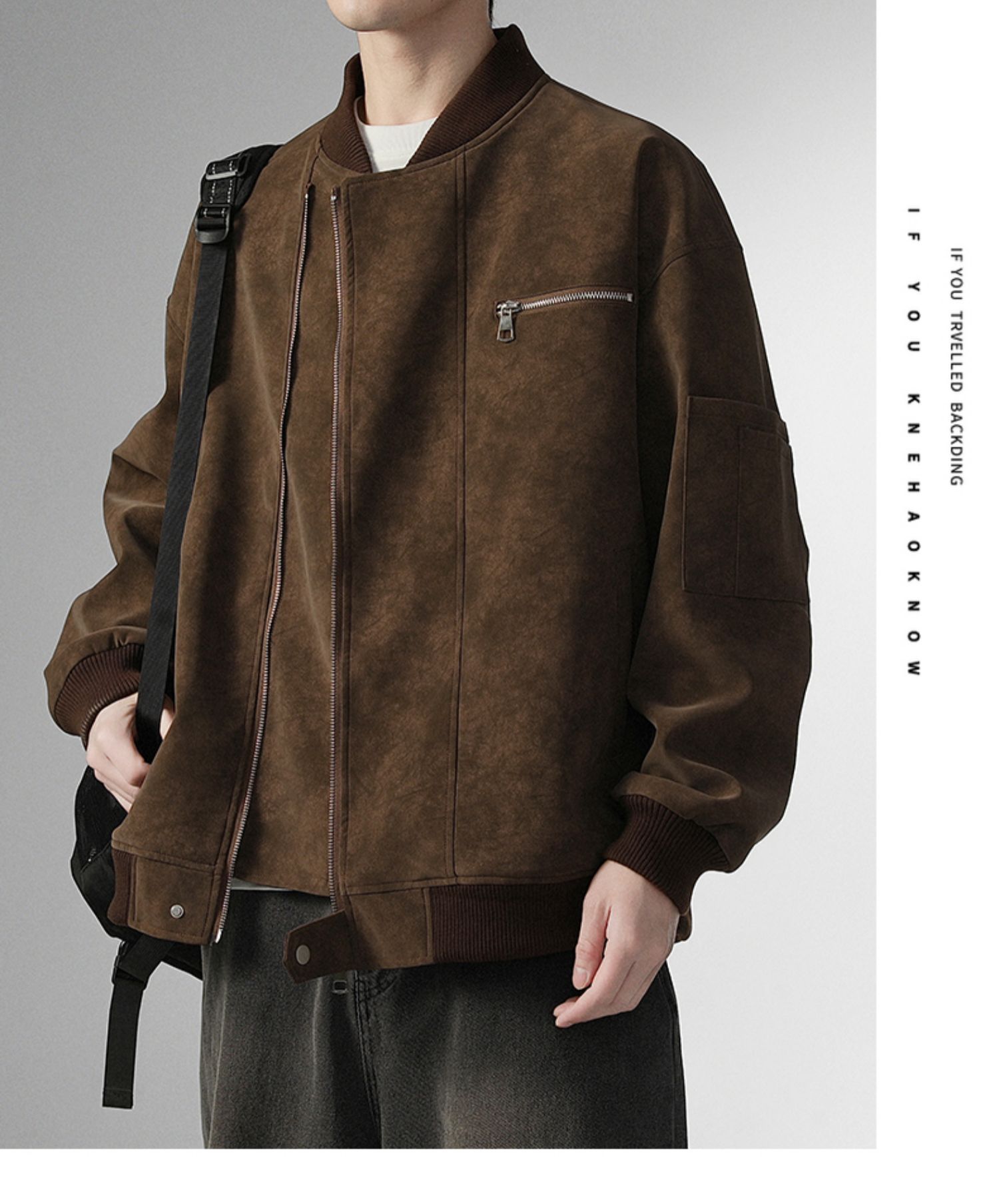 高质量重工美式复古皮衣外套男款秋冬高级感夹克棒球服男上衣潮牌