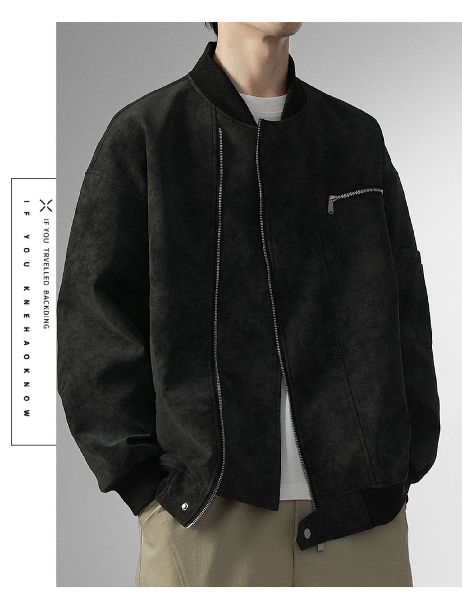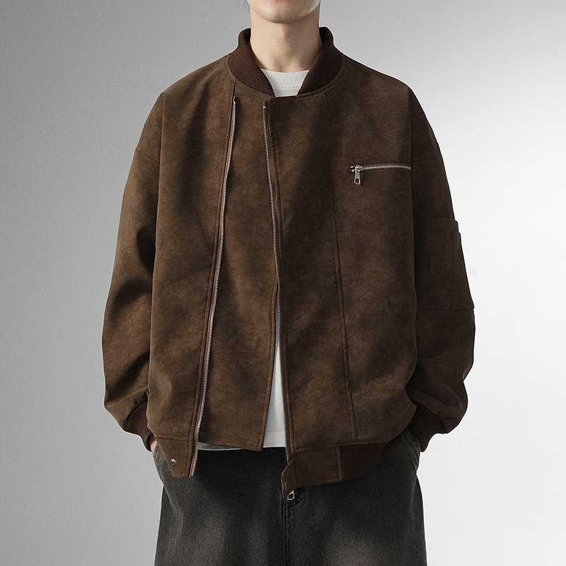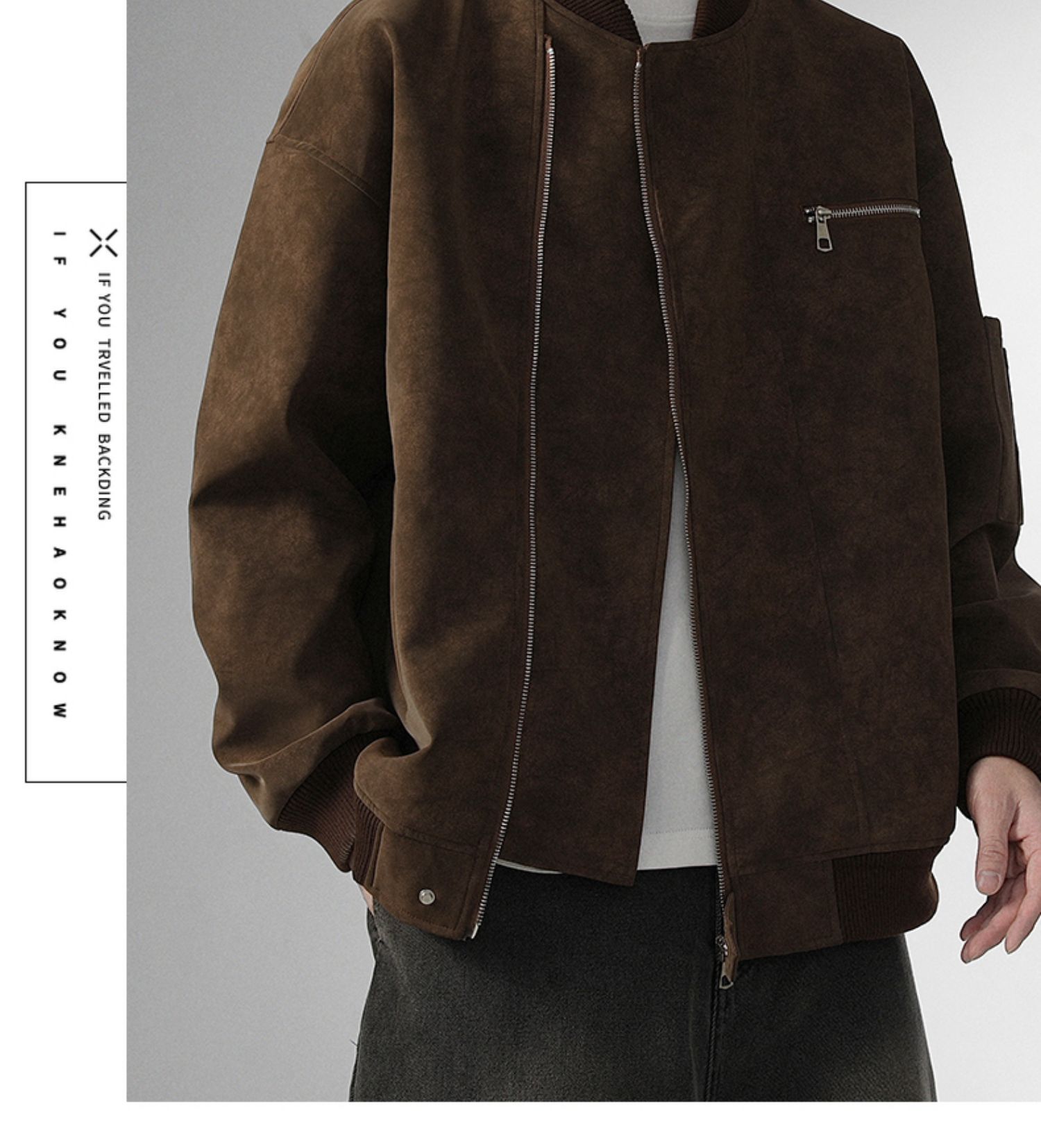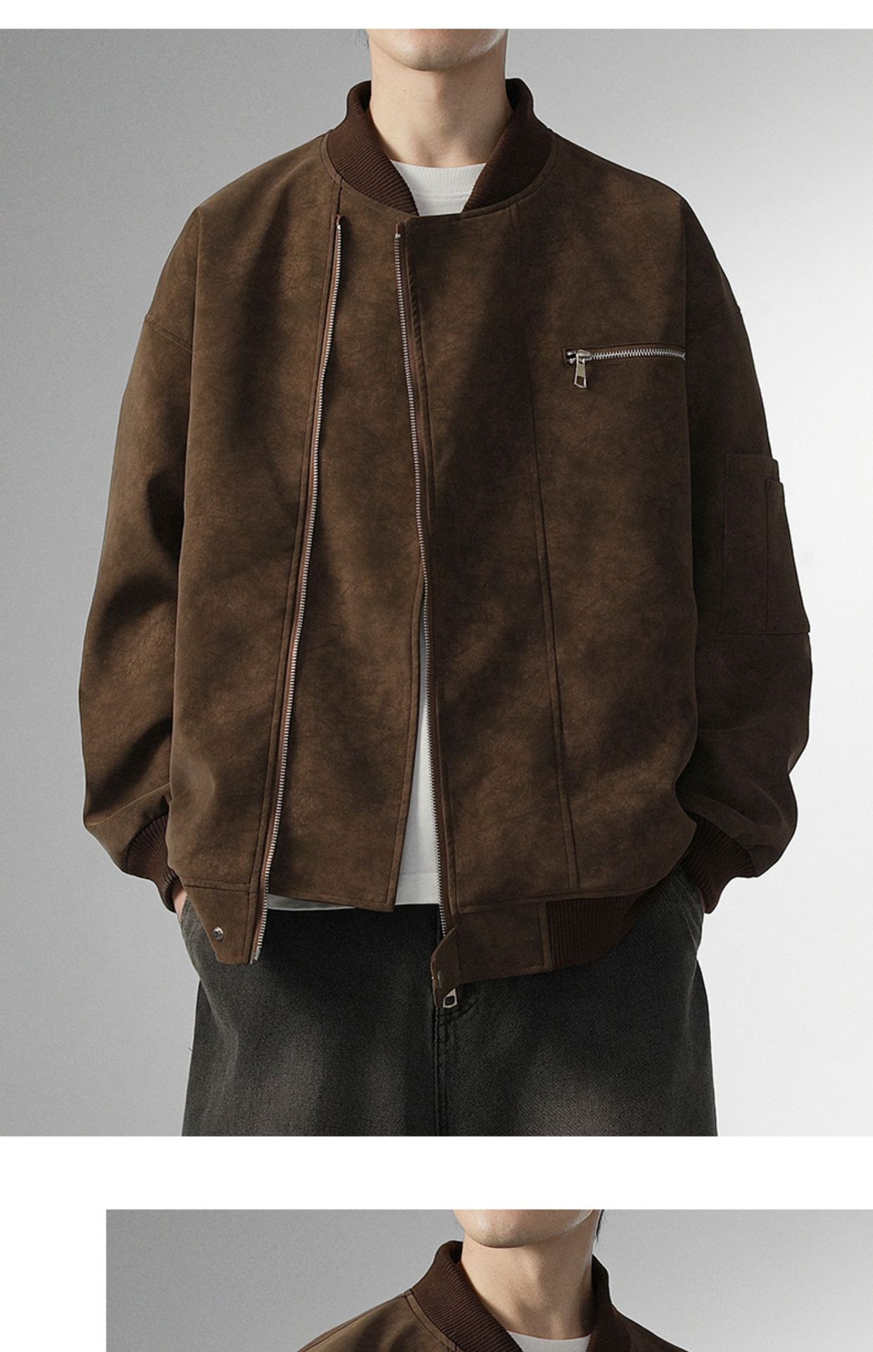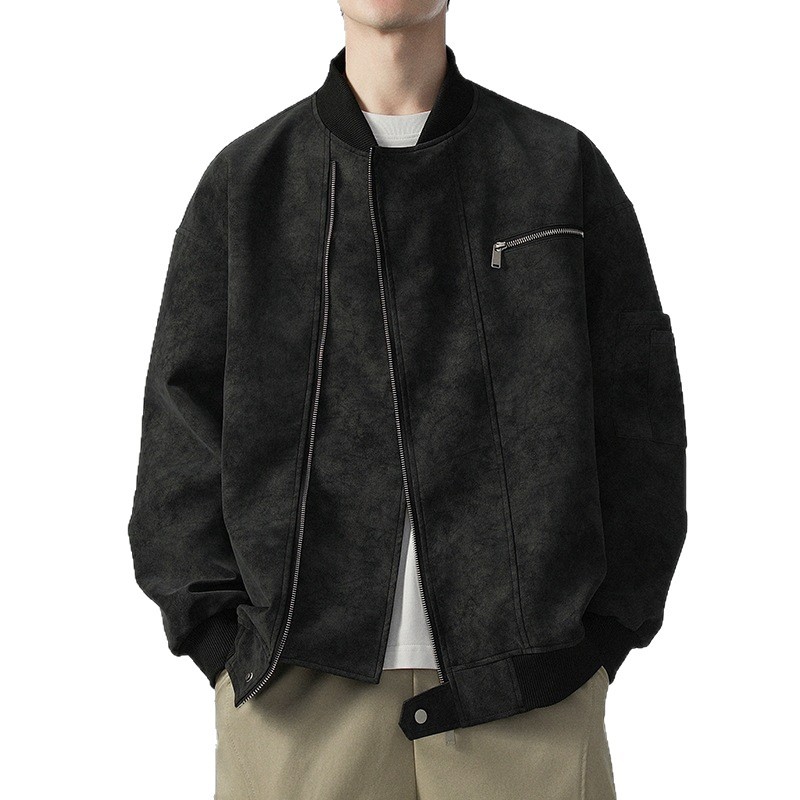 高质量重工美式复古皮衣外套男款秋冬高级感夹克棒球服男上衣潮牌
