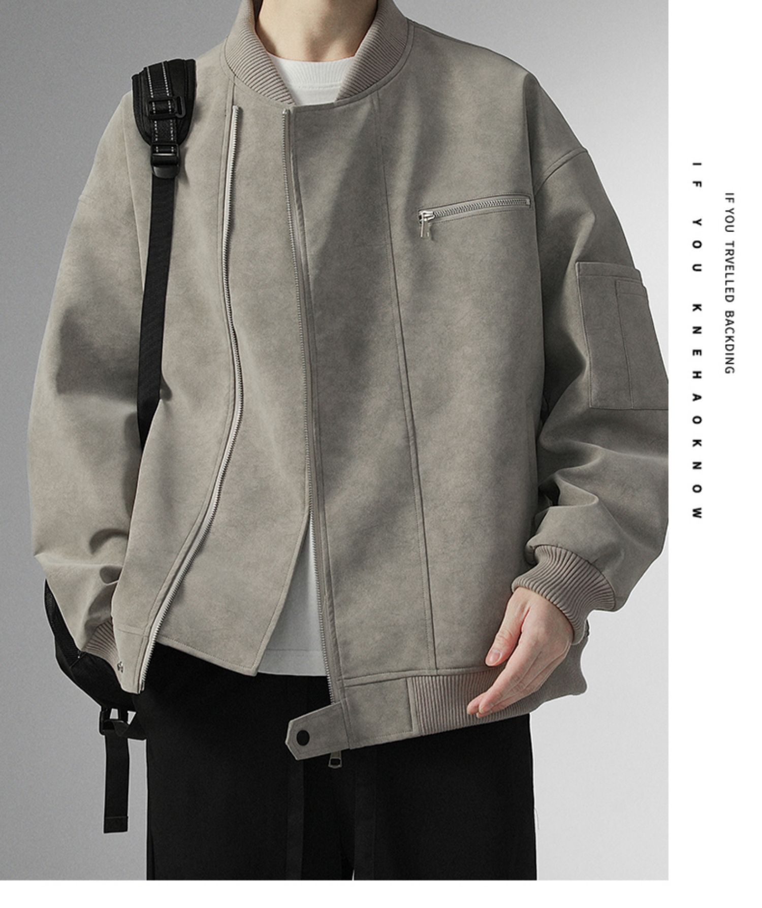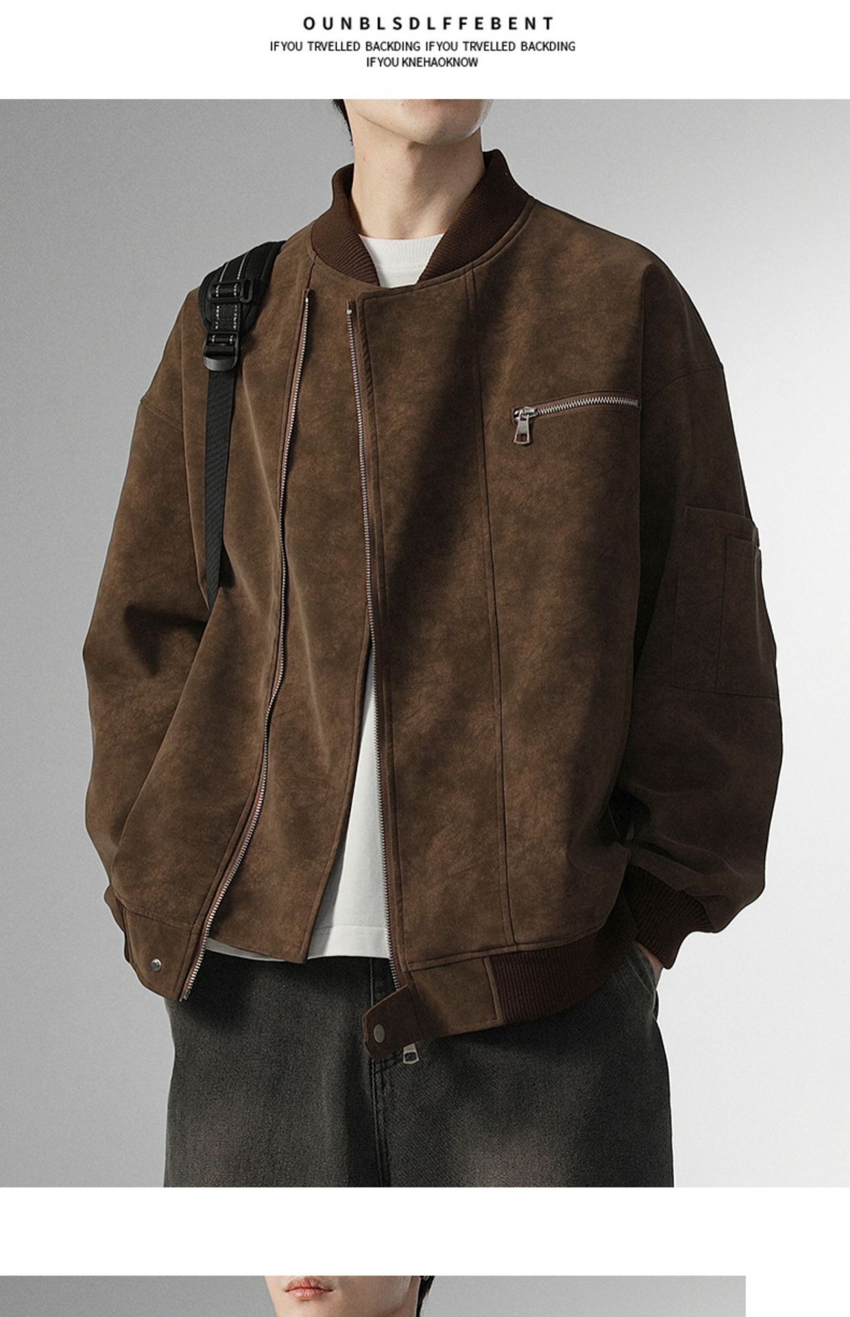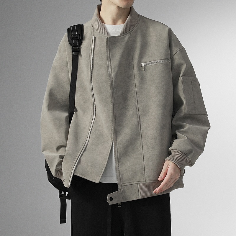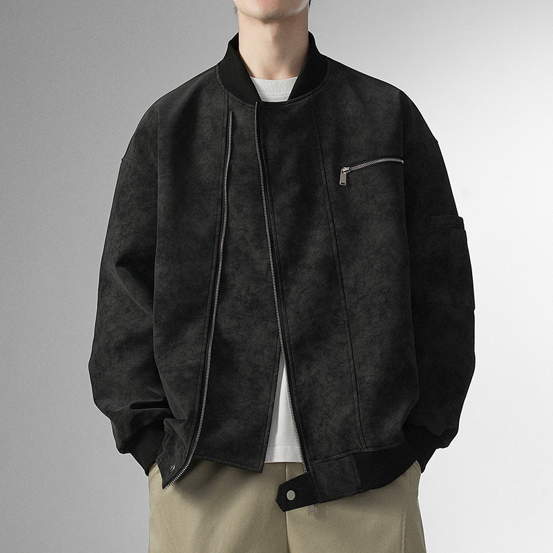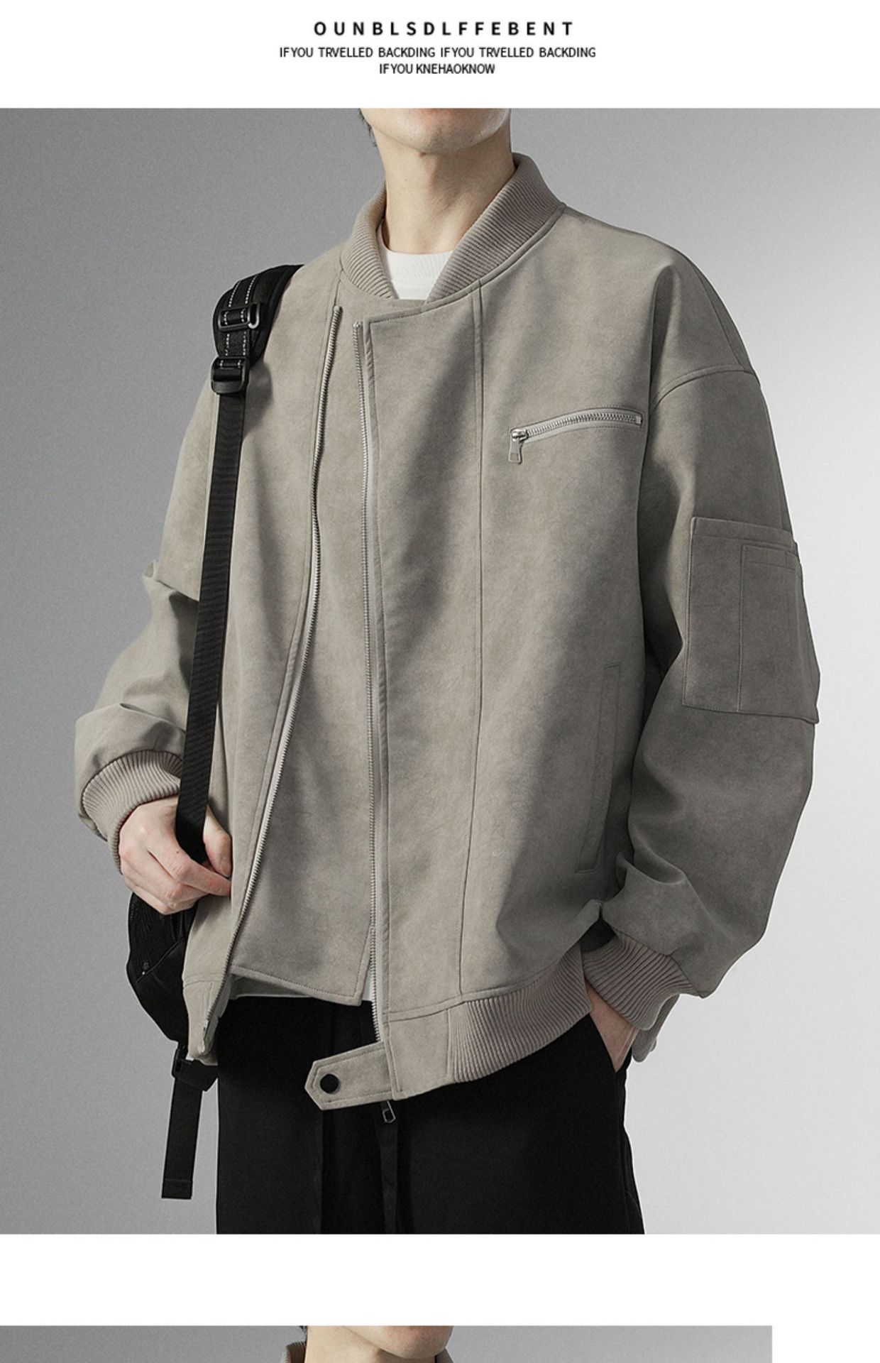 高质量重工美式复古皮衣外套男款秋冬高级感夹克棒球服男上衣潮牌