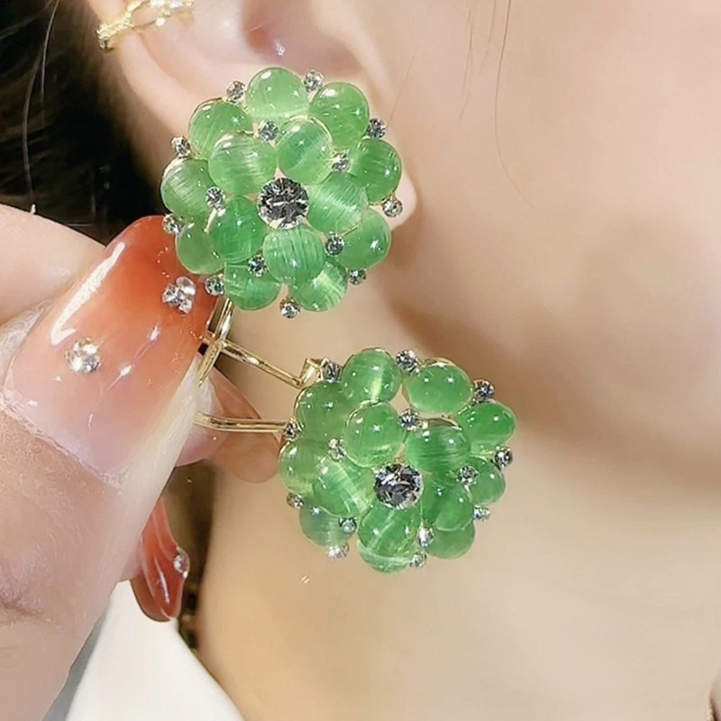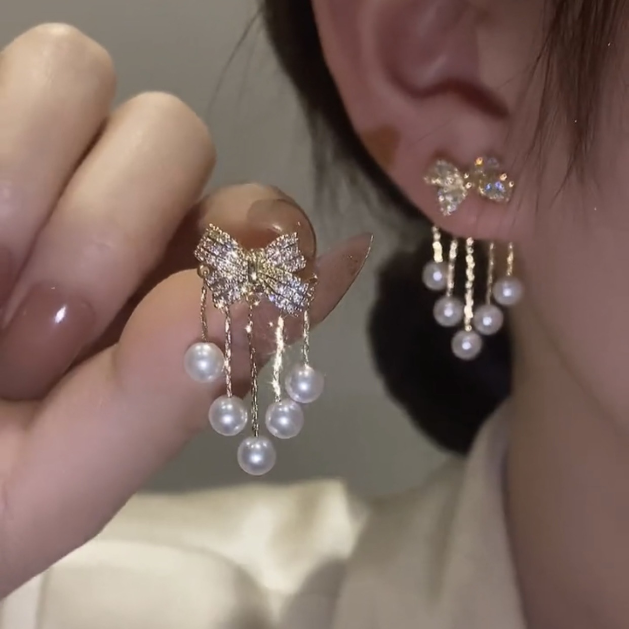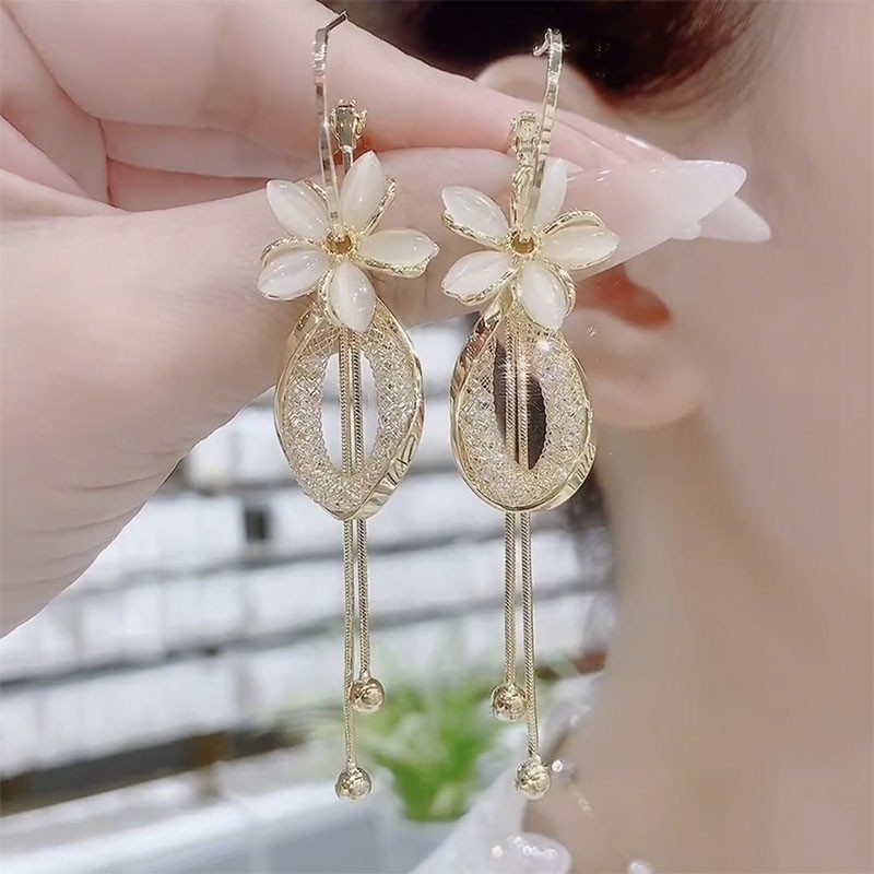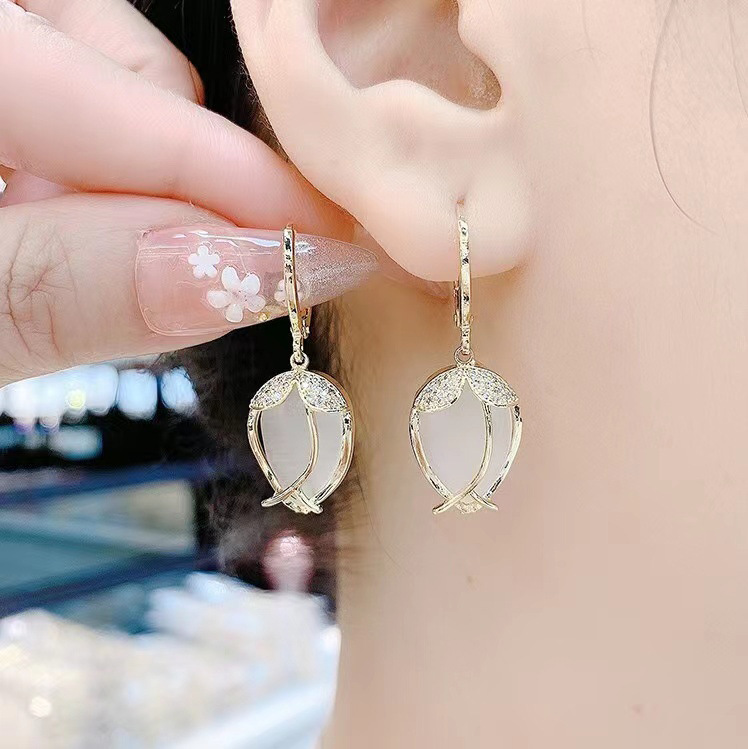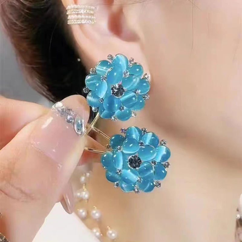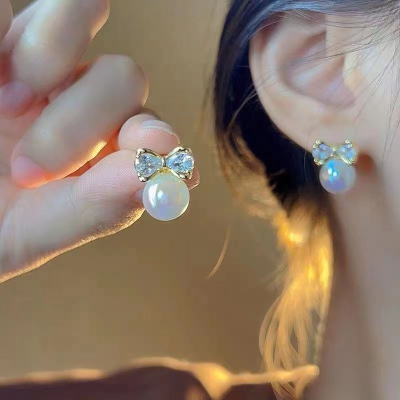 锆石蝴蝶结流苏耳环925银针猫眼石花瓣轻奢高级感滴釉爱心耳饰品