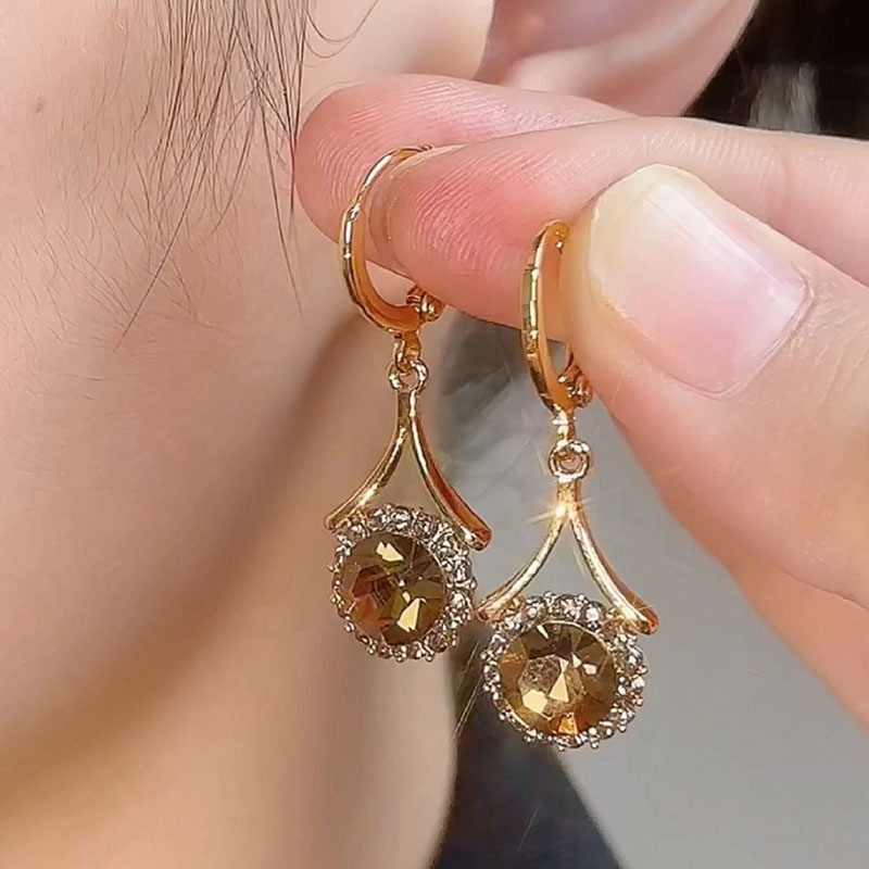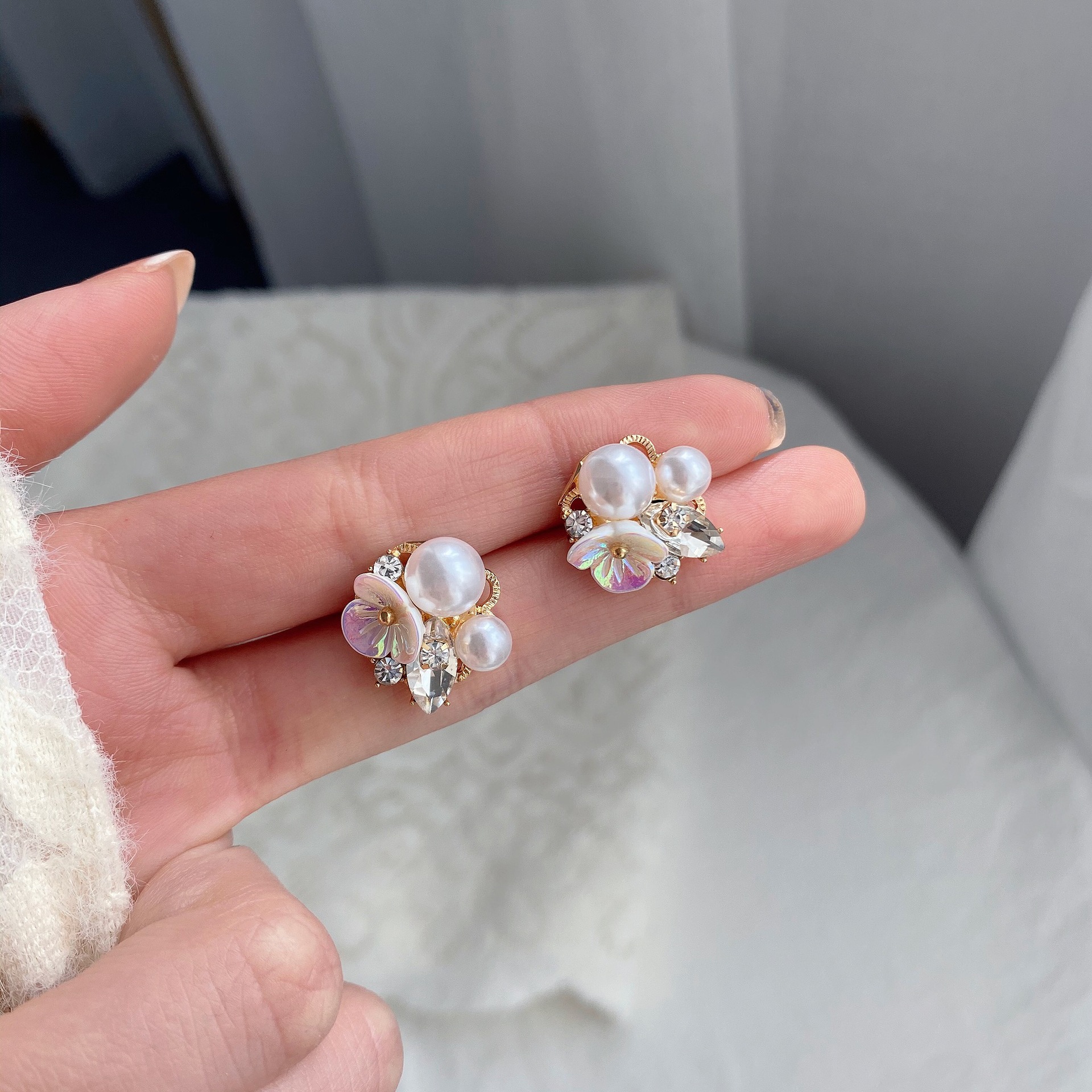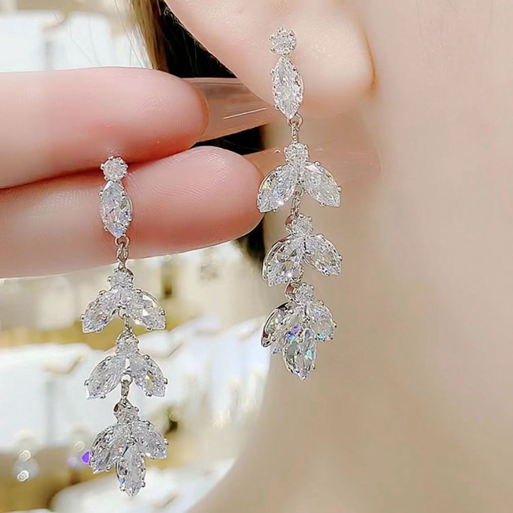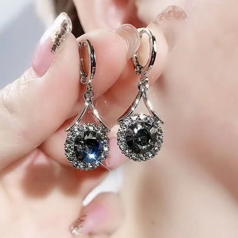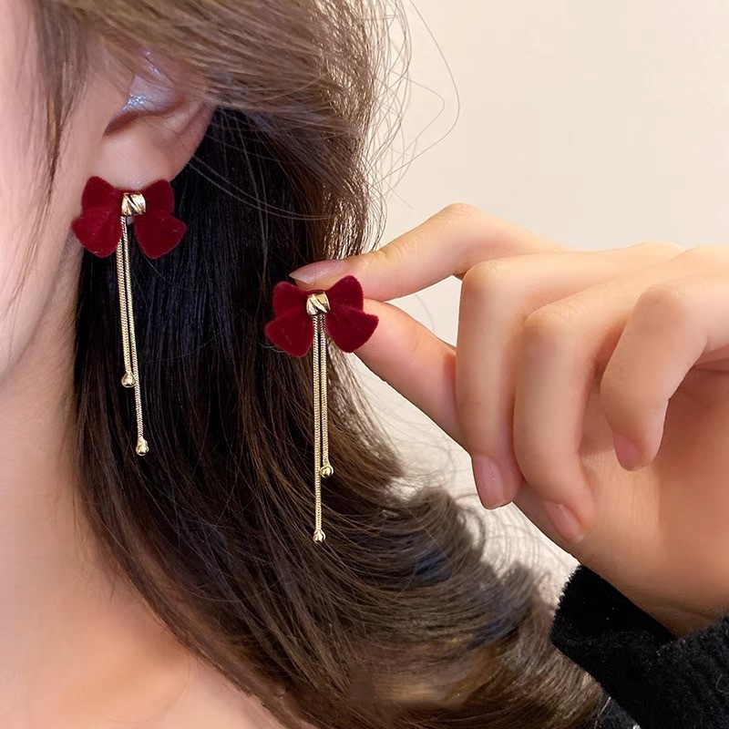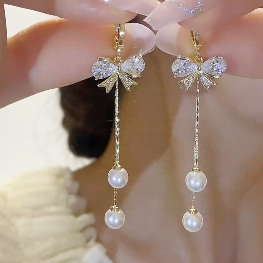 锆石蝴蝶结流苏耳环925银针猫眼石花瓣轻奢高级感滴釉爱心耳饰品