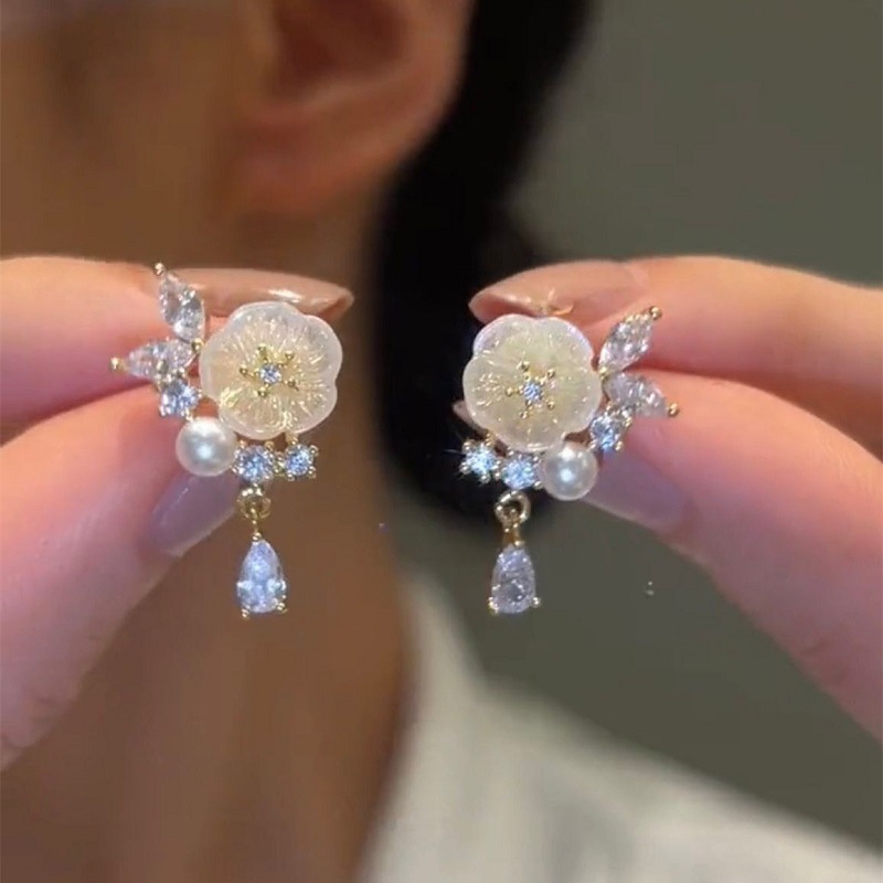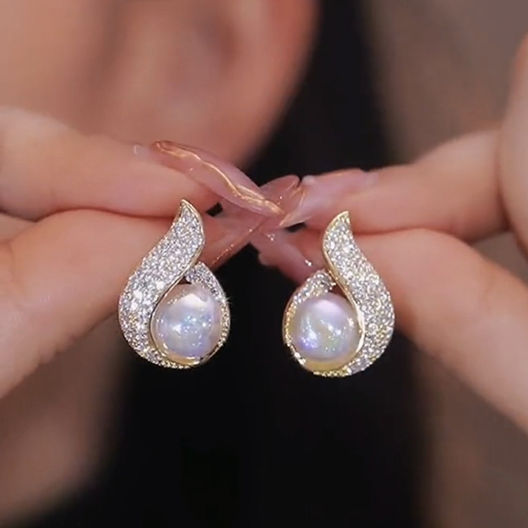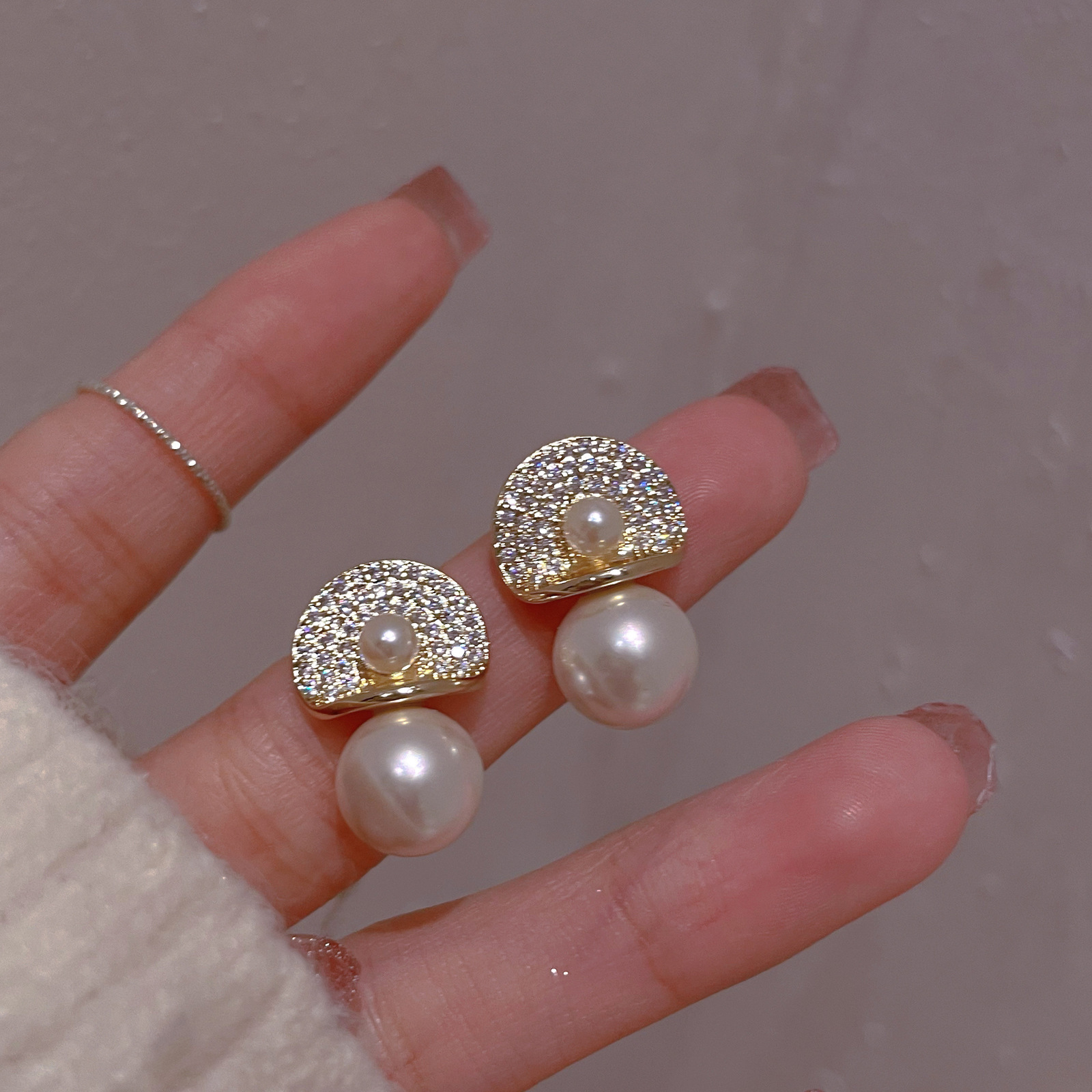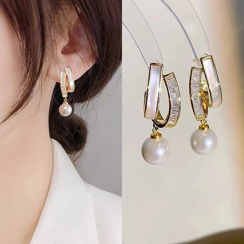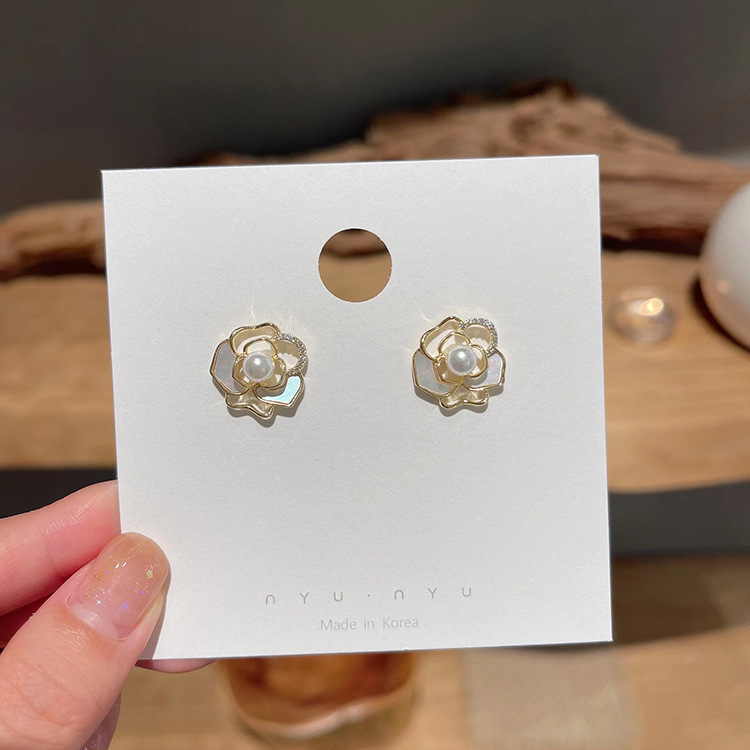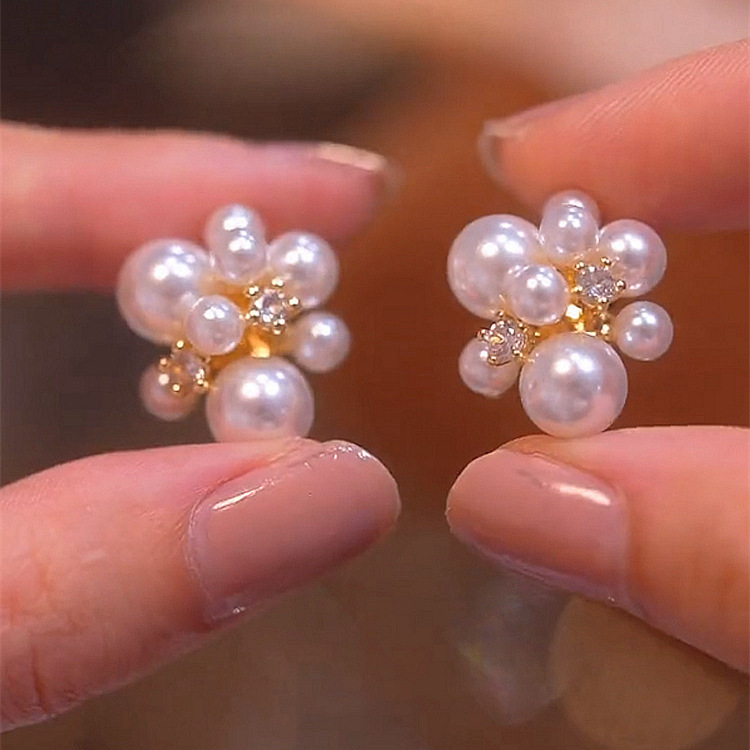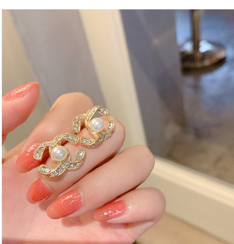 925银针小香风耳环轻奢高级感珍珠耳钉中古新款欧美气质耳饰批发