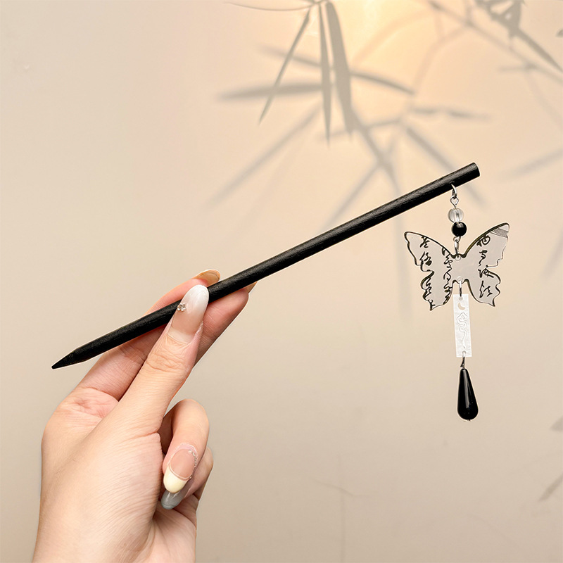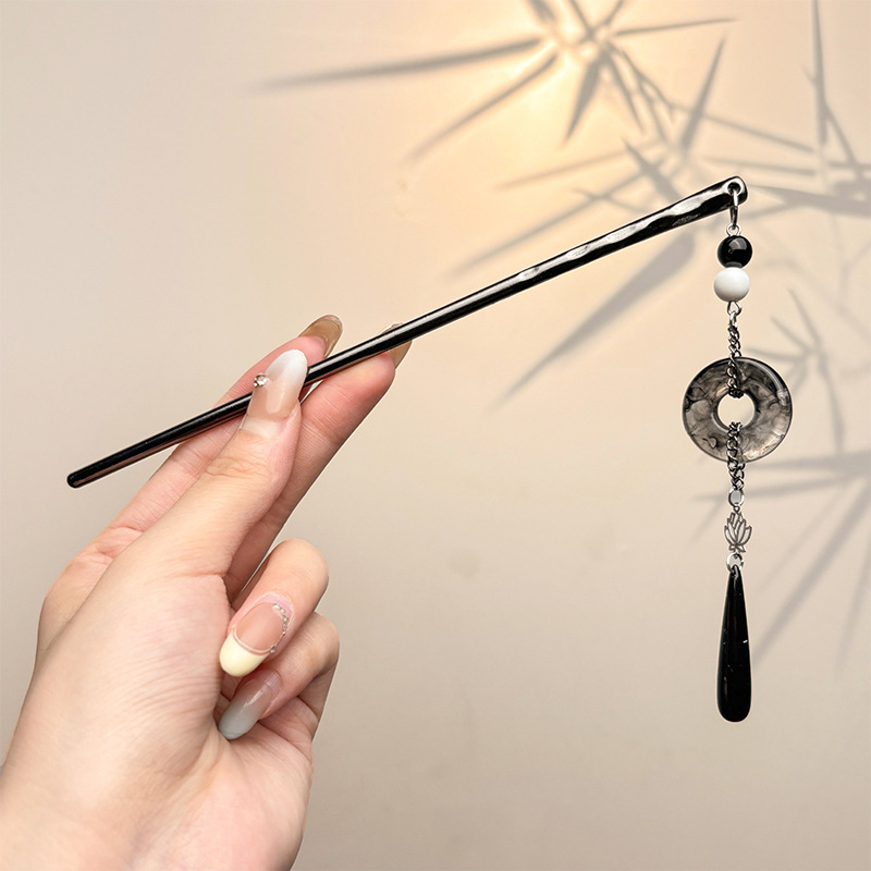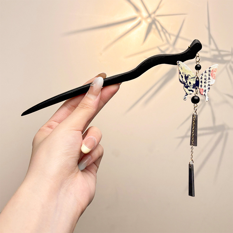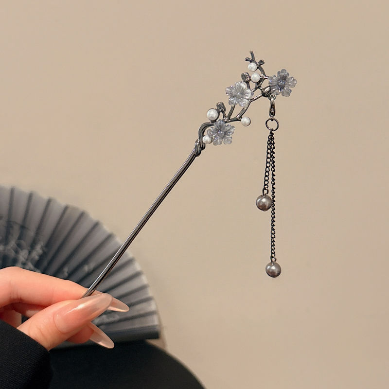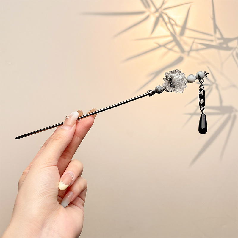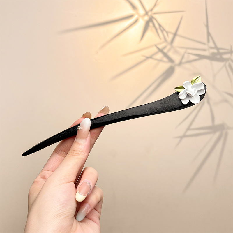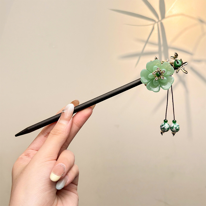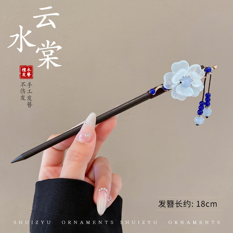 古风绒花新中式发簪高级感小众木簪汉服后脑勺发钗女簪子发饰头饰