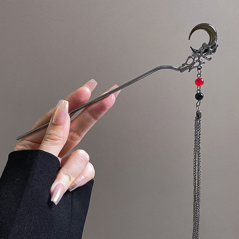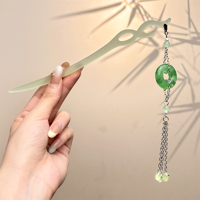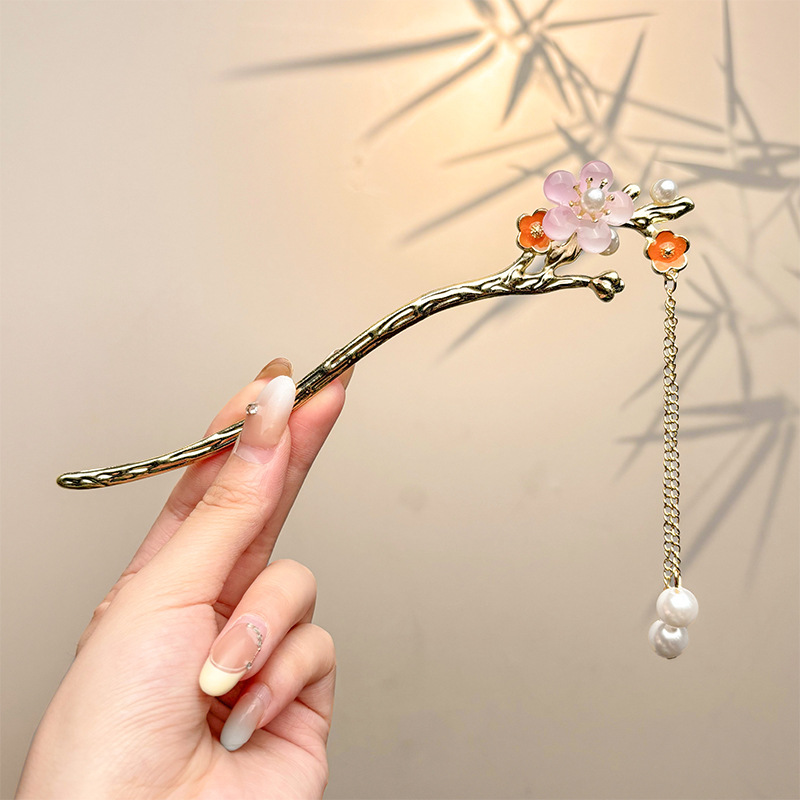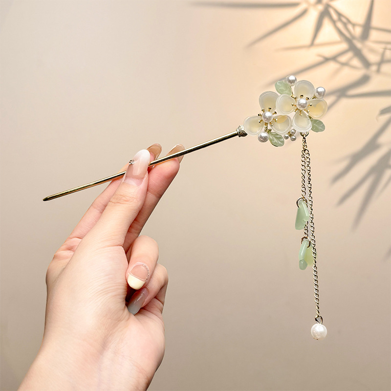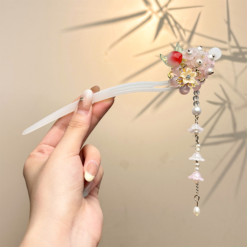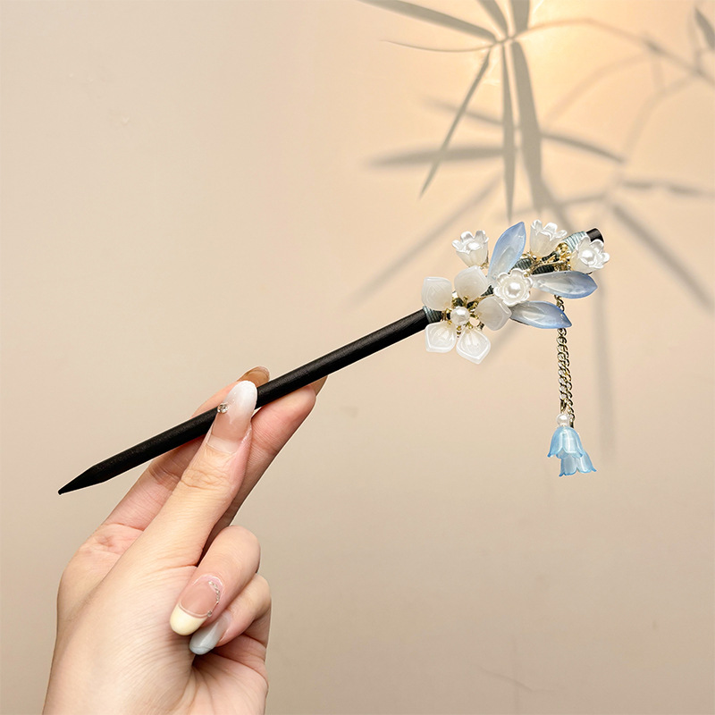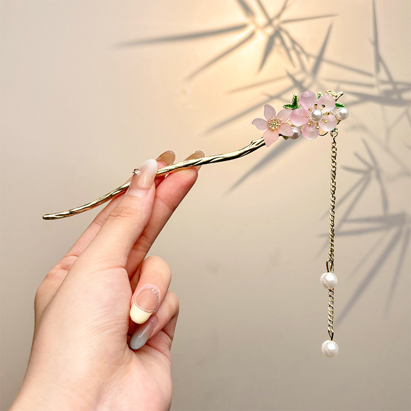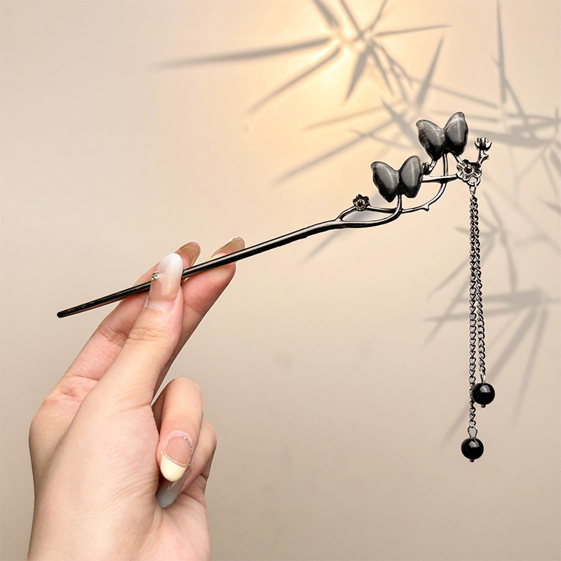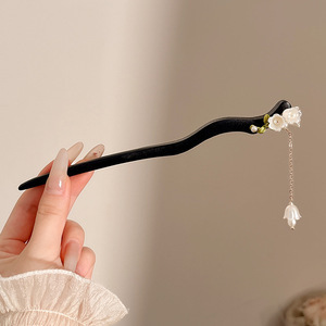 古风绒花新中式发簪高级感小众木簪汉服后脑勺发钗女簪子发饰头饰