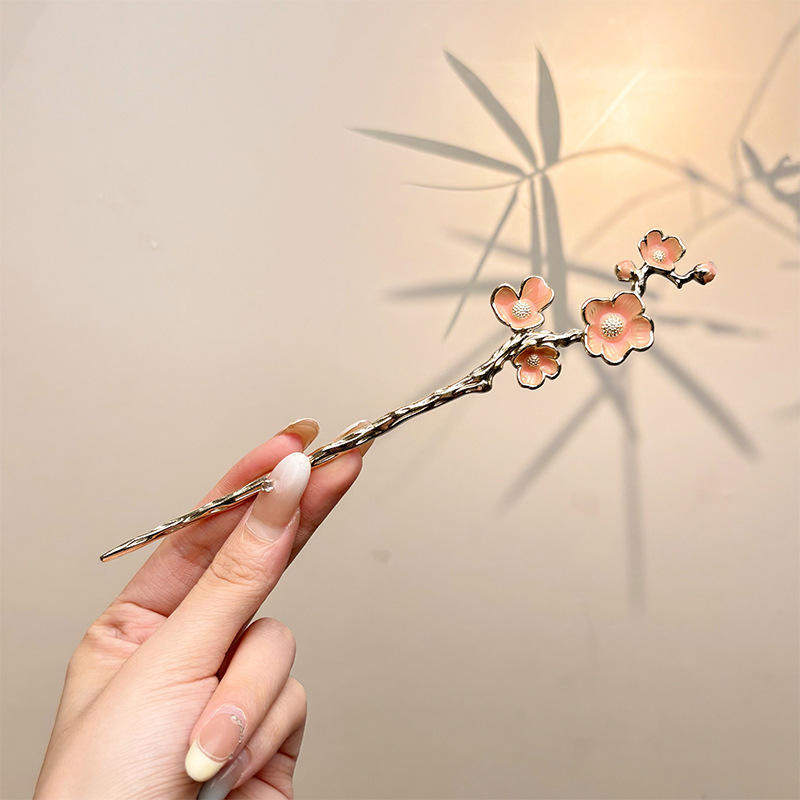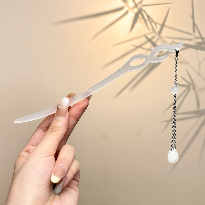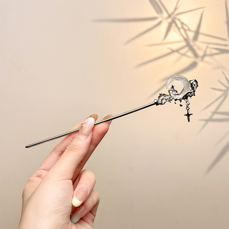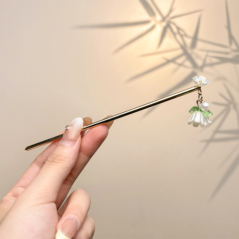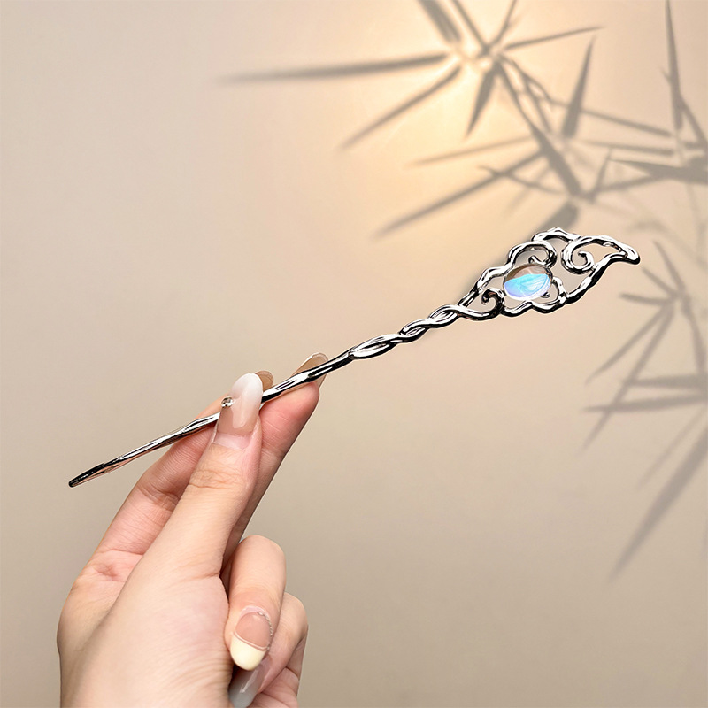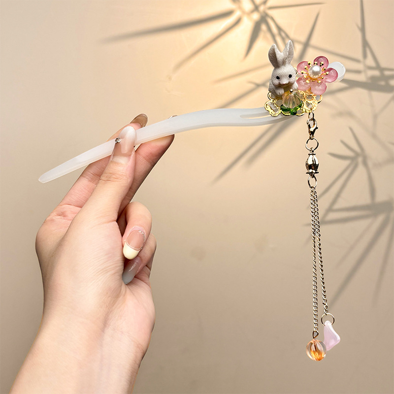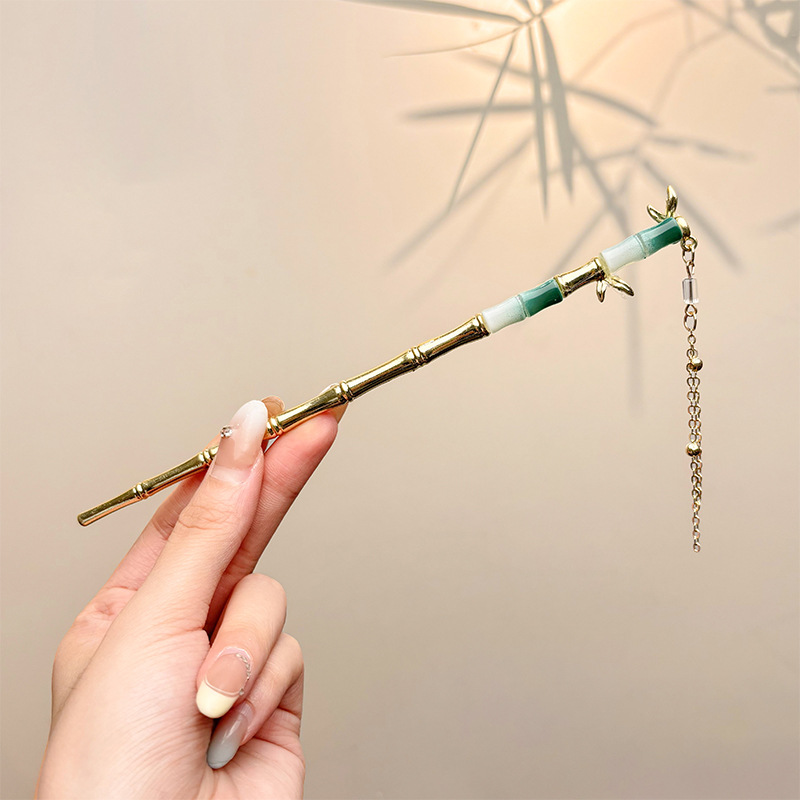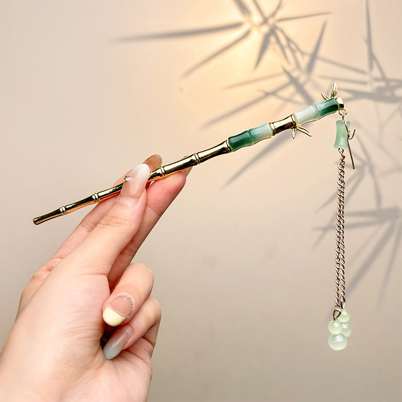 古风绒花新中式发簪高级感小众木簪汉服后脑勺发钗女簪子发饰头饰
