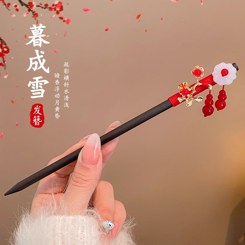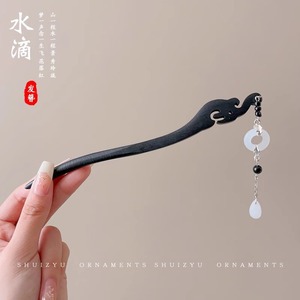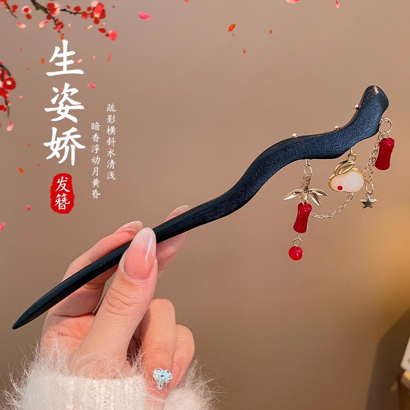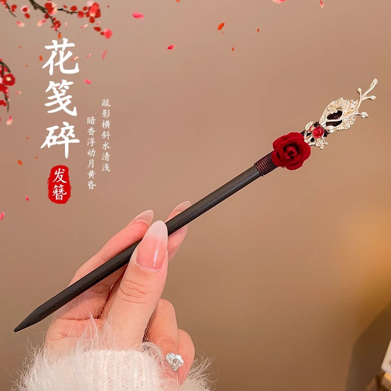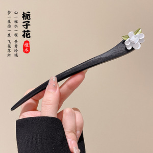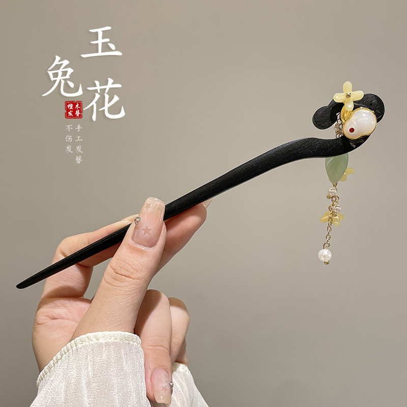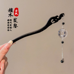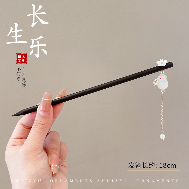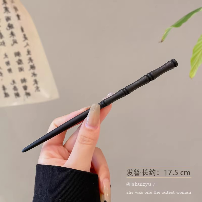 汉服古风合金发簪不伤发后脑勺盘法簪子气质优雅檀木木簪发饰头饰