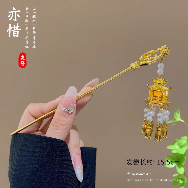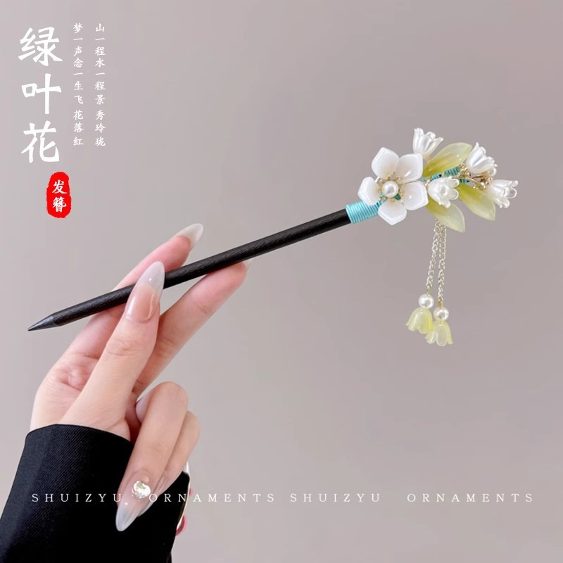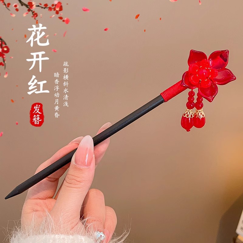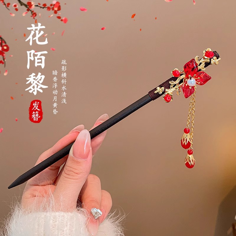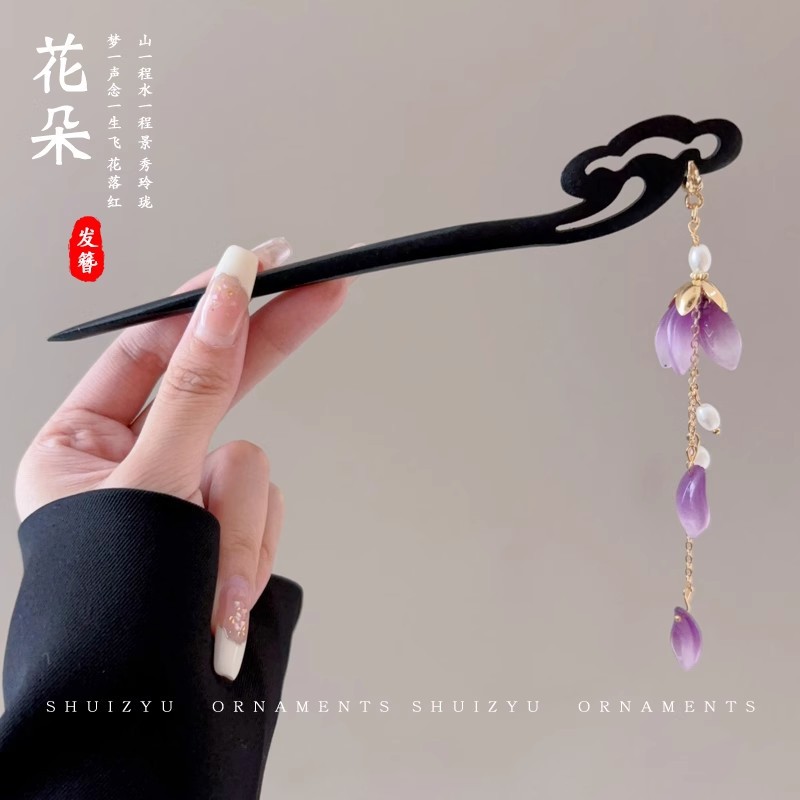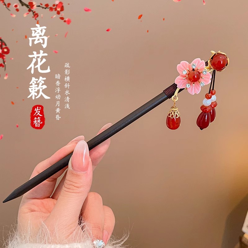汉服古风合金发簪不伤发后脑勺盘法簪子气质优雅檀木木簪发饰头饰
