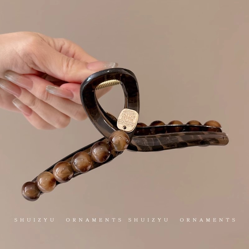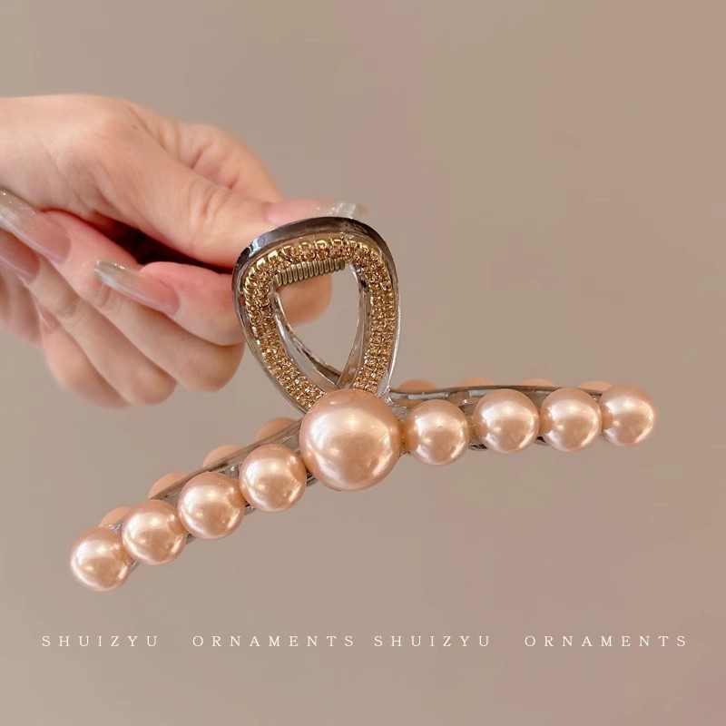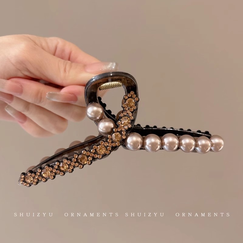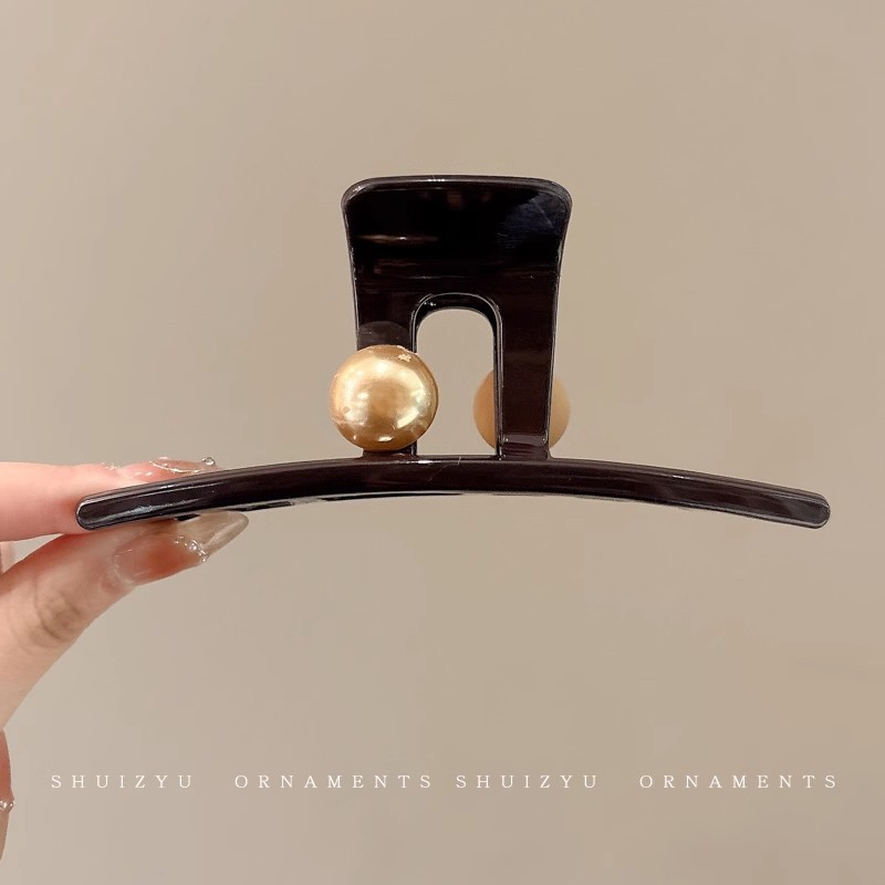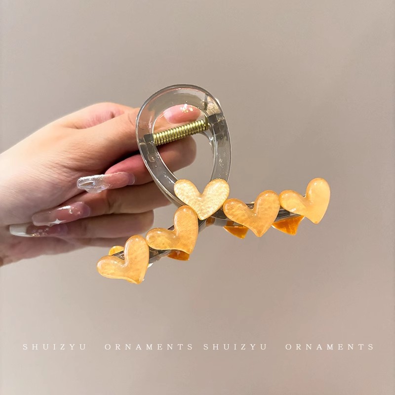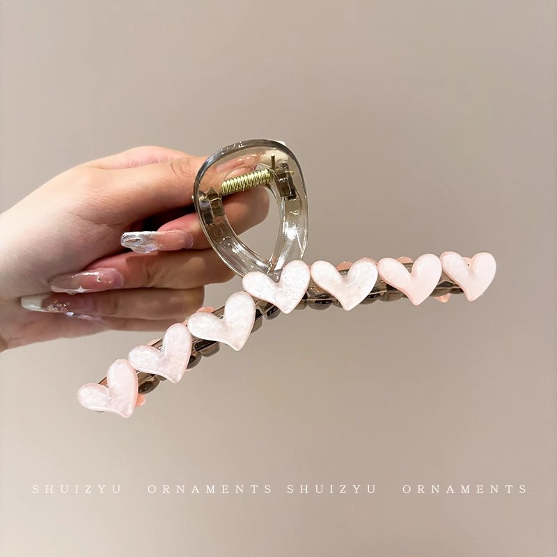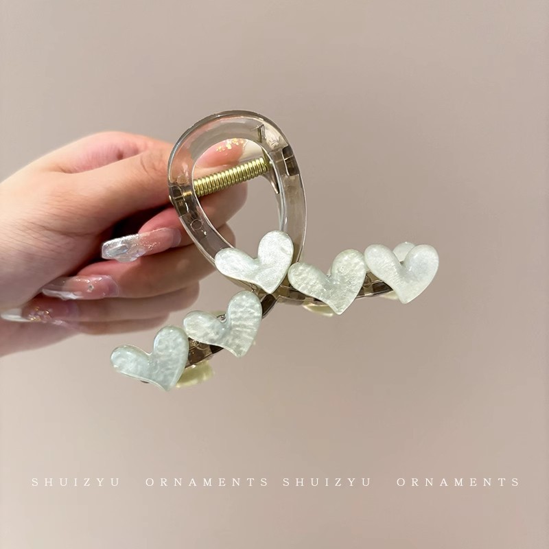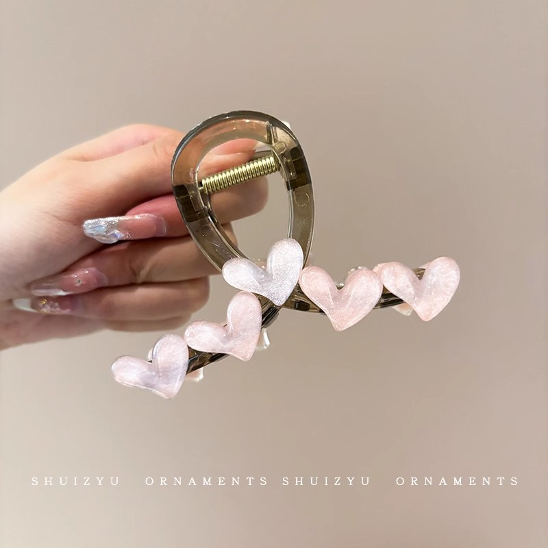 韩系简约高级感醋酸发夹后脑勺发量多爱心珍珠抓夹气质百搭发饰女