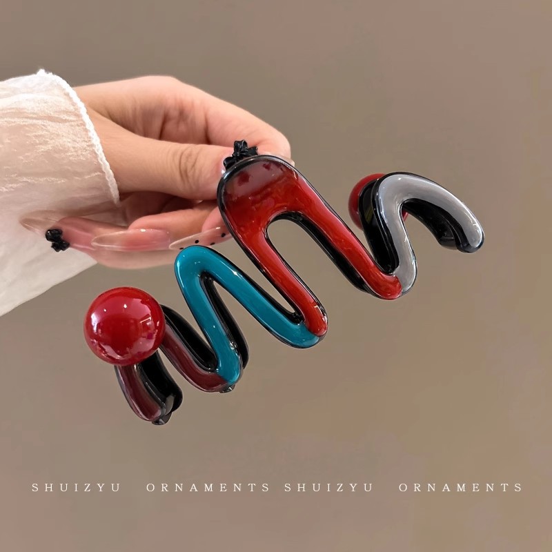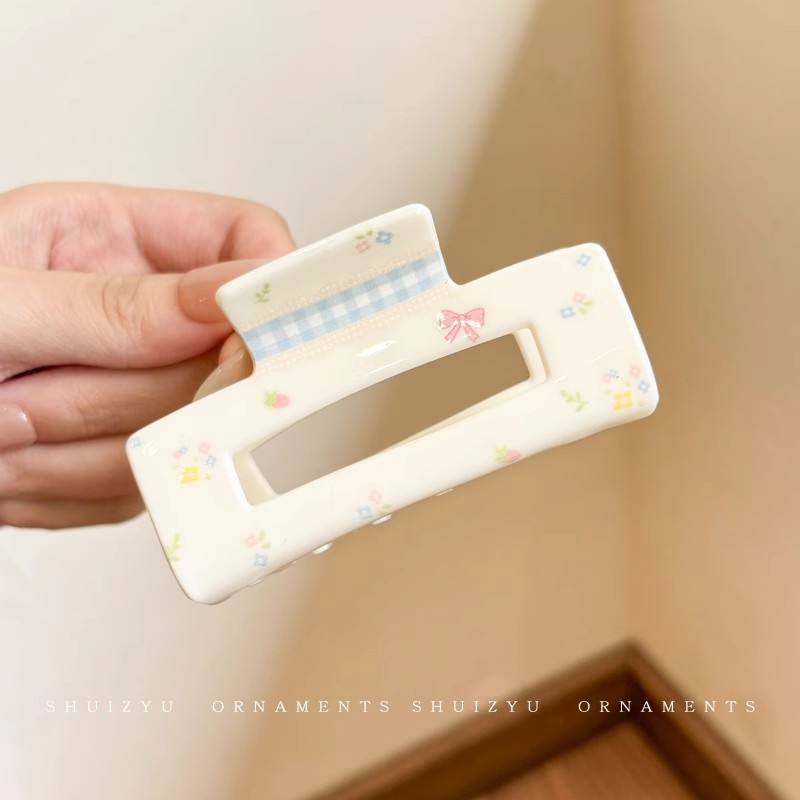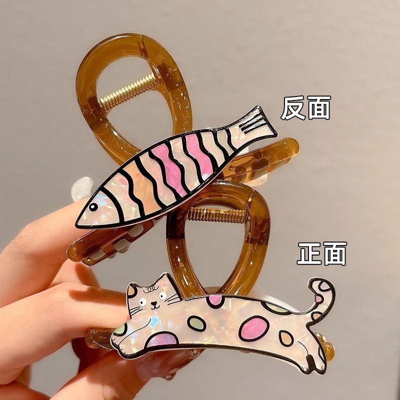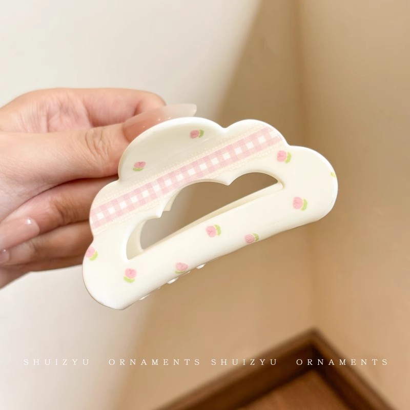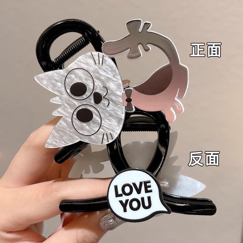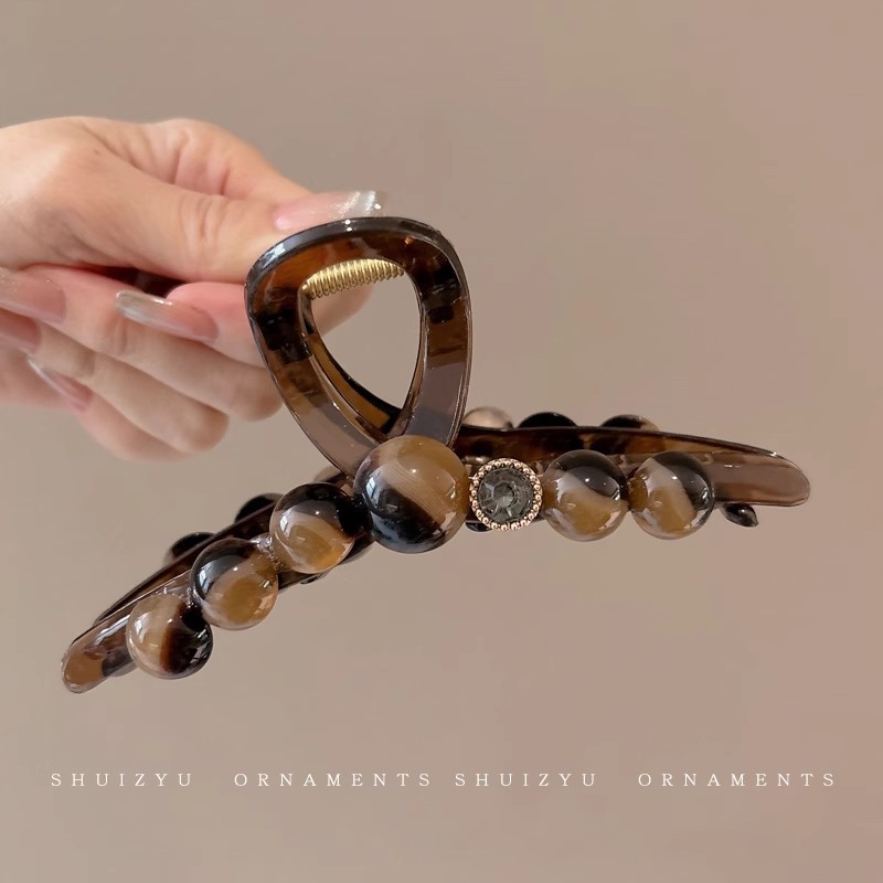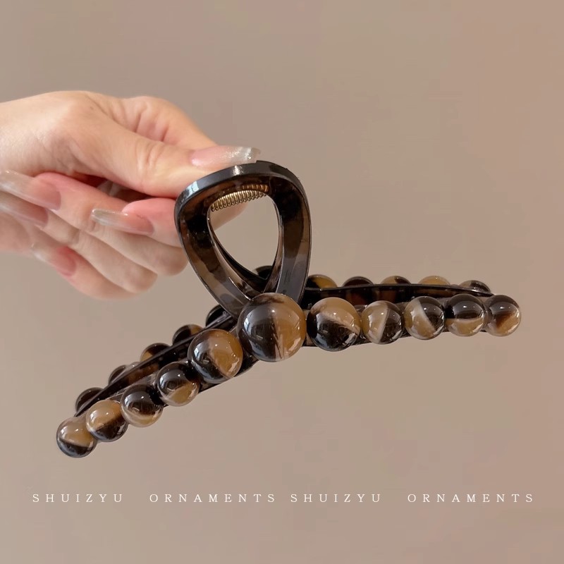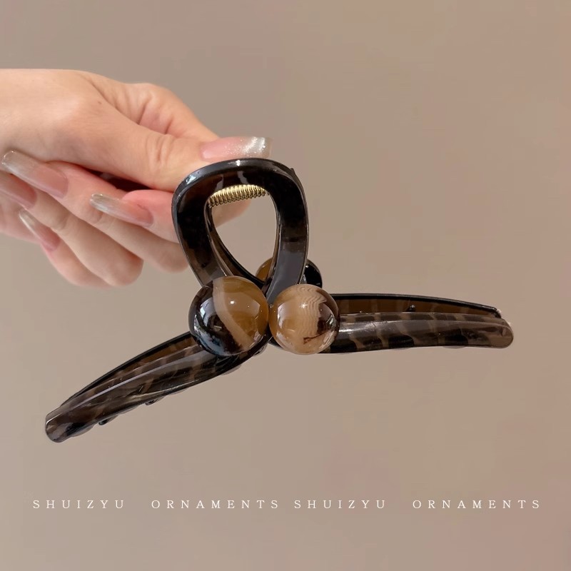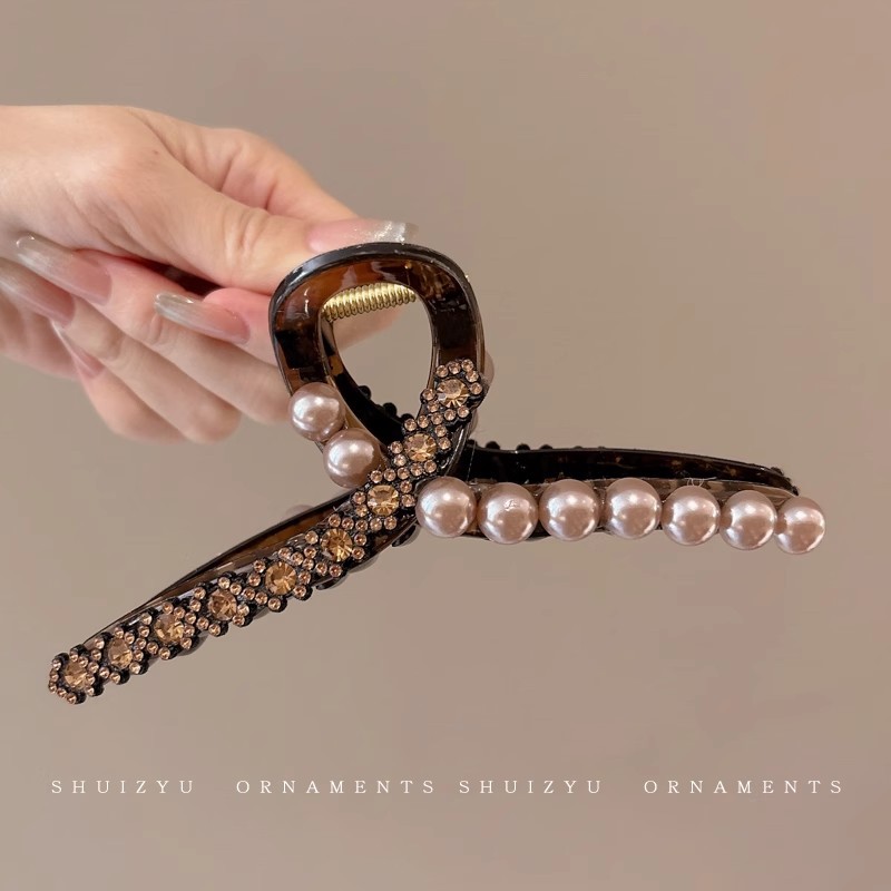 韩系简约高级感醋酸发夹后脑勺发量多爱心珍珠抓夹气质百搭发饰女