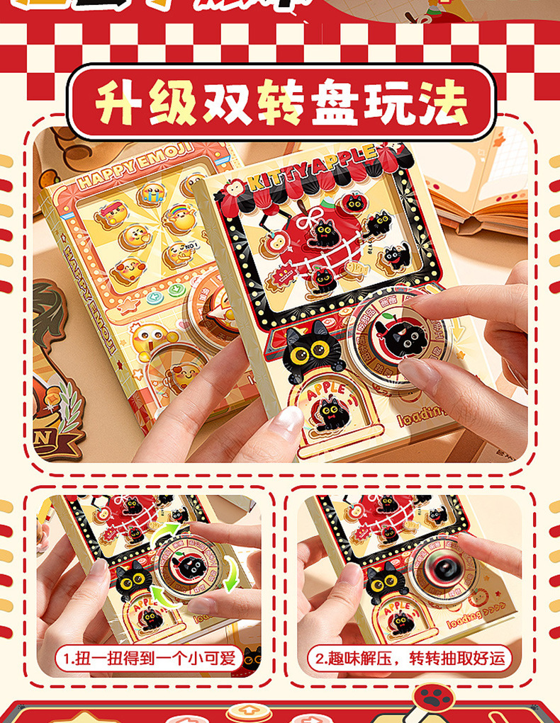 咔巴熊新款书双转盘扭蛋本学生笔记本日记本可爱卡通苹果小猫系列