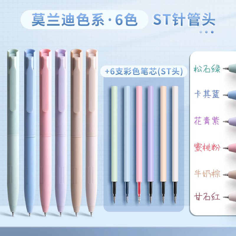 彩色中性笔莫兰迪色系高颜值速干按动式手账笔做笔记学生用st笔头