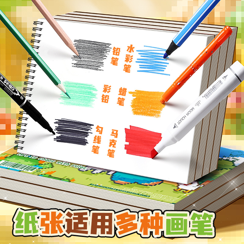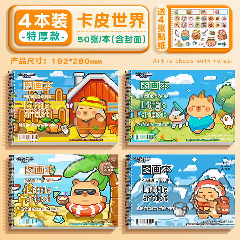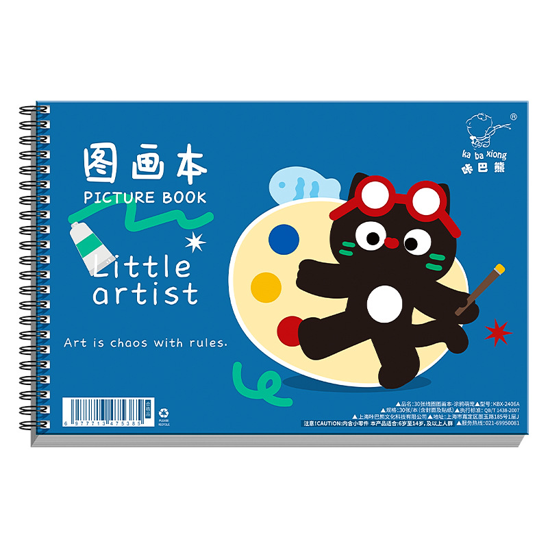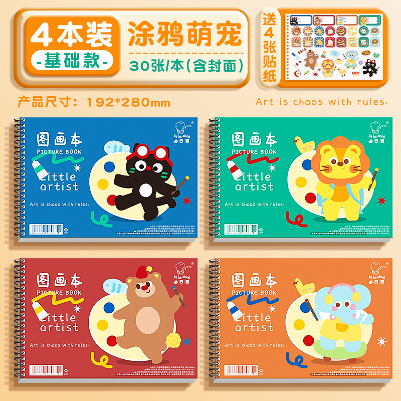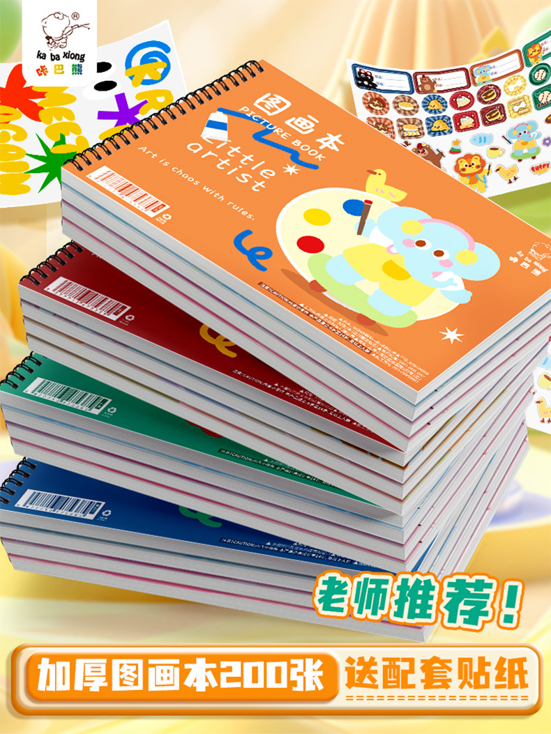 咔巴熊线圈图画本画画本小学初中生加厚素描本卡通贴纸空白涂色本