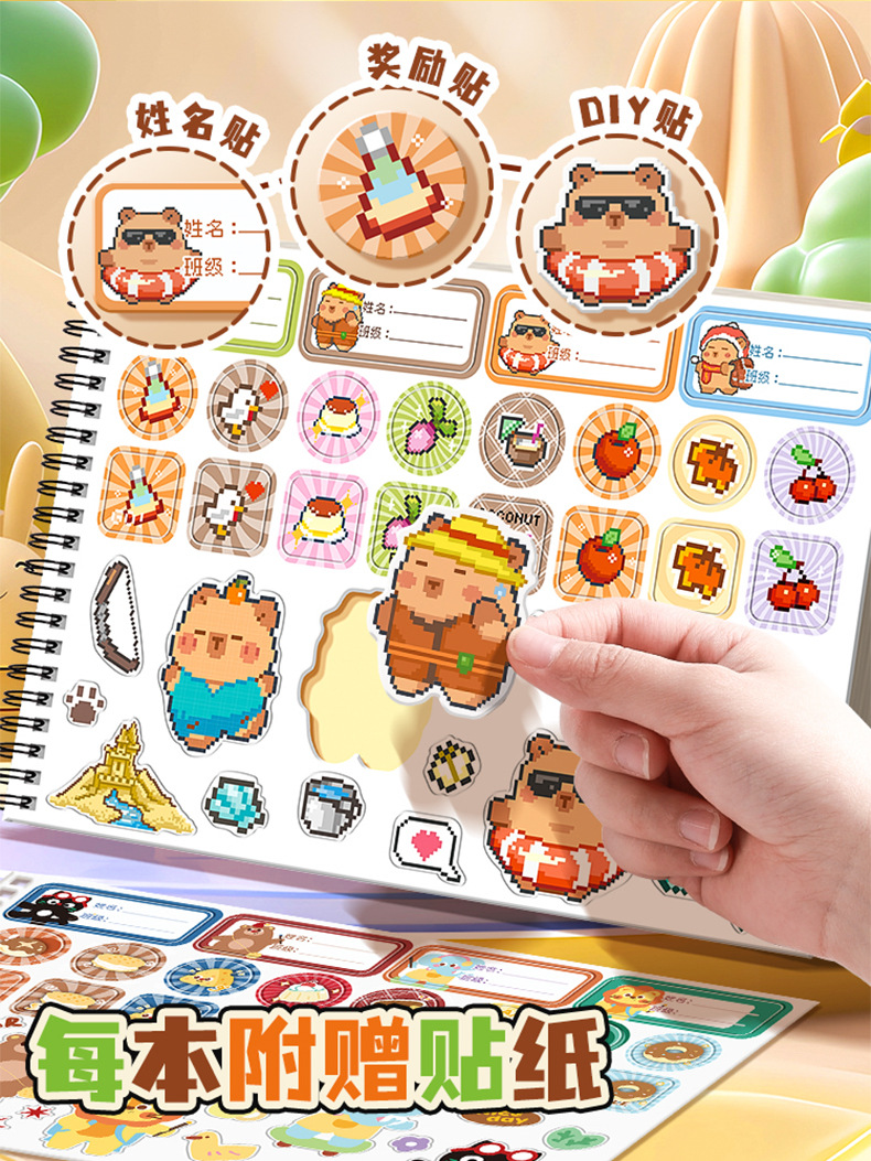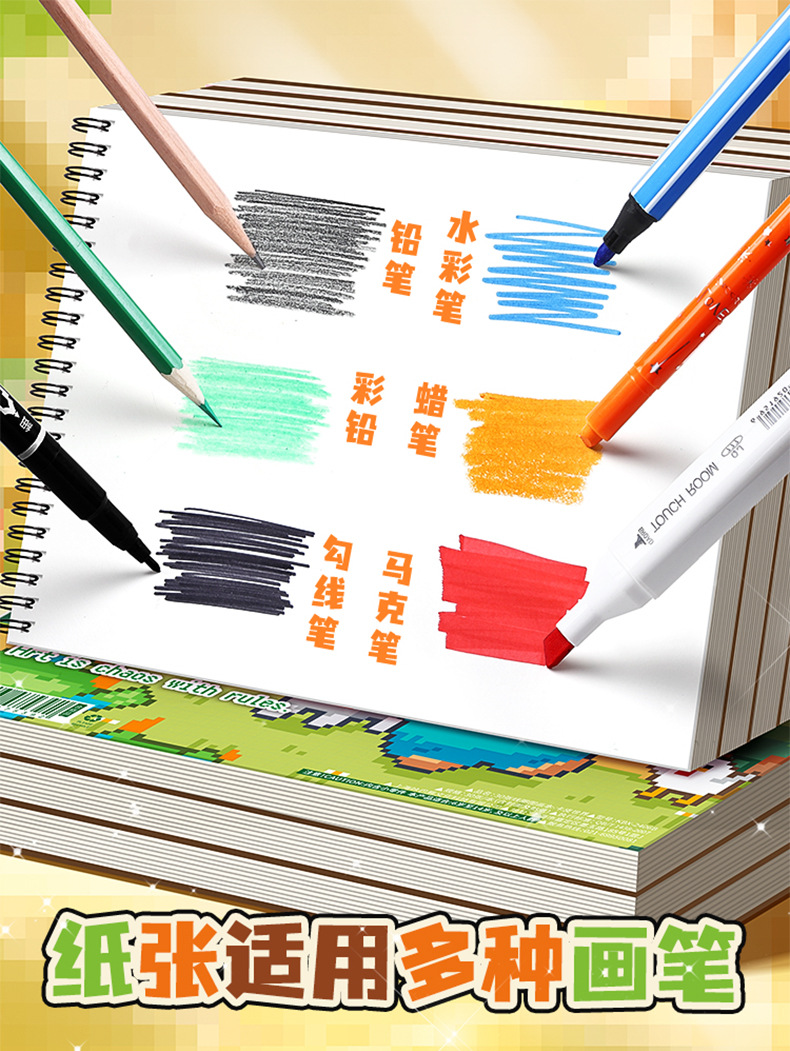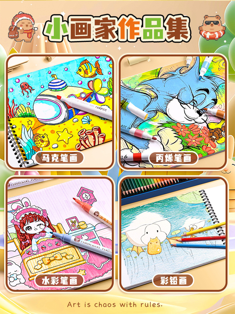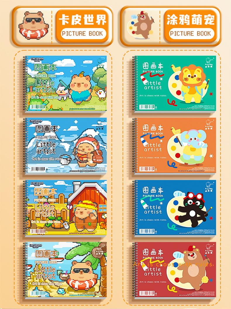 咔巴熊线圈图画本画画本小学初中生加厚素描本卡通贴纸空白涂色本