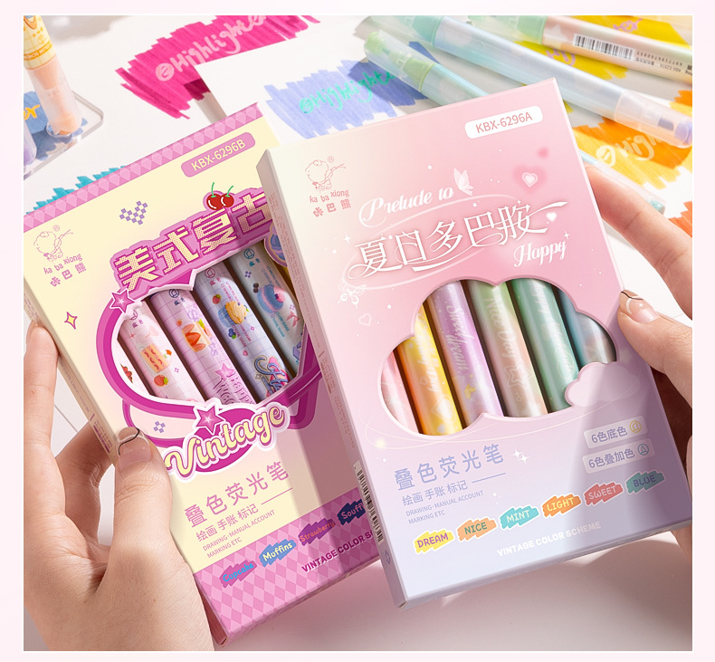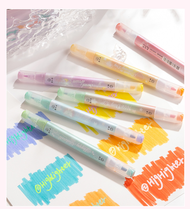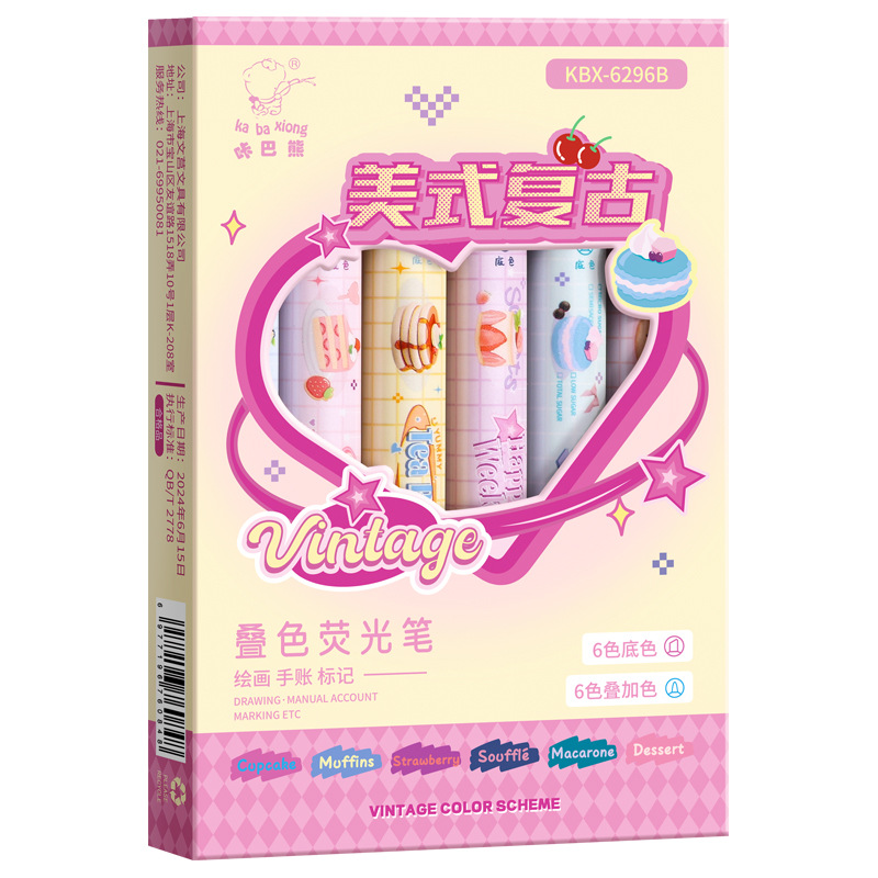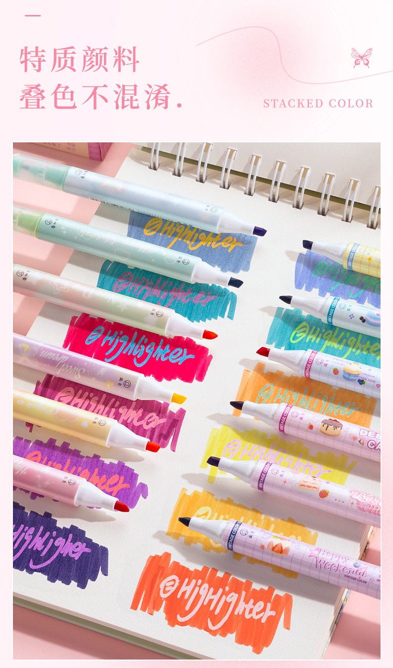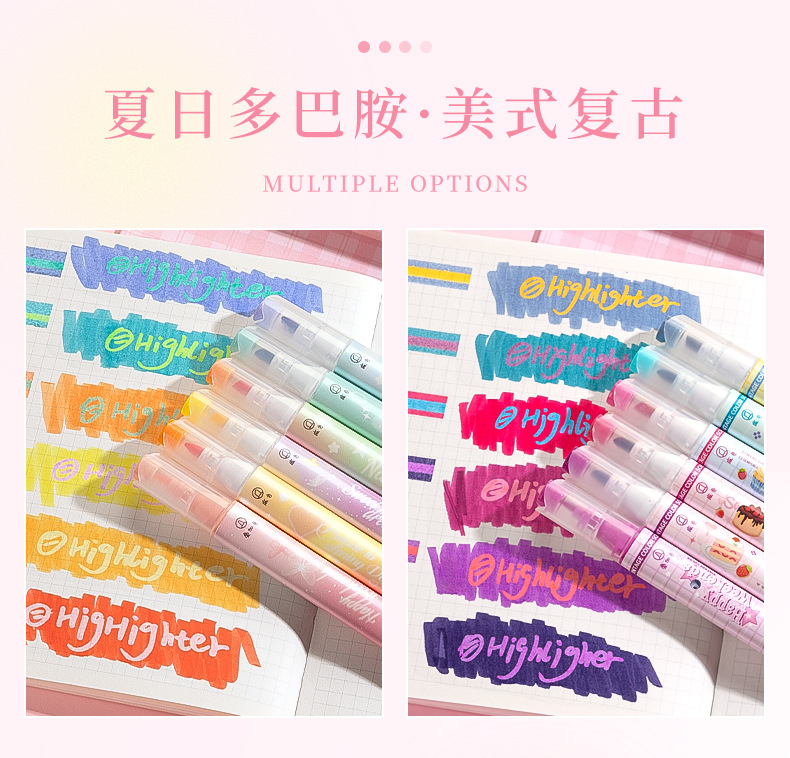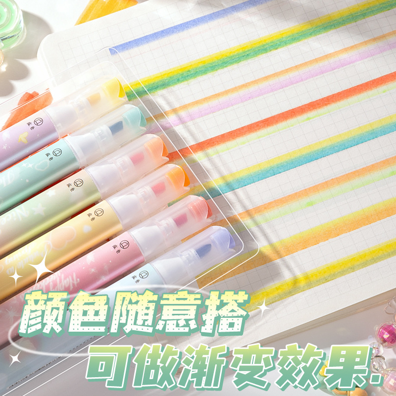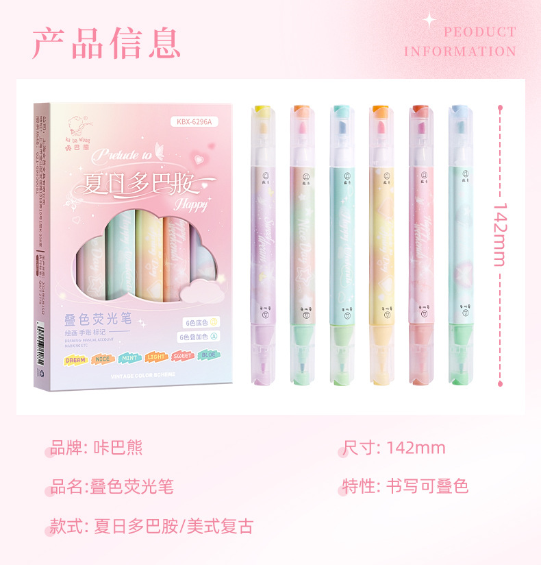 咔巴熊夏日多巴胺叠色系荧光笔学生彩色大容量重点标记读书做笔记