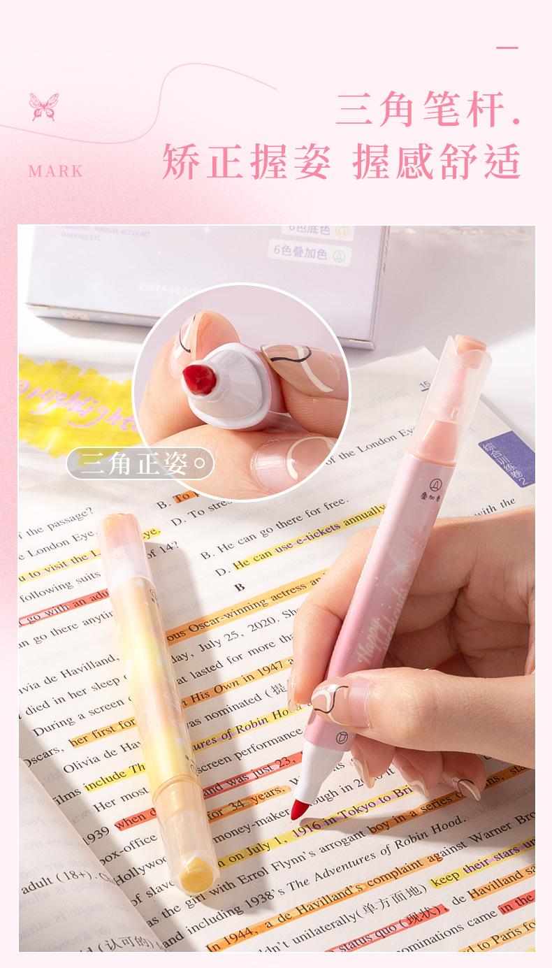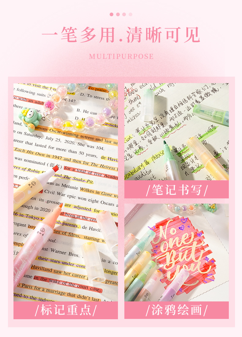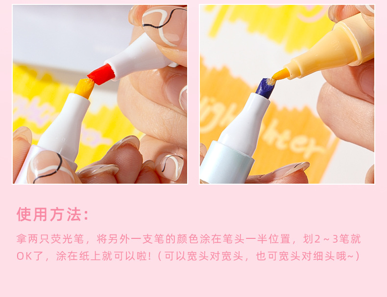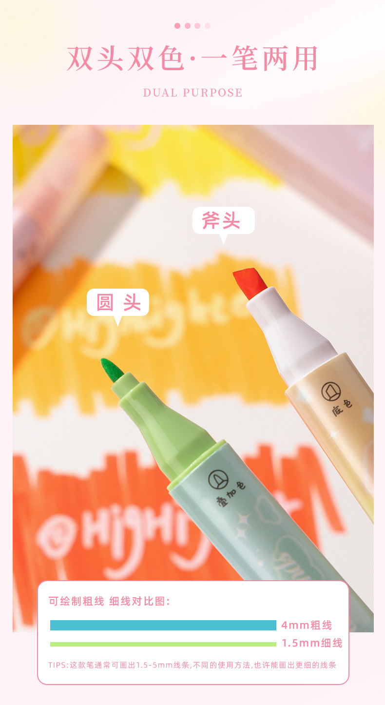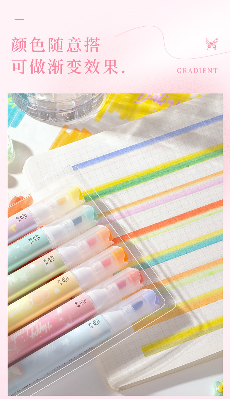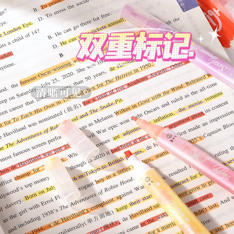 咔巴熊夏日多巴胺叠色系荧光笔学生彩色大容量重点标记读书做笔记