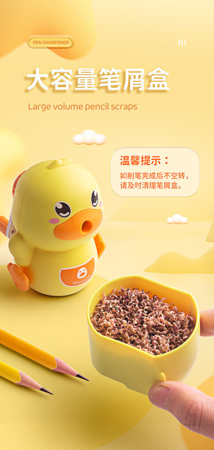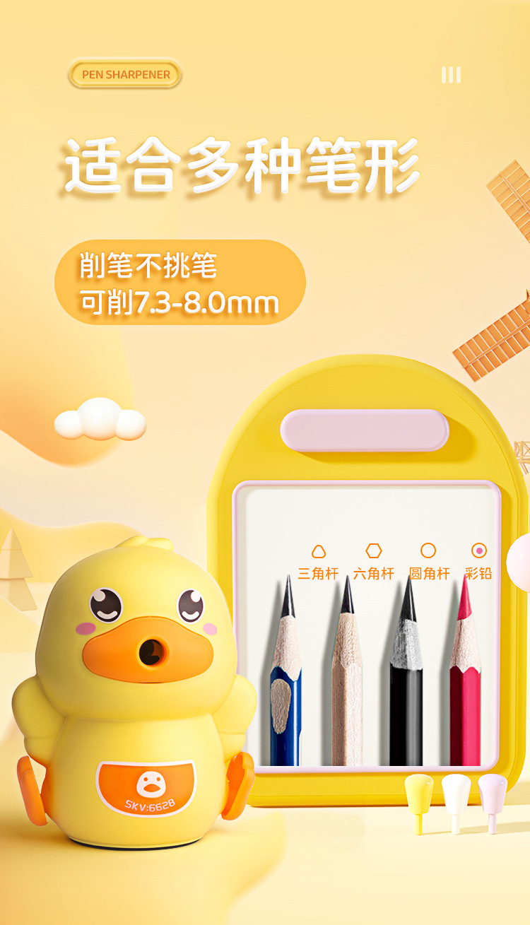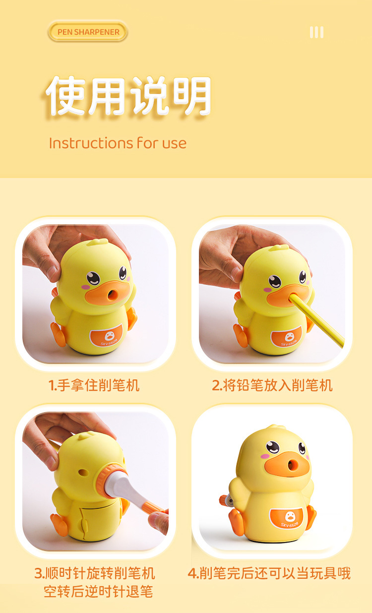 小黄鸭削笔刀削笔器自动转笔刀儿童小学生卷笔刀手动手摇削笔机