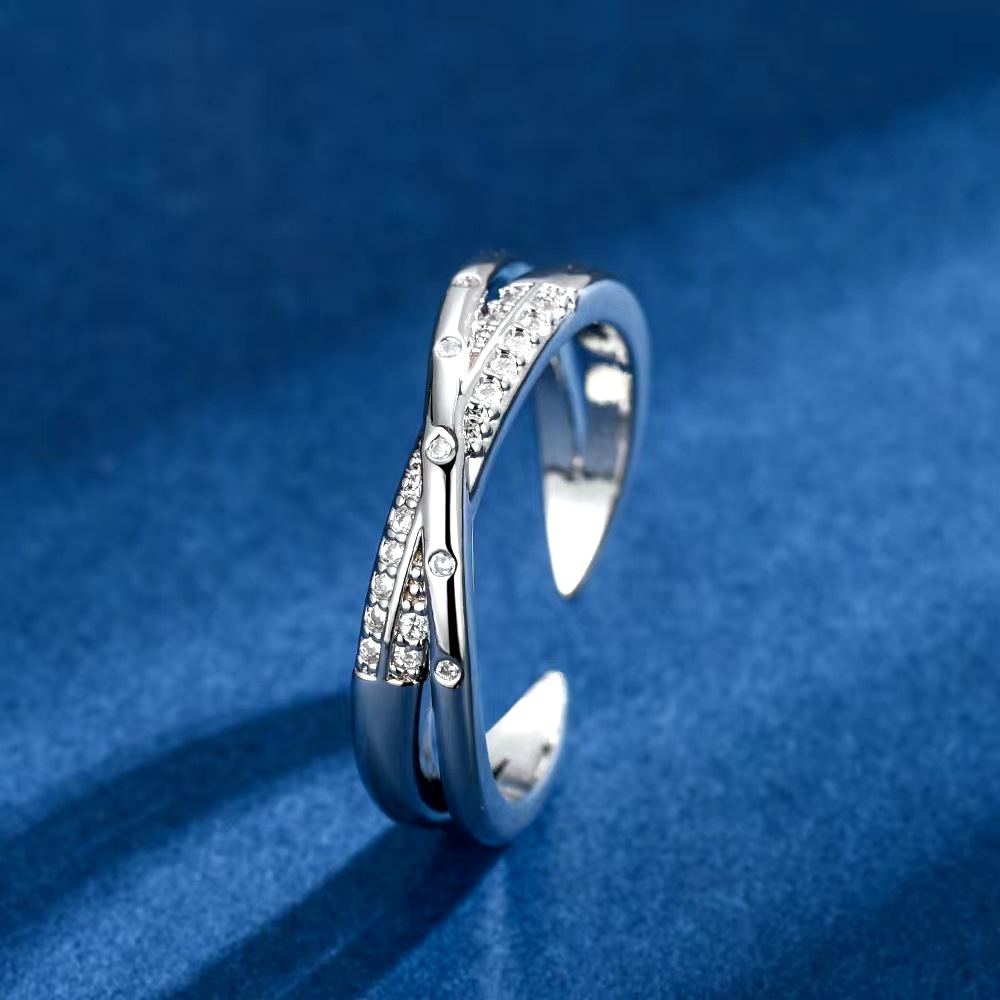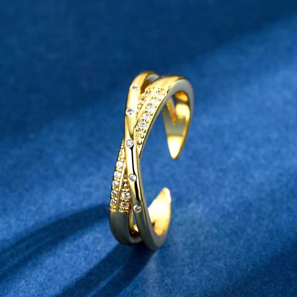 跨境简约玫瑰金戒指女交叉镶嵌锆石小众设计感ins冷淡风食指开口