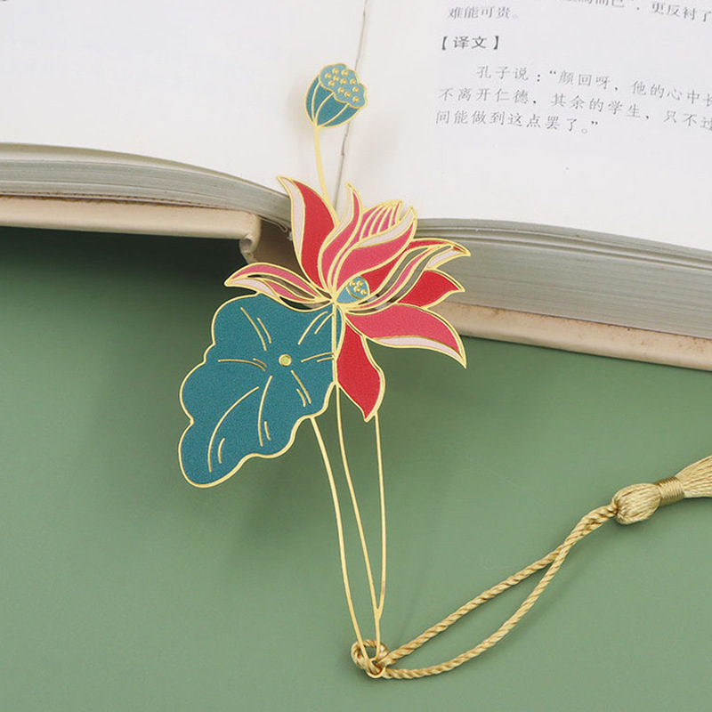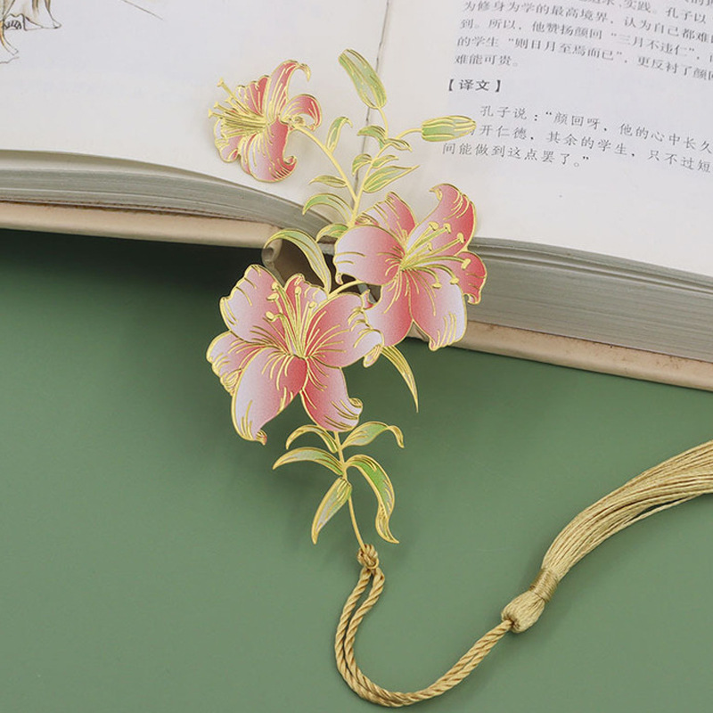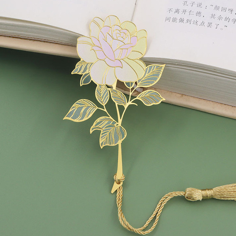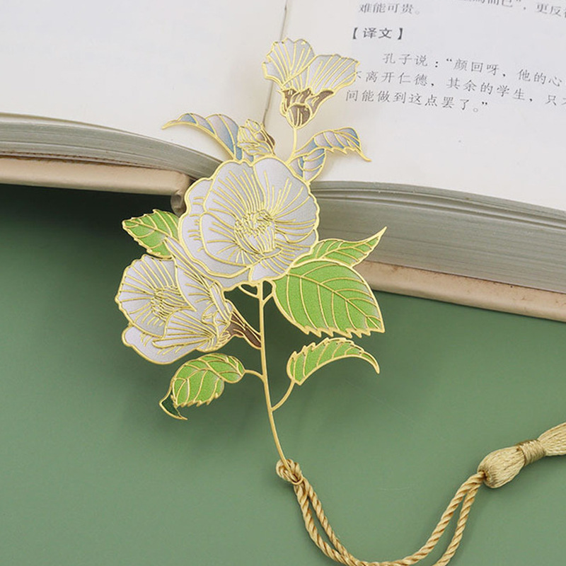 中式山茶荷花莲花玫瑰花金属书签创意中国风文艺精致流苏书签礼品