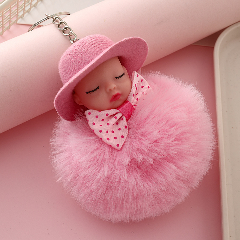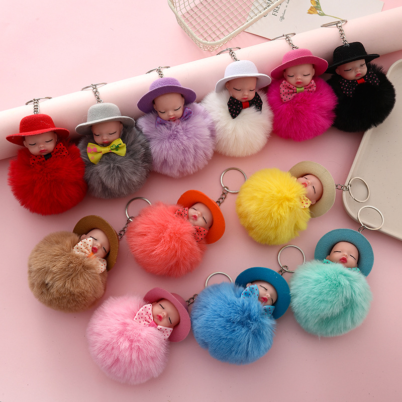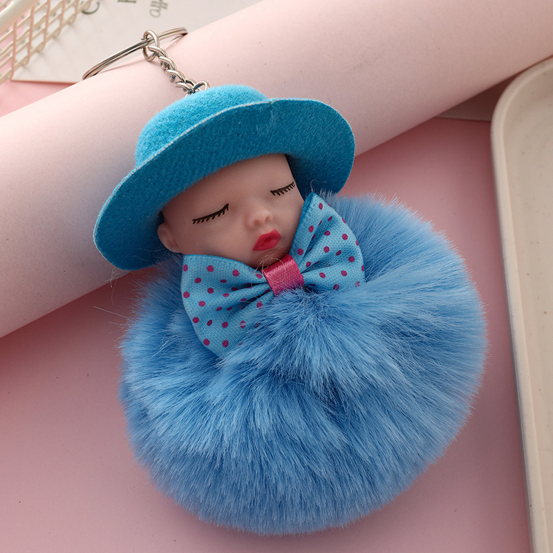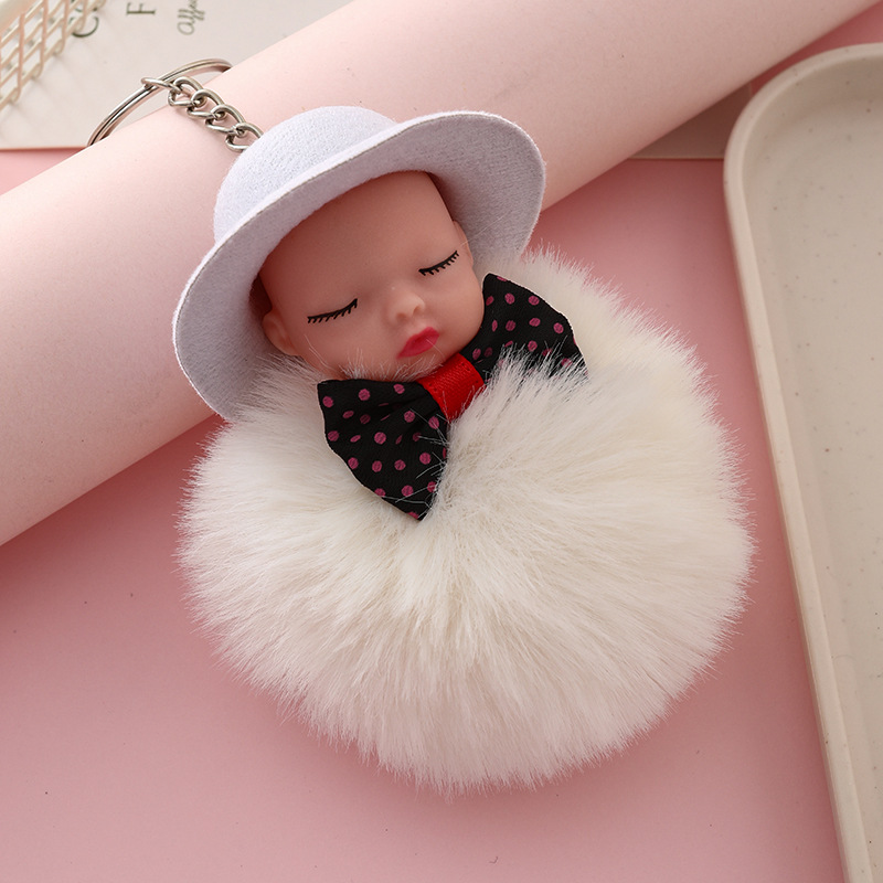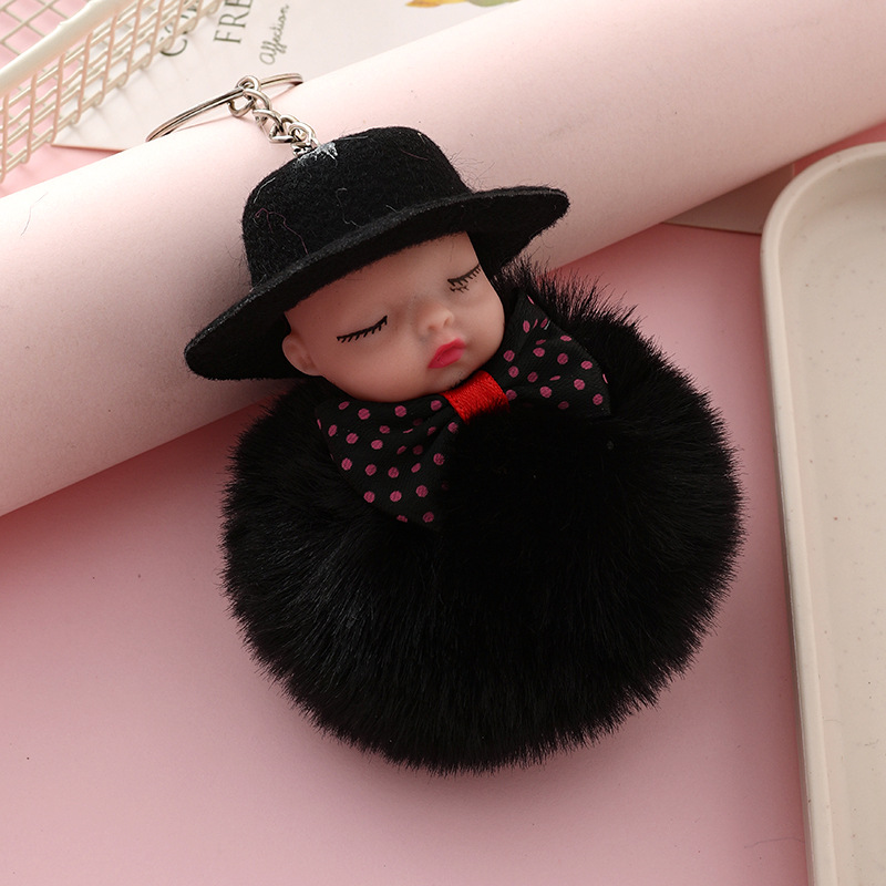 新跨境礼帽睡眠娃娃钥匙扣挂件可爱领结仿兔毛球公仔葆贝迪小礼品