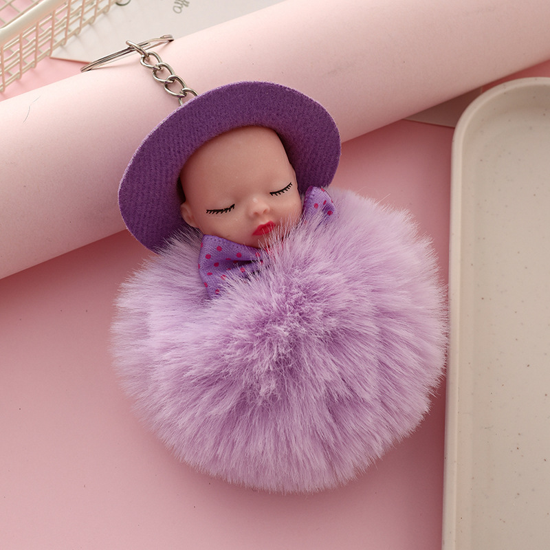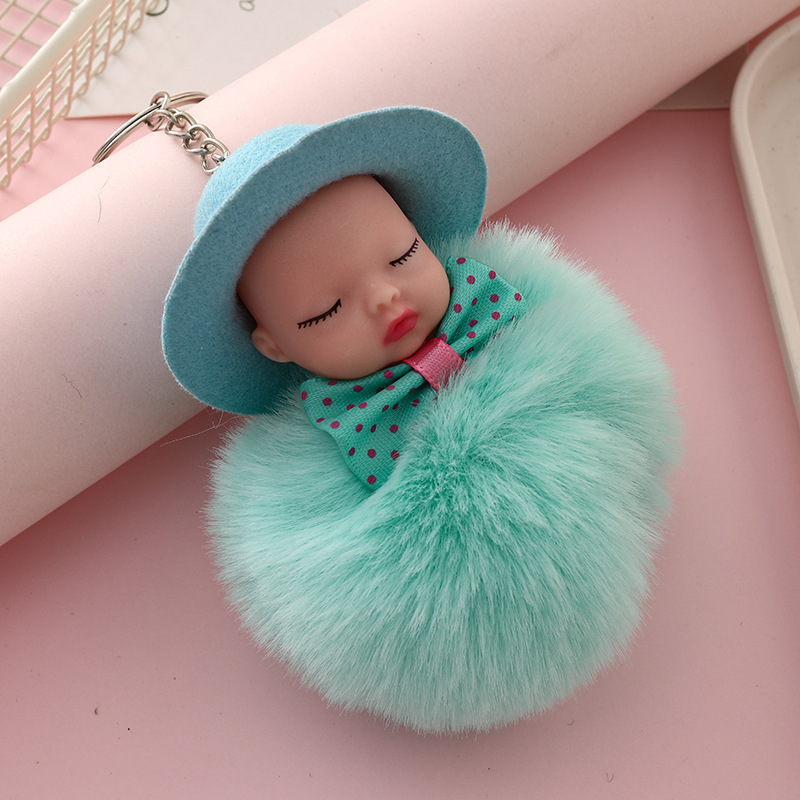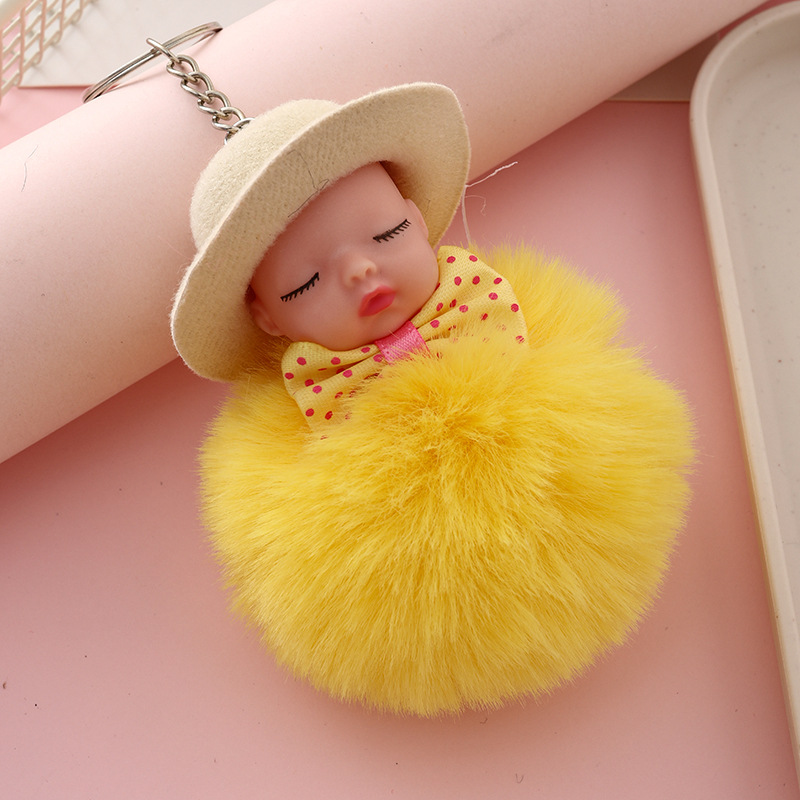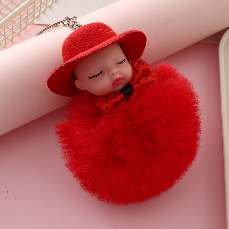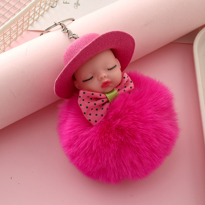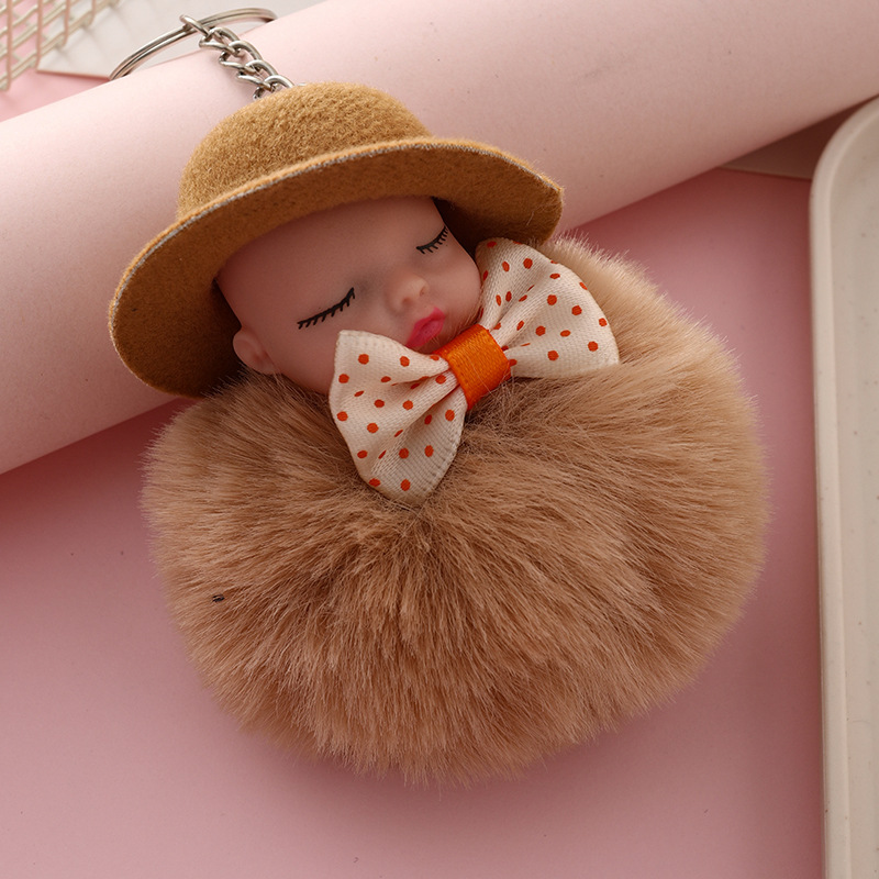 新跨境礼帽睡眠娃娃钥匙扣挂件可爱领结仿兔毛球公仔葆贝迪小礼品