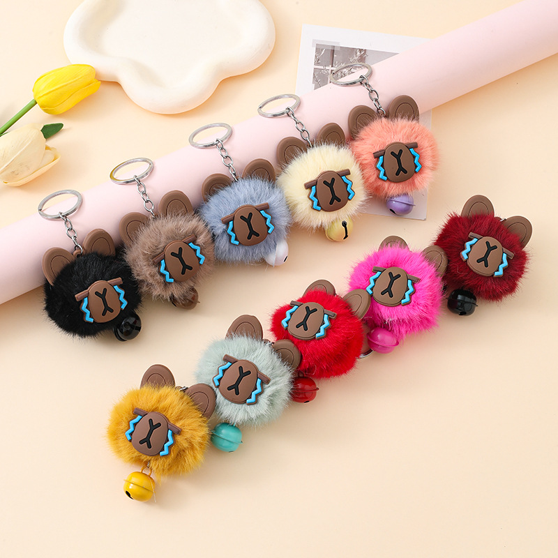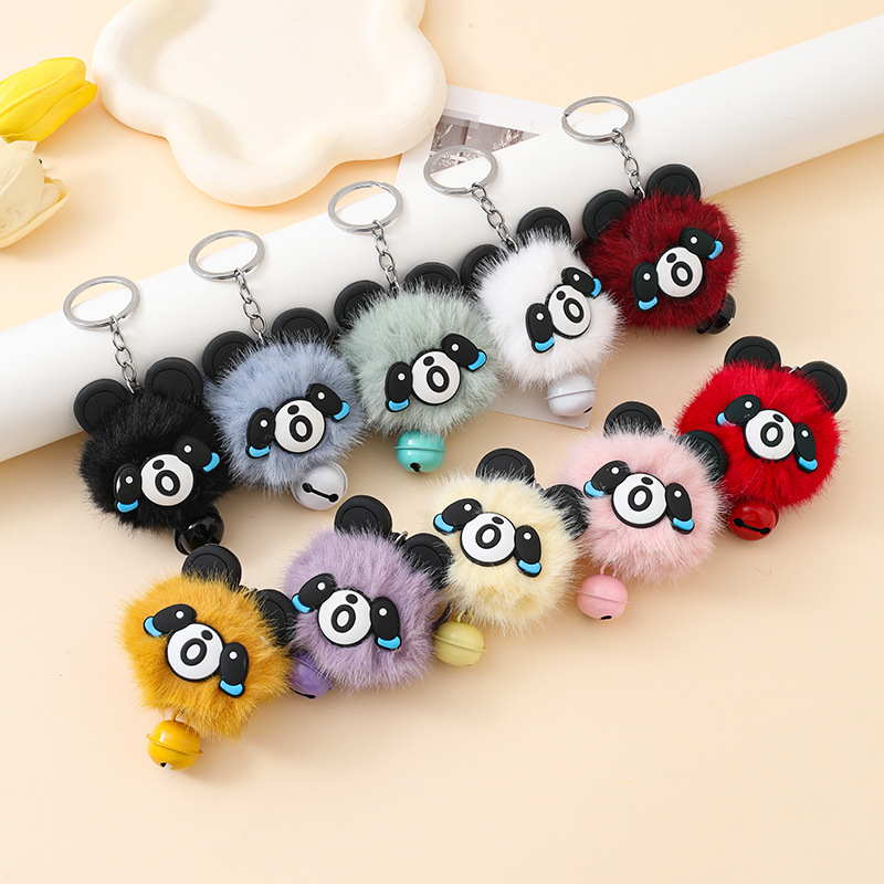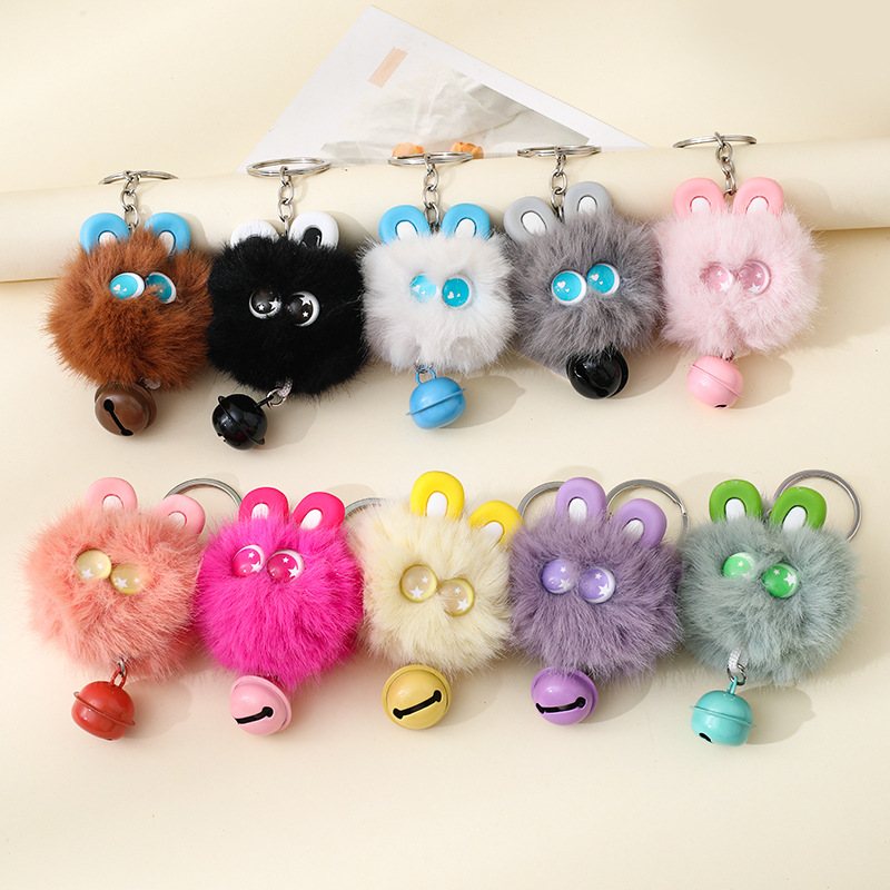 创意铃铛可爱招财猫钥匙扣毛球包挂件仿水貂毛球车钥匙圈礼品批发