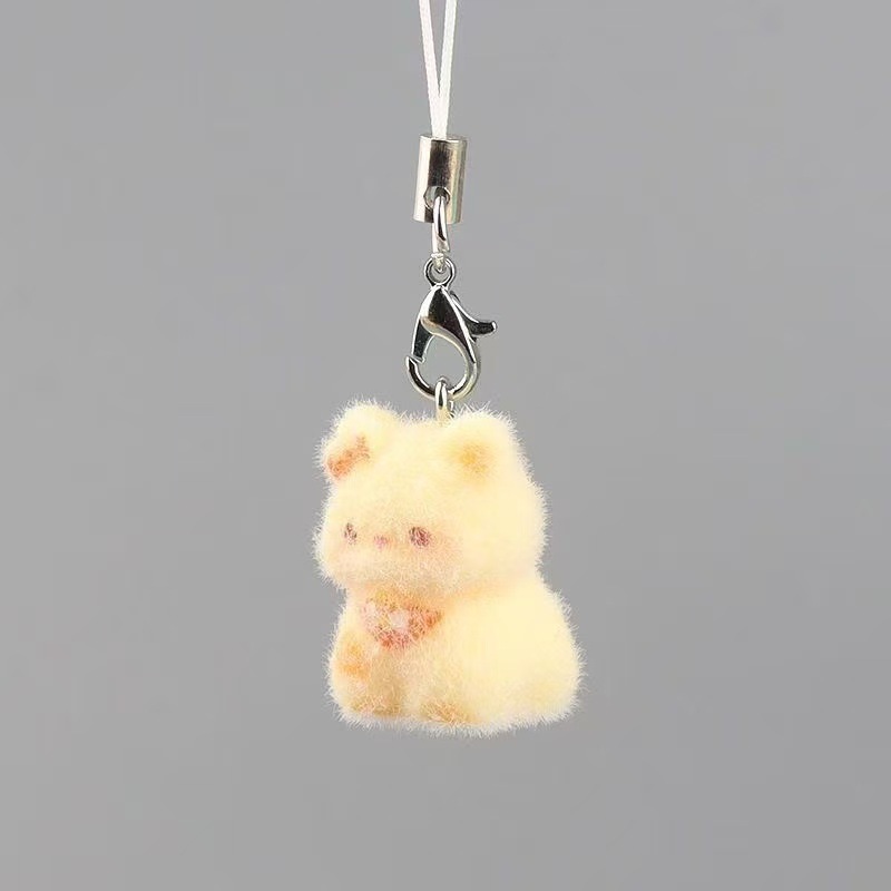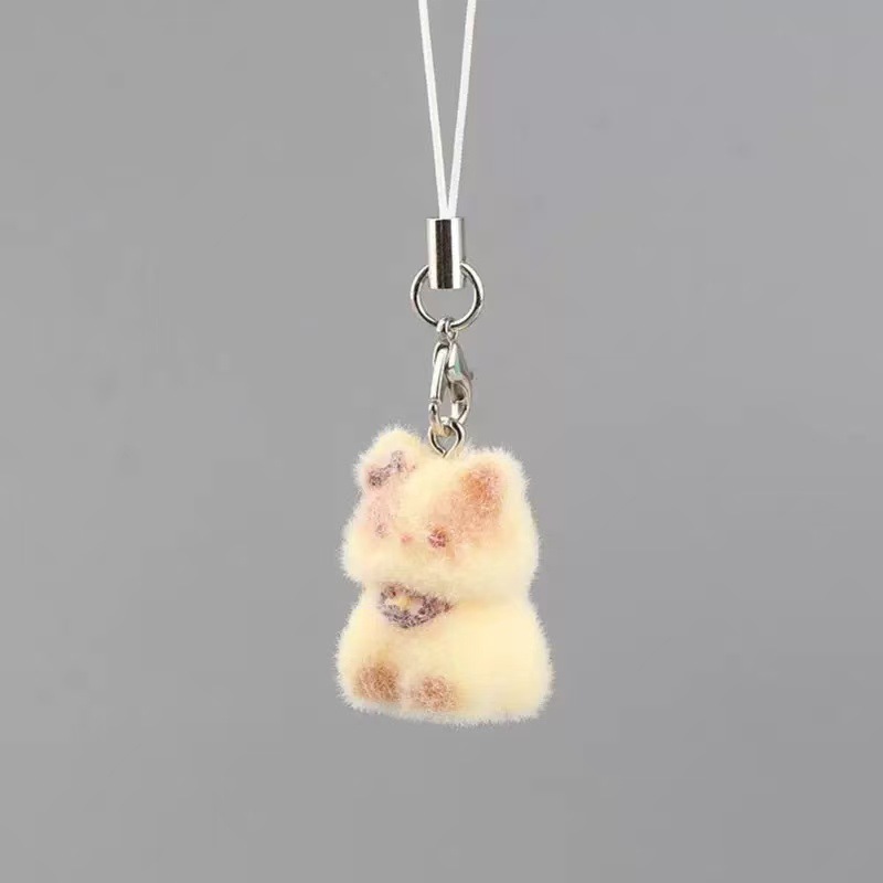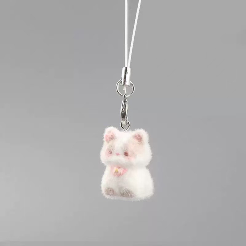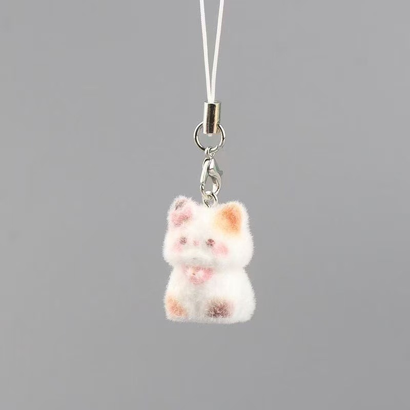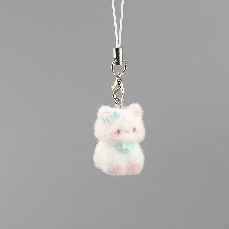 新款卡通可爱植绒立体树脂猫咪钥匙链包包挂件手机挂绳礼物小饰品