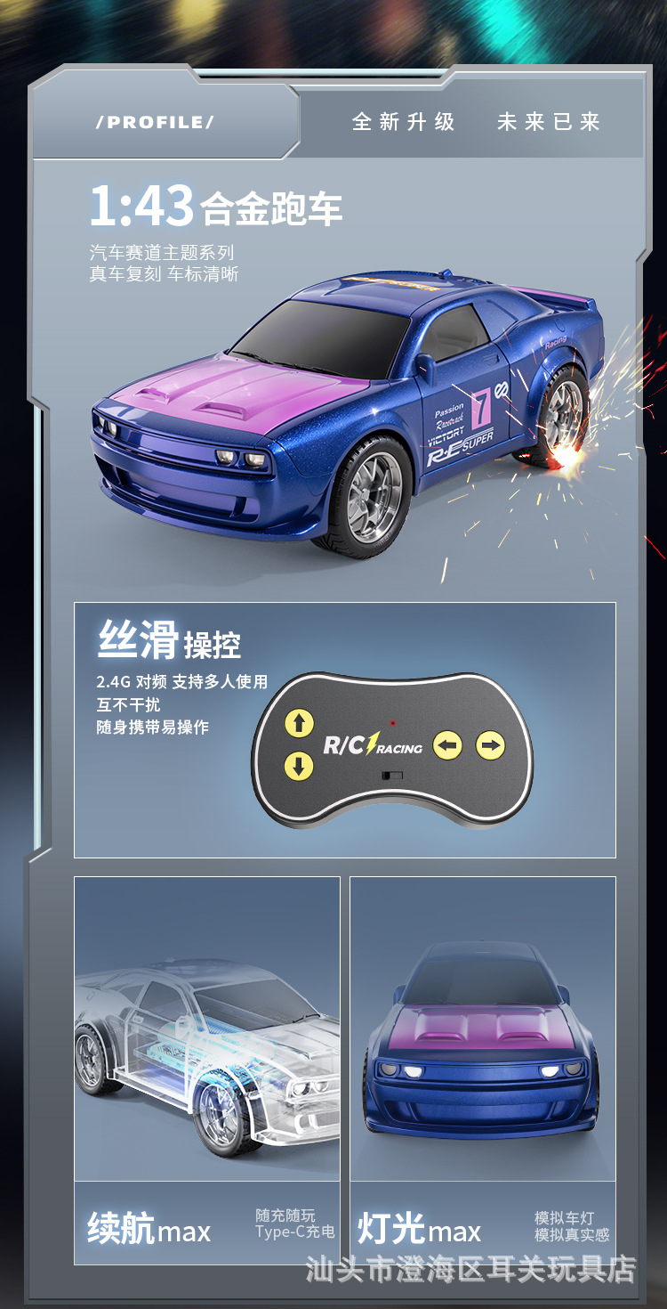 昊天新款2027遥控车迷你桌面1:43合金潮玩可手机操控男孩玩具批发