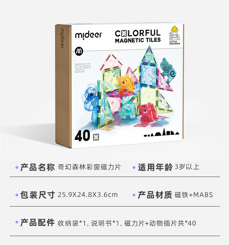 mideer弥鹿磁力片儿童益智玩具生日玩具益智拼装彩窗积木礼物100p