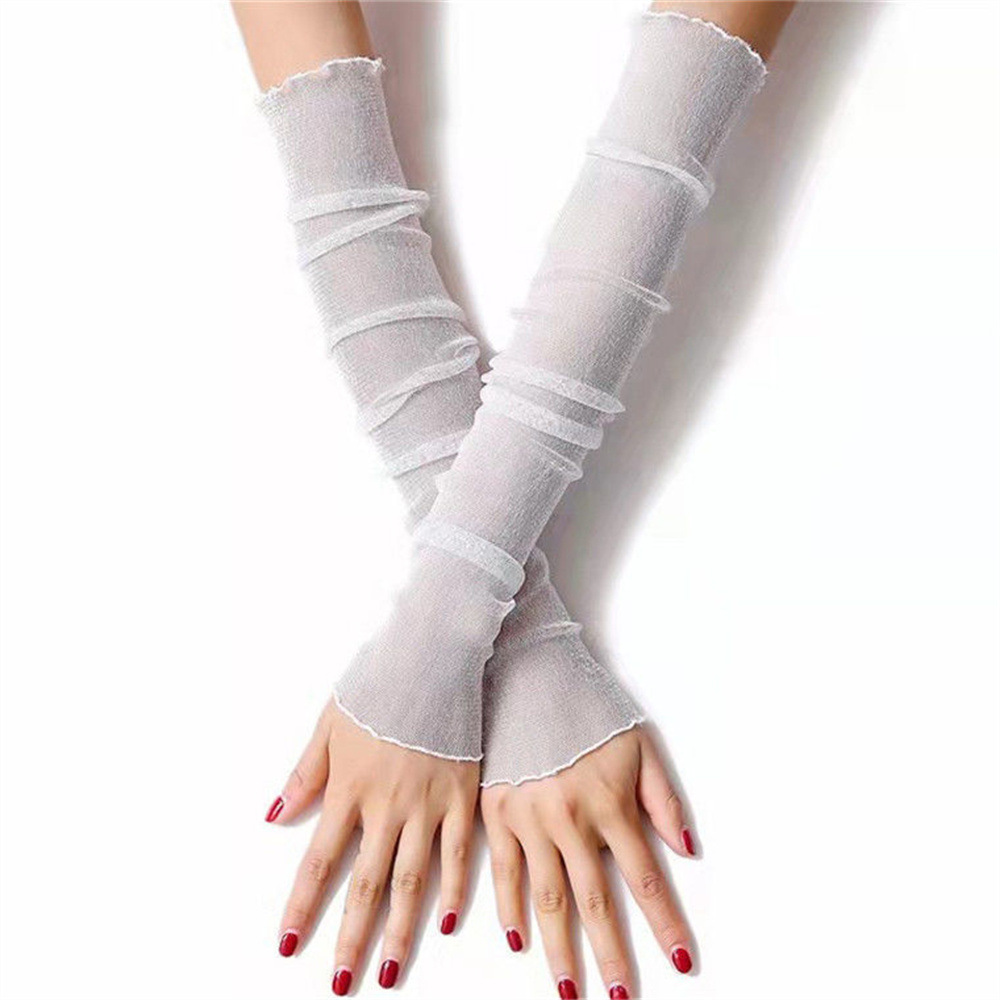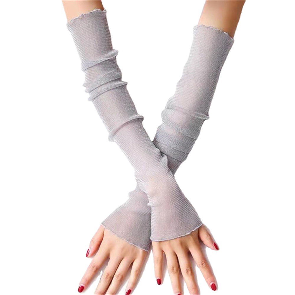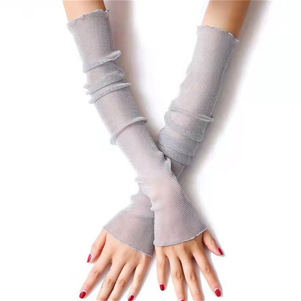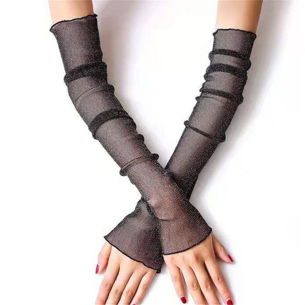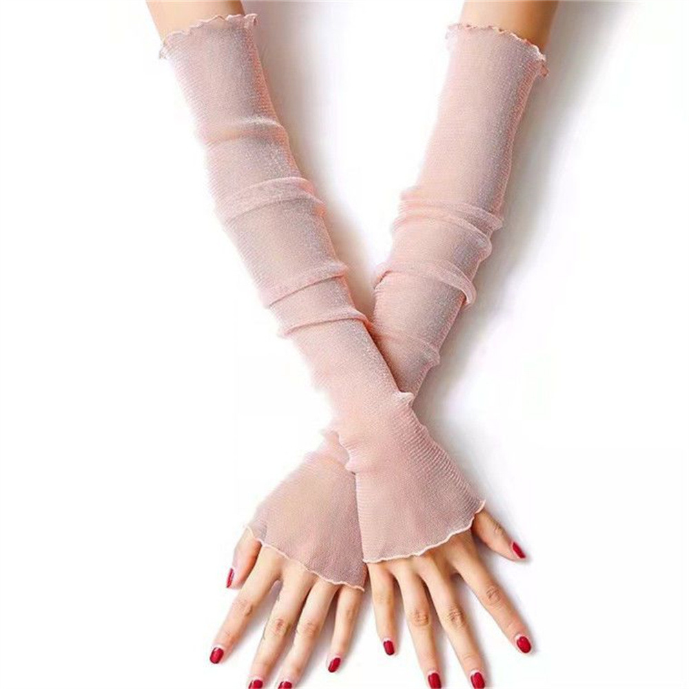 冰袖女夏季银丝手臂护袖户外开车骑行网纱蕾丝防晒防紫外线袖套