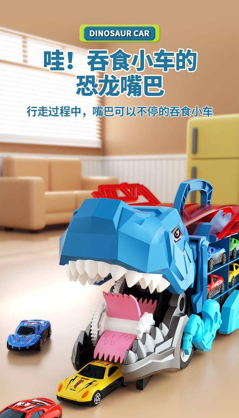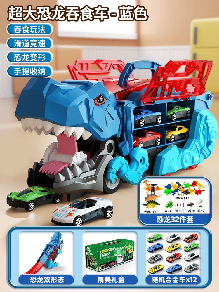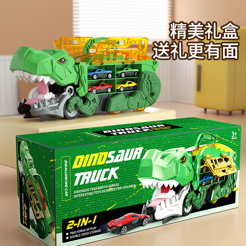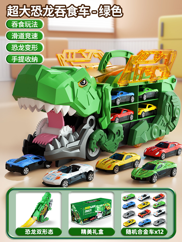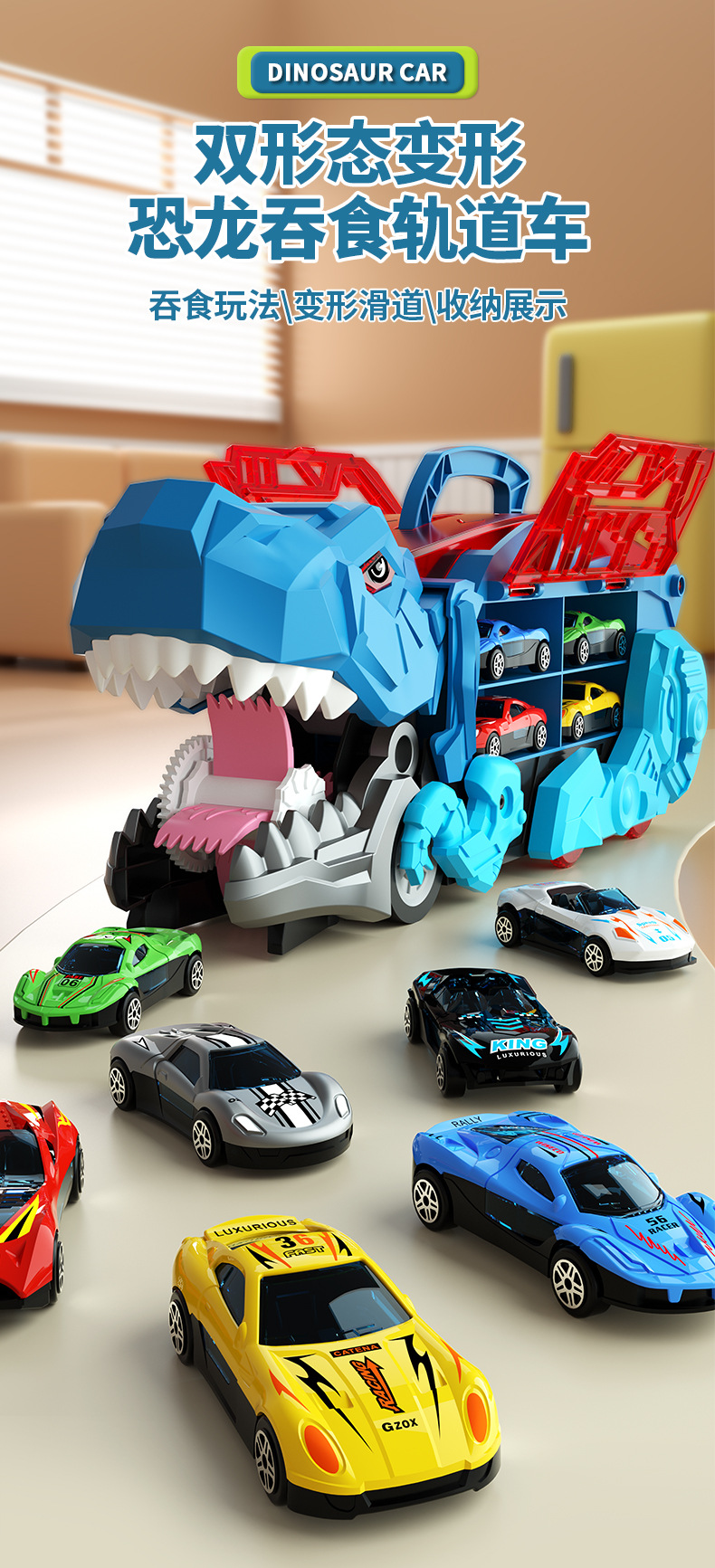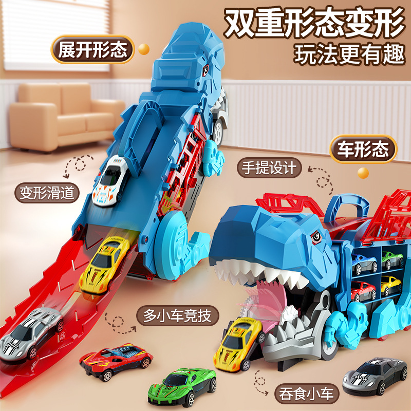 儿童吞食恐龙玩具车霸王龙变形轨道男孩益智收纳滑行车合金小汽车