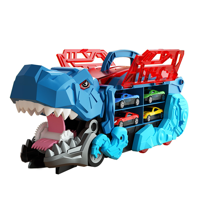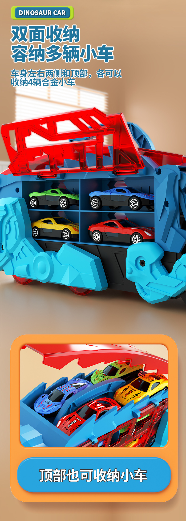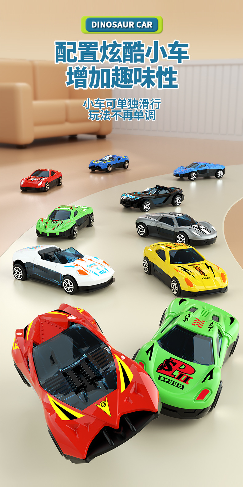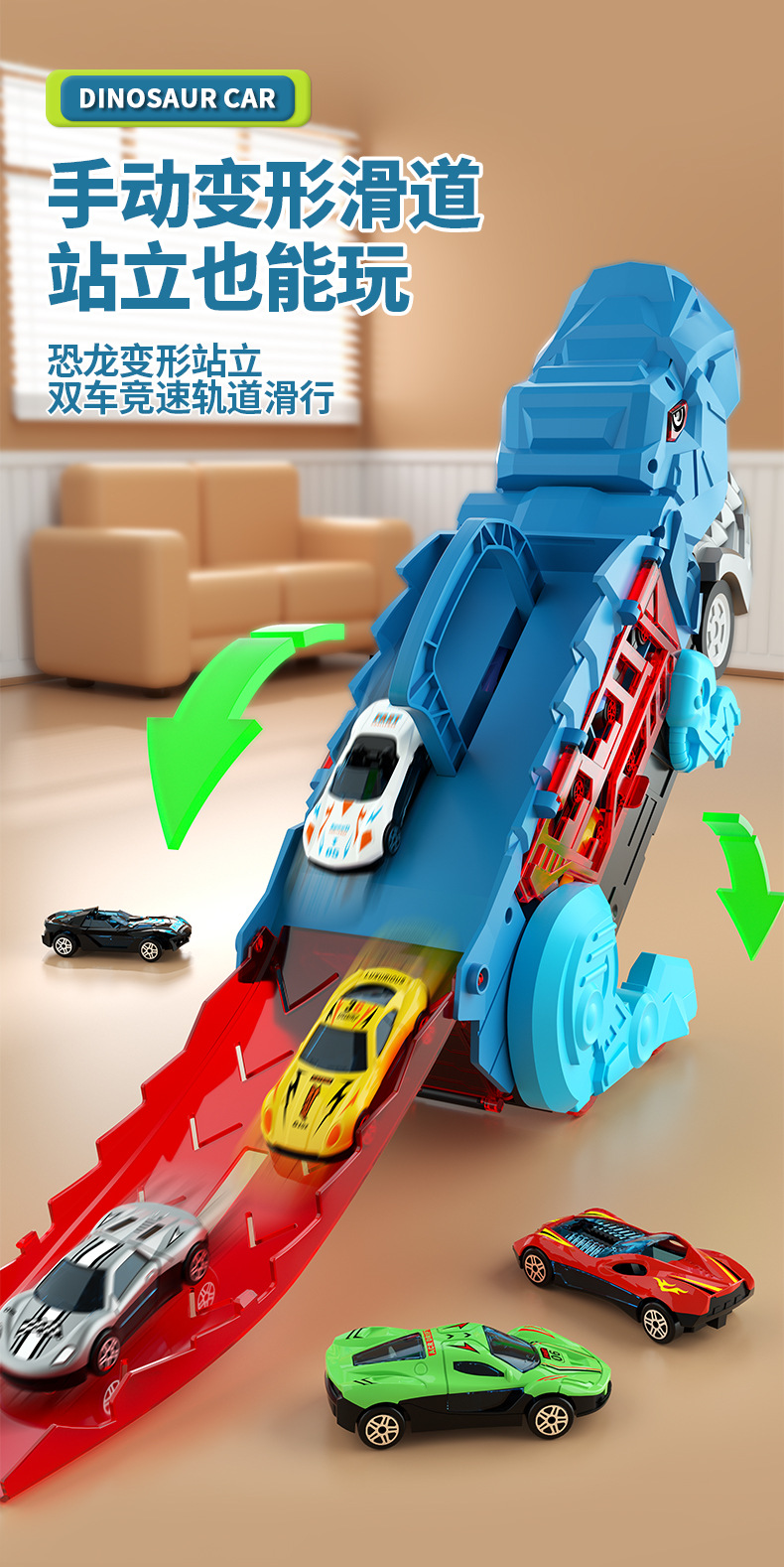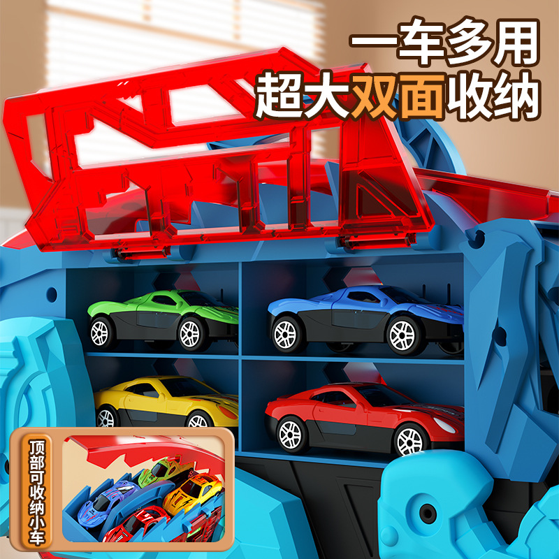 儿童吞食恐龙玩具车霸王龙变形轨道男孩益智收纳滑行车合金小汽车