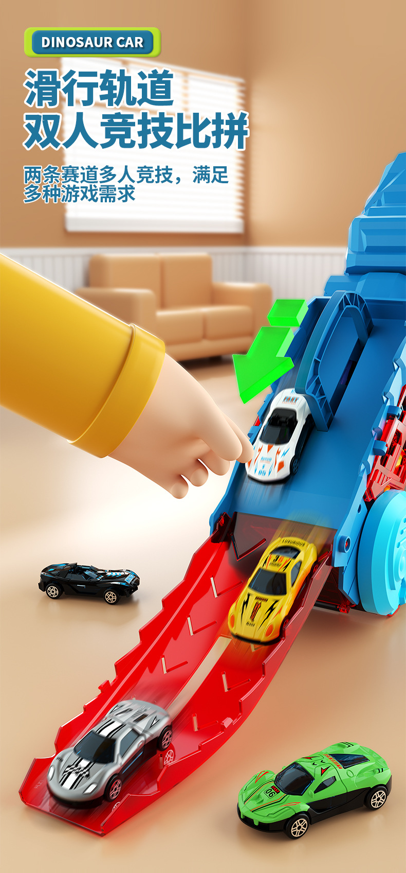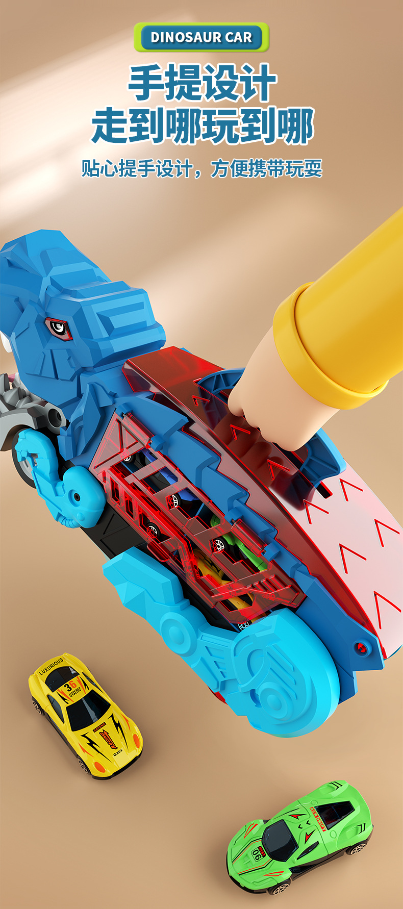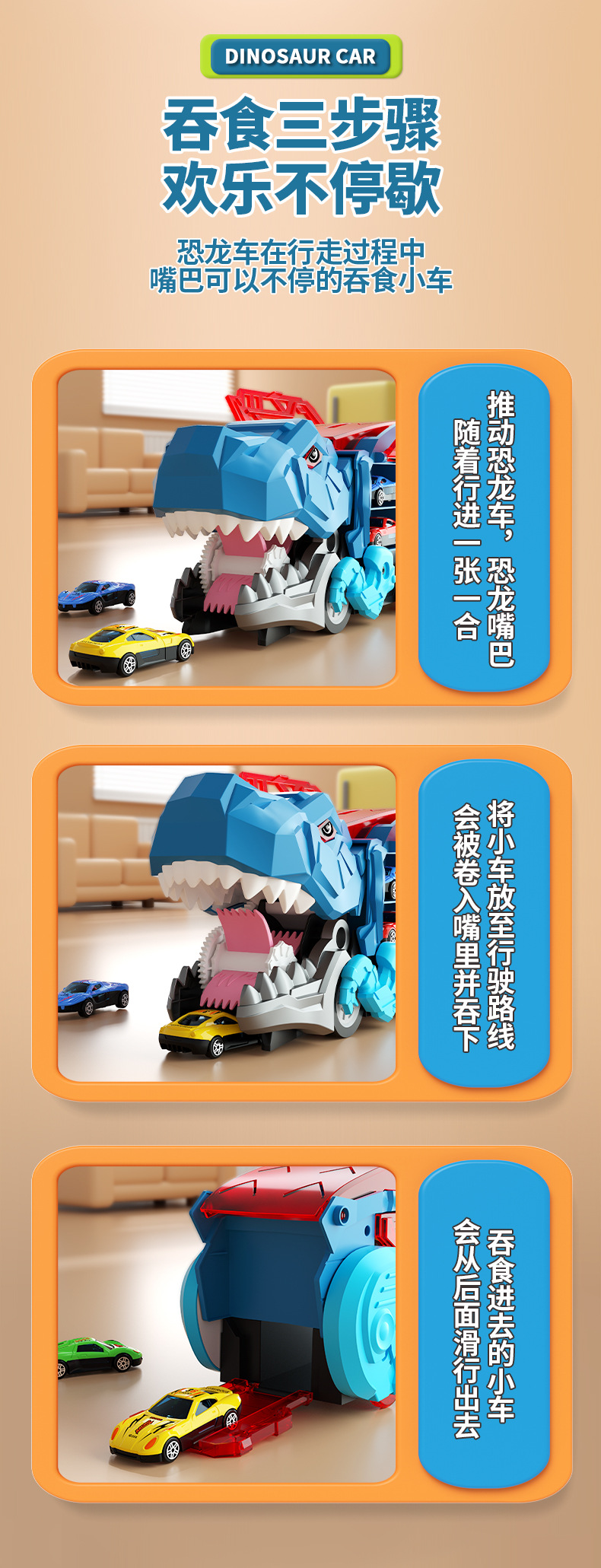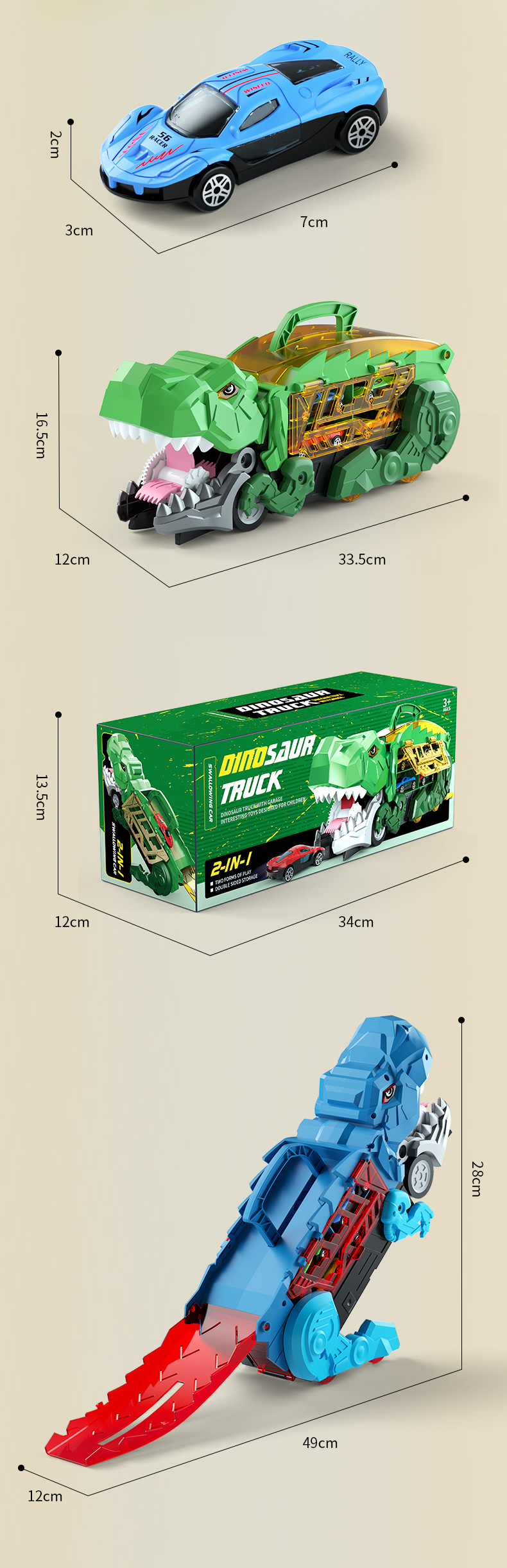 儿童吞食恐龙玩具车霸王龙变形轨道男孩益智收纳滑行车合金小汽车