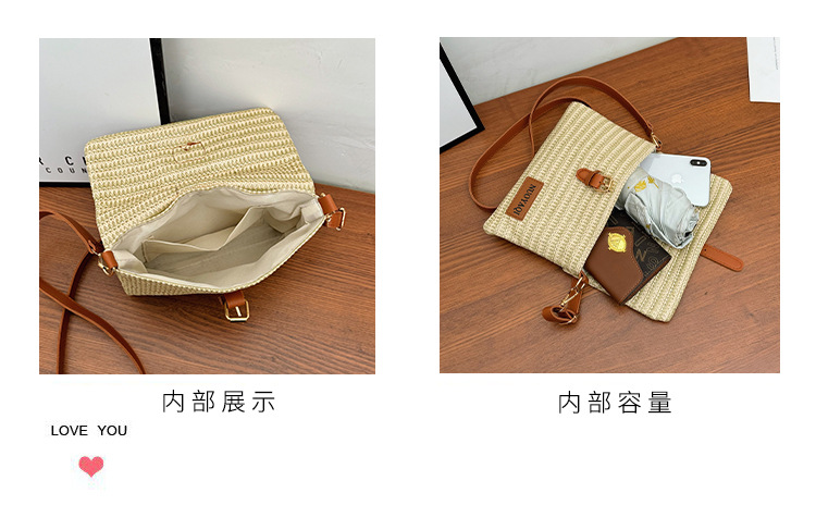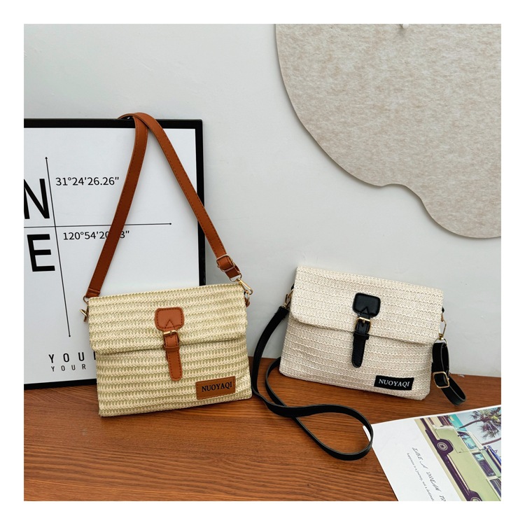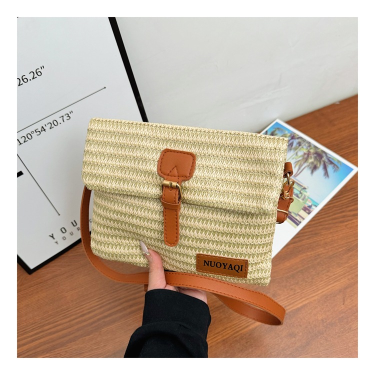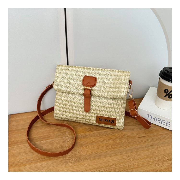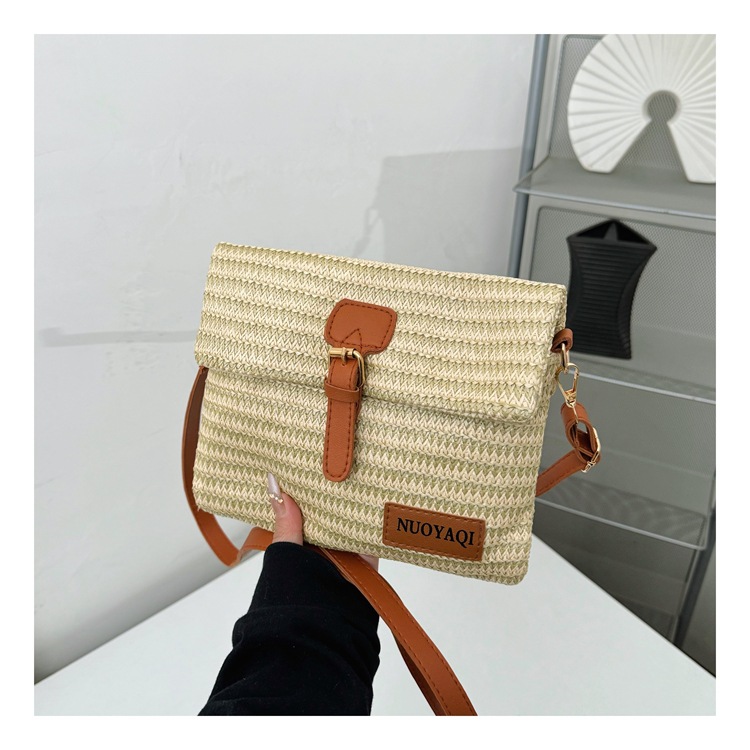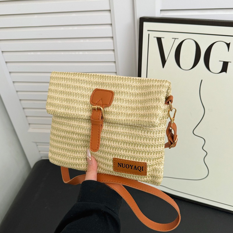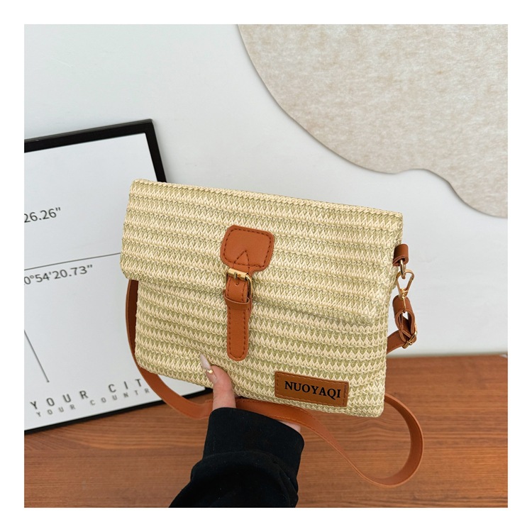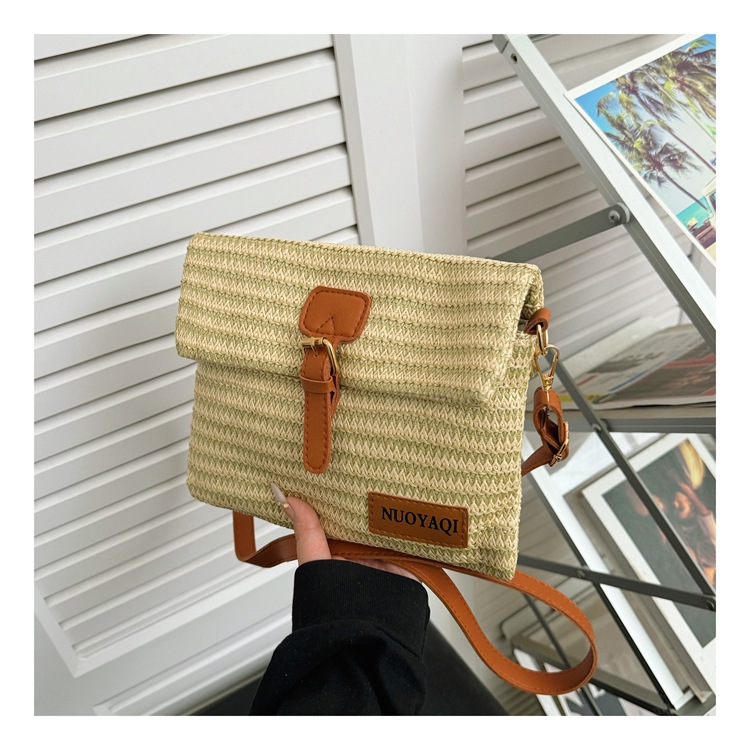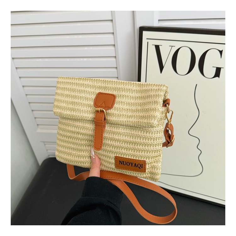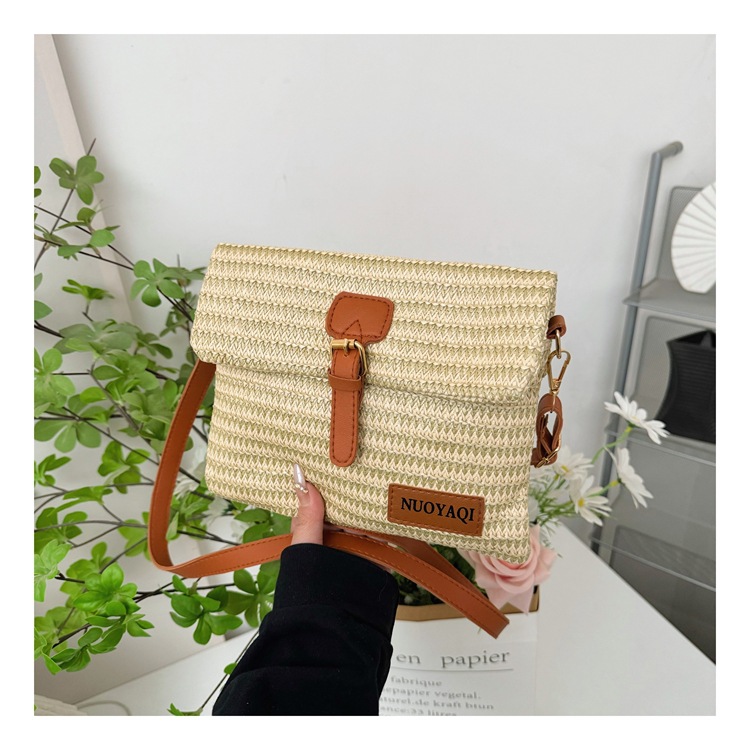 跨境爆款2026新款仿古小邮差包旅游斜挎草编包编织女包夏季沙滩包