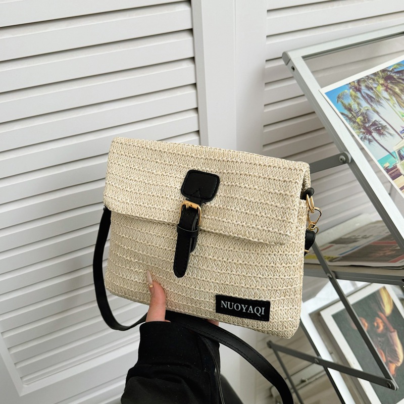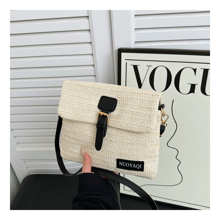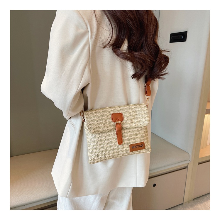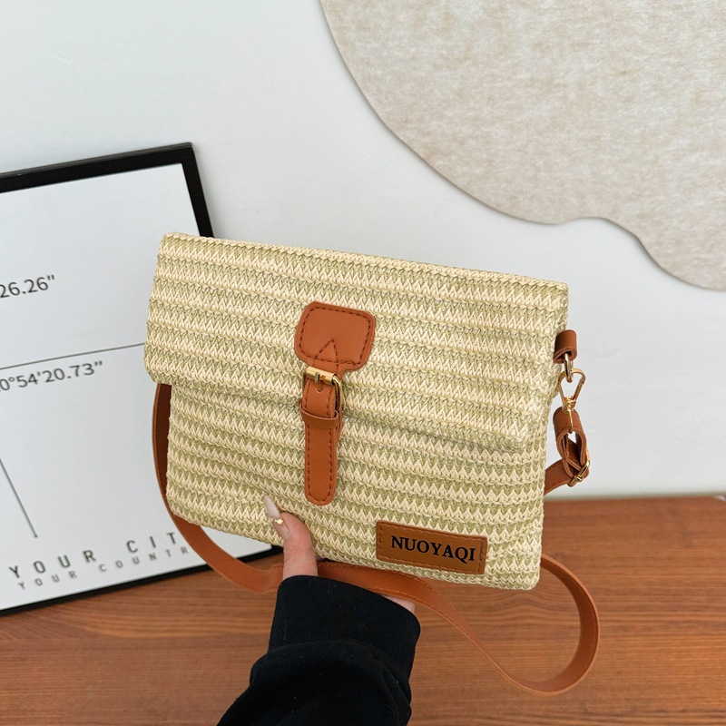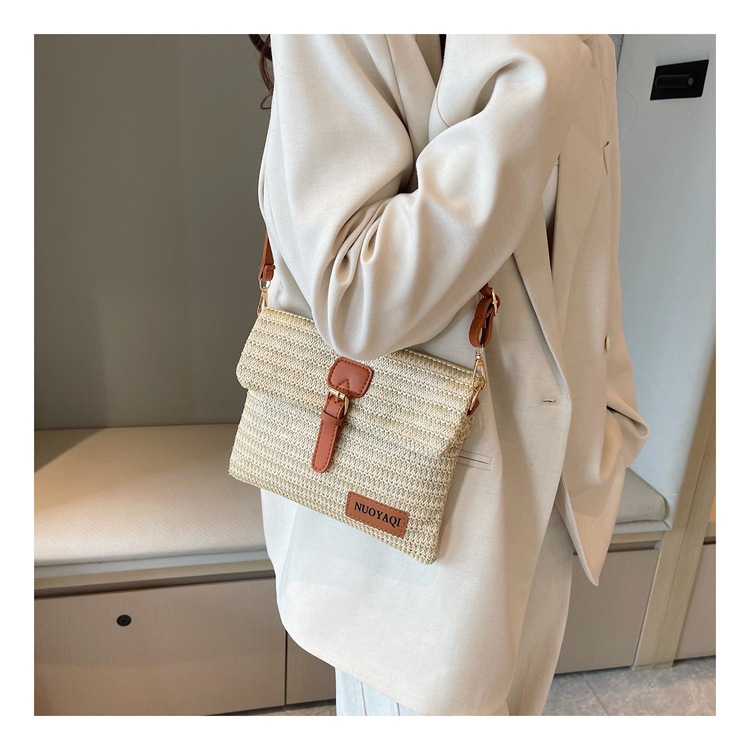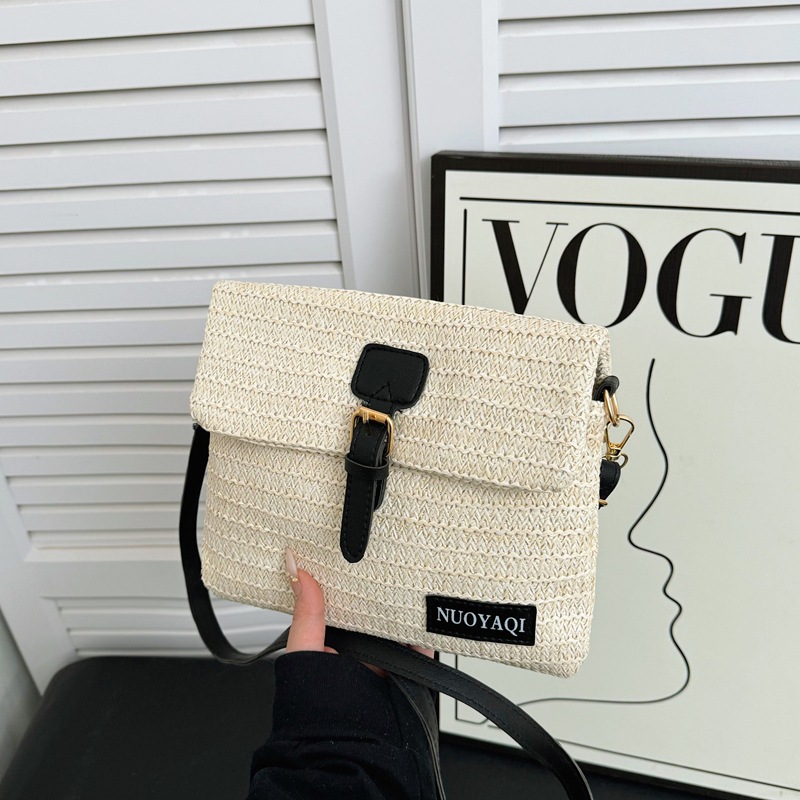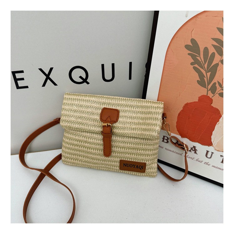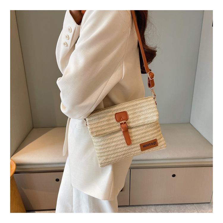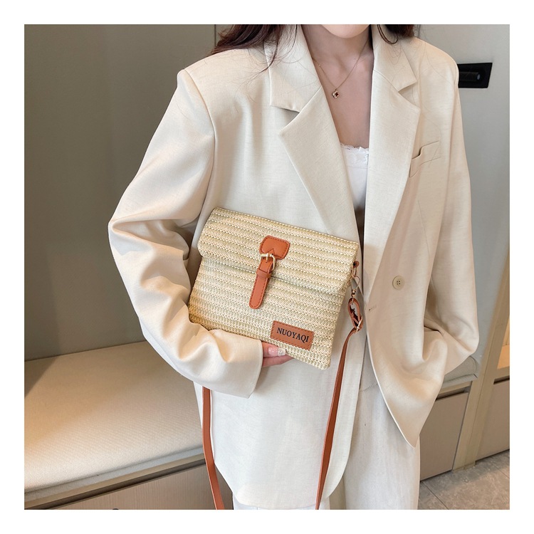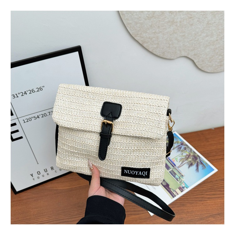 跨境爆款2026新款仿古小邮差包旅游斜挎草编包编织女包夏季沙滩包