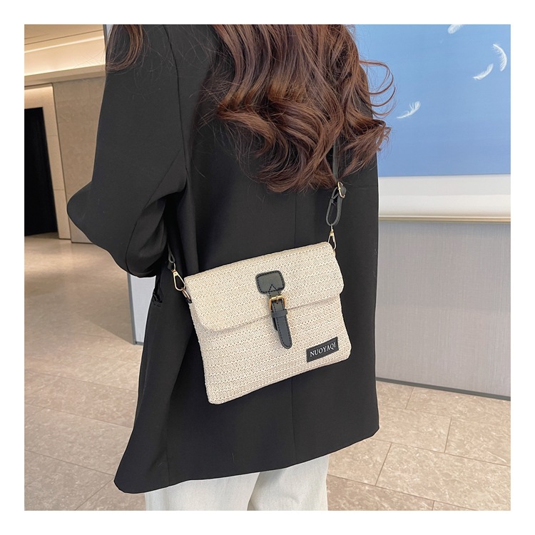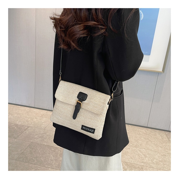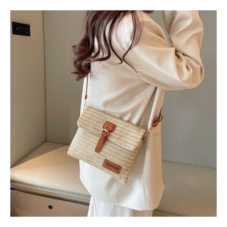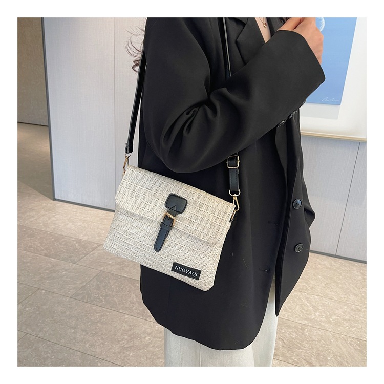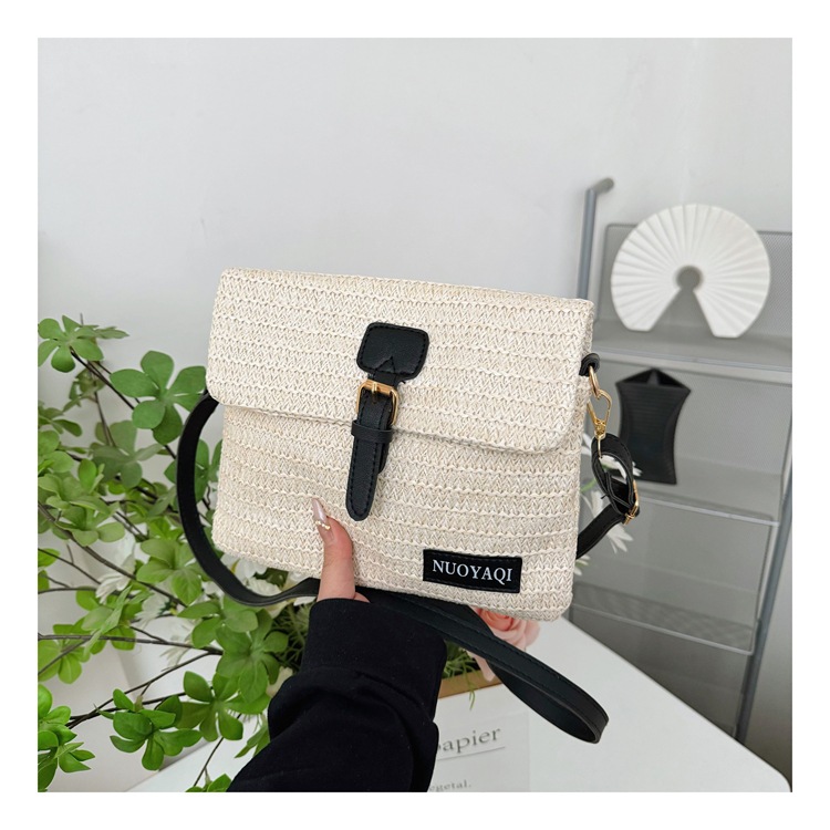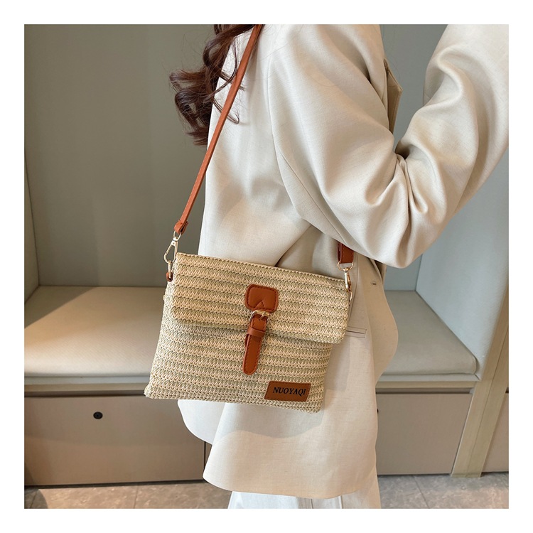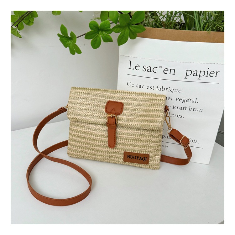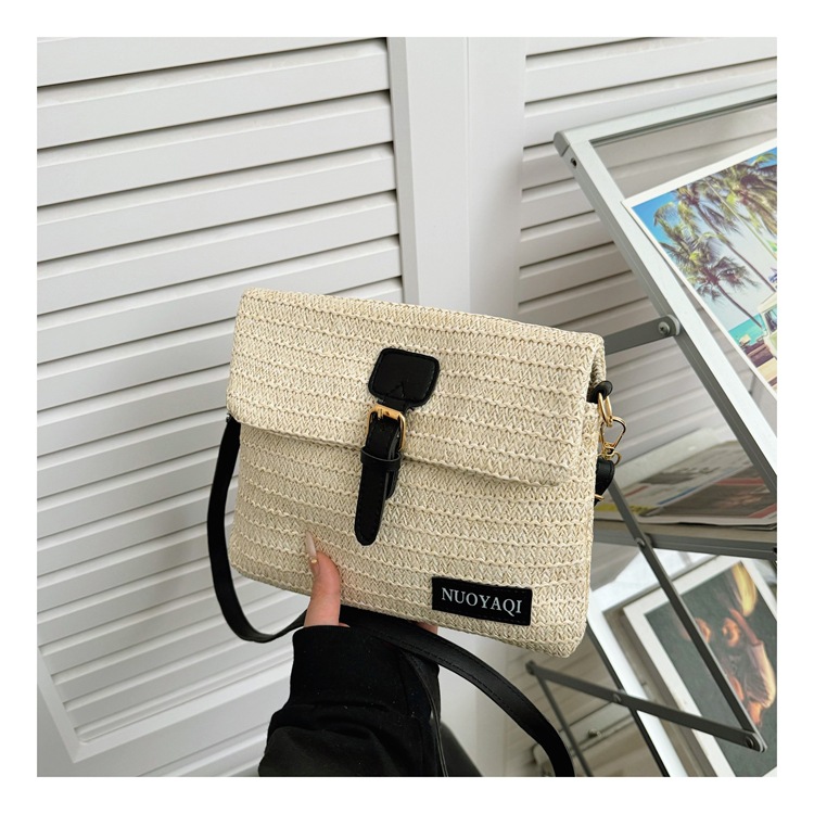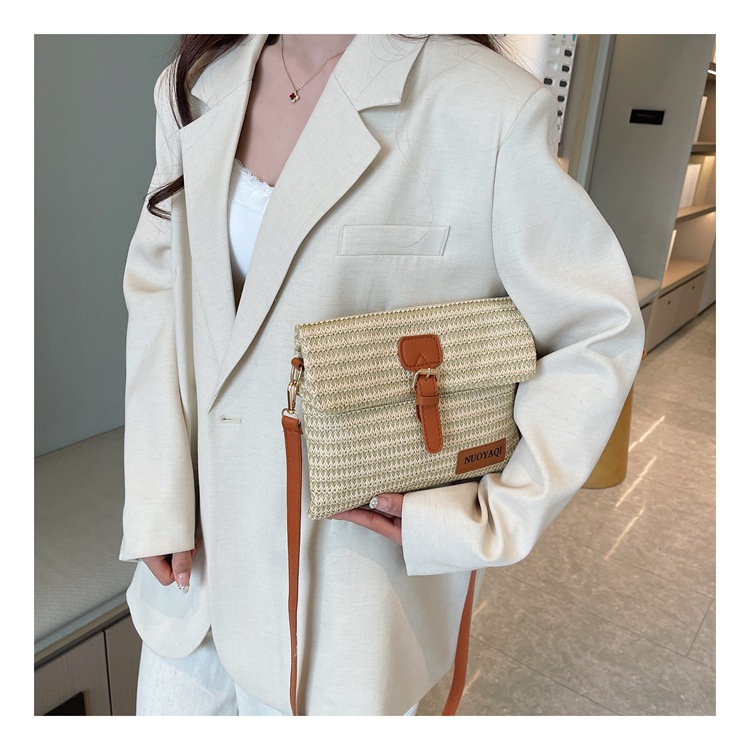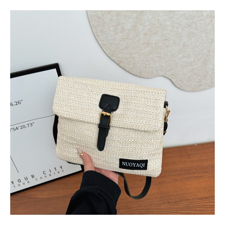 跨境爆款2026新款仿古小邮差包旅游斜挎草编包编织女包夏季沙滩包