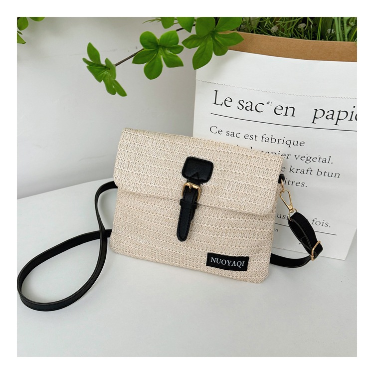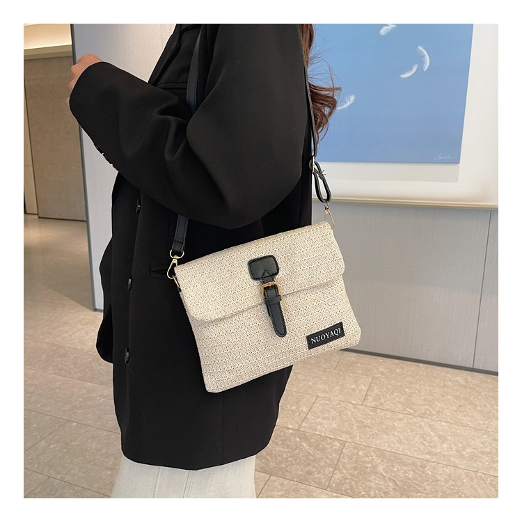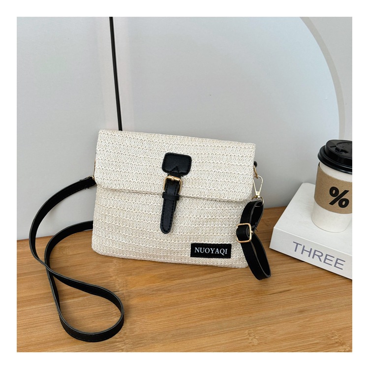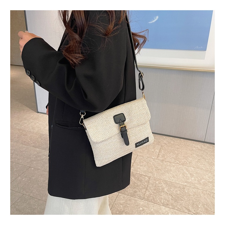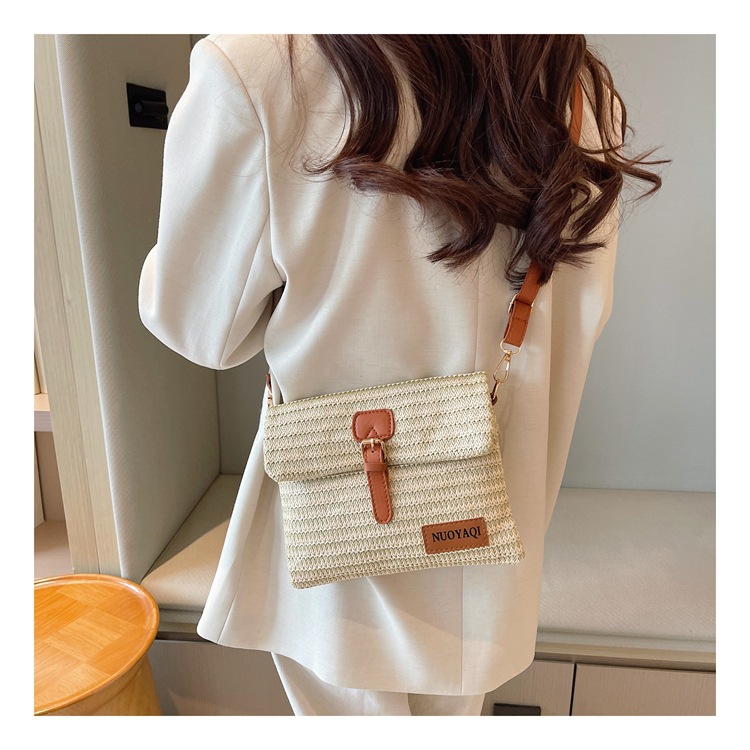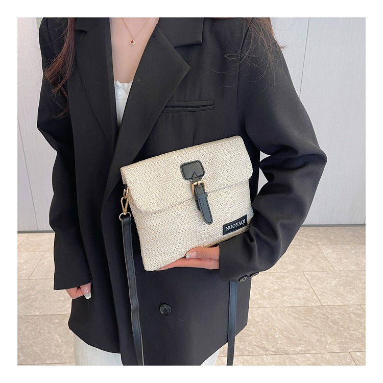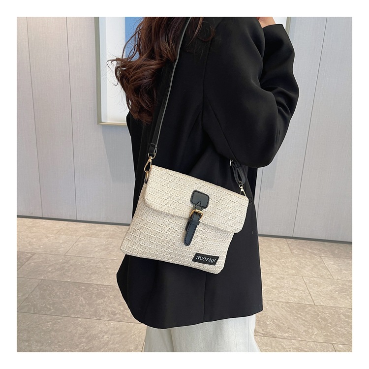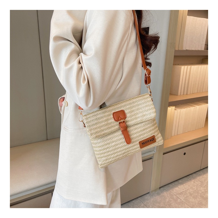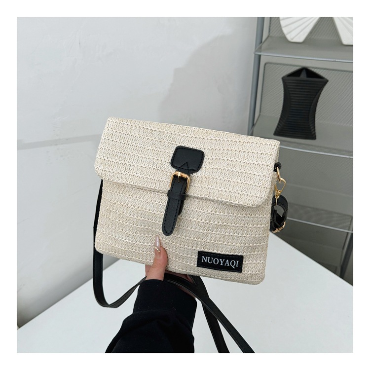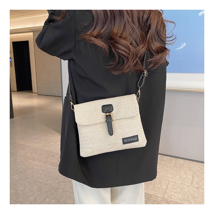 跨境爆款2026新款仿古小邮差包旅游斜挎草编包编织女包夏季沙滩包